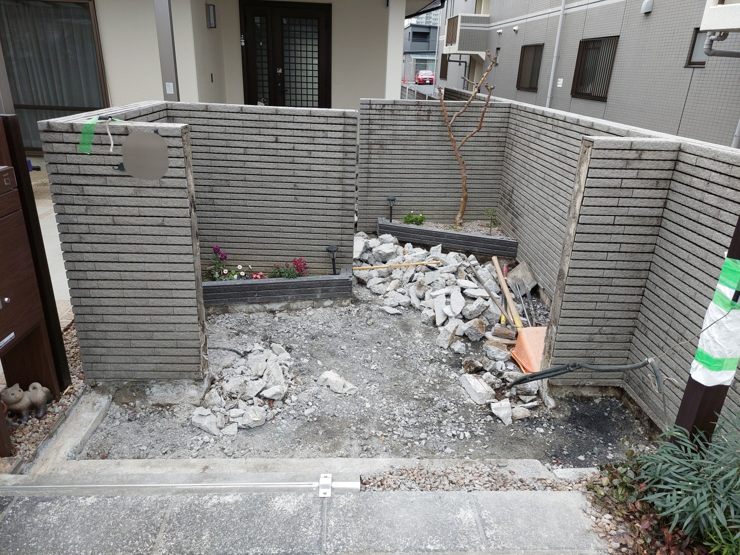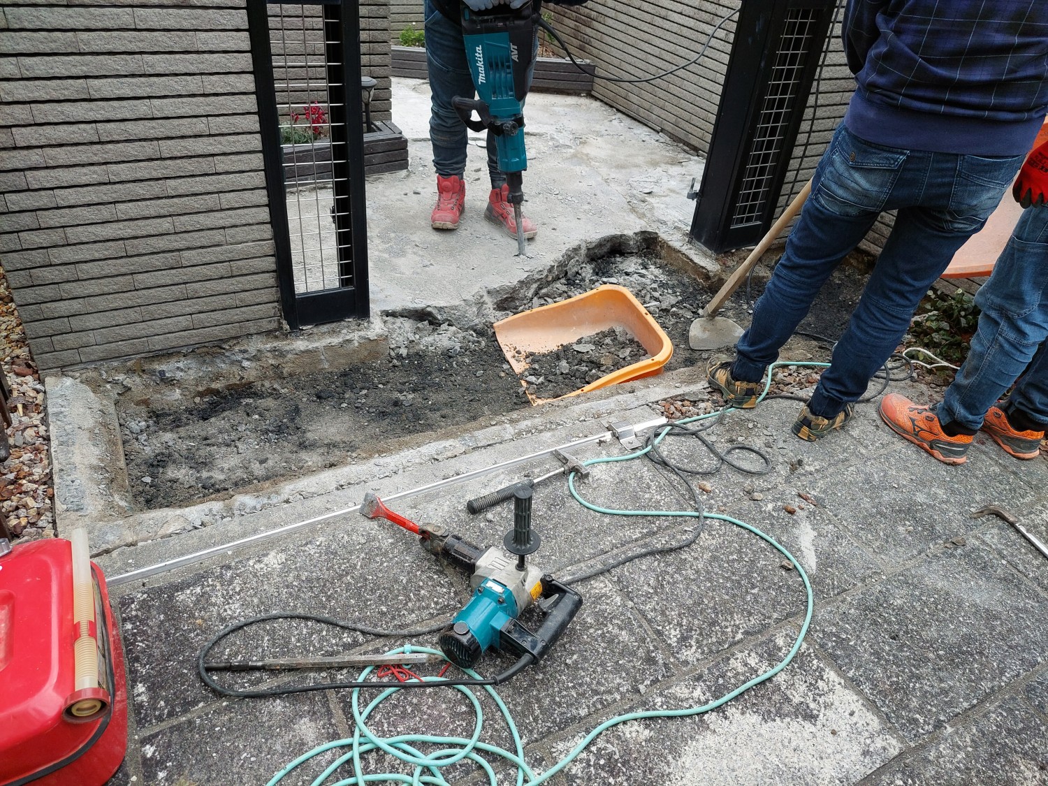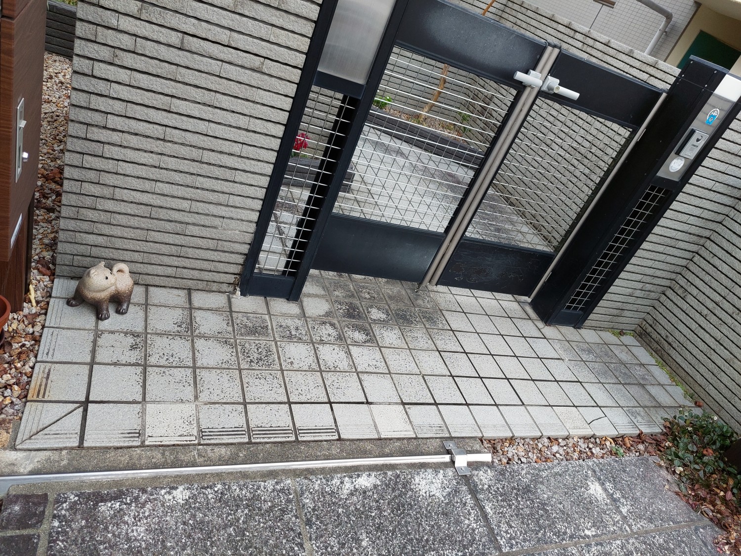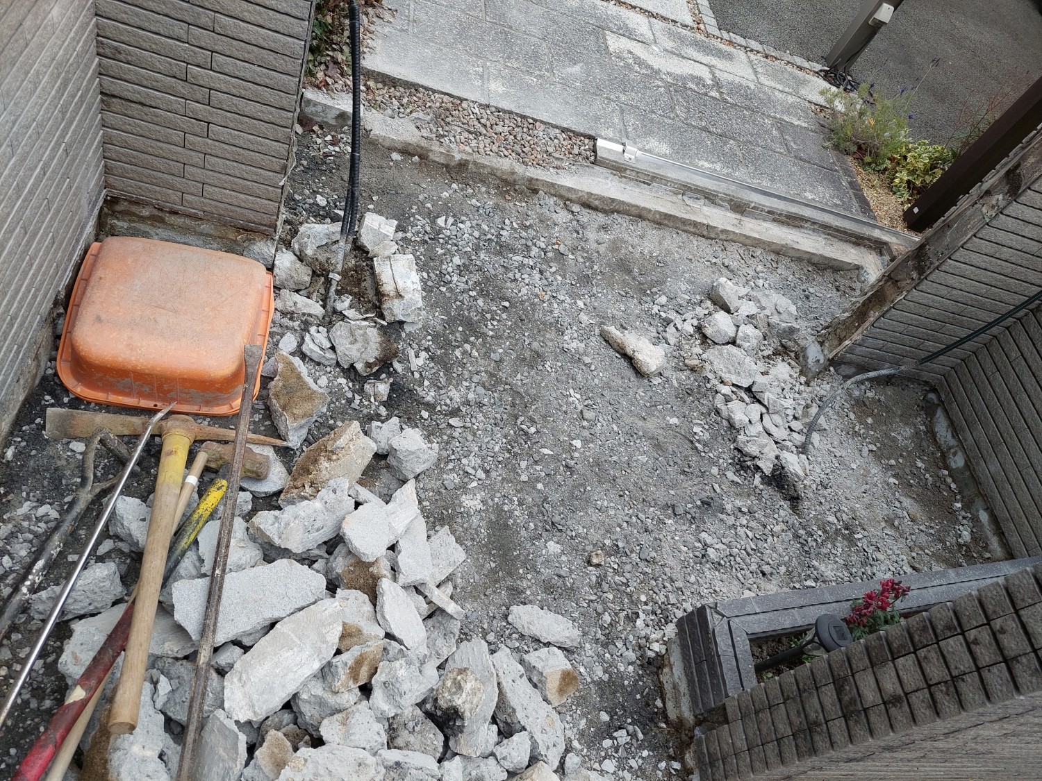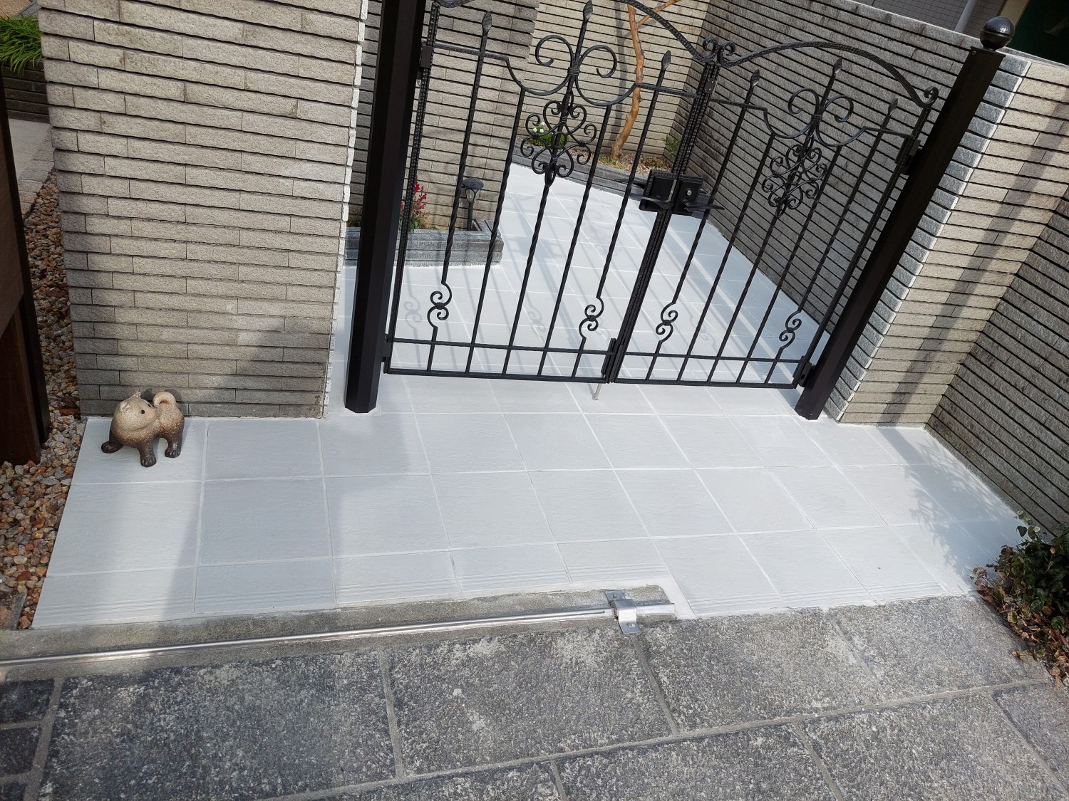 タイルアプローチのタイルを、下地のコンクリートからやり替えました。