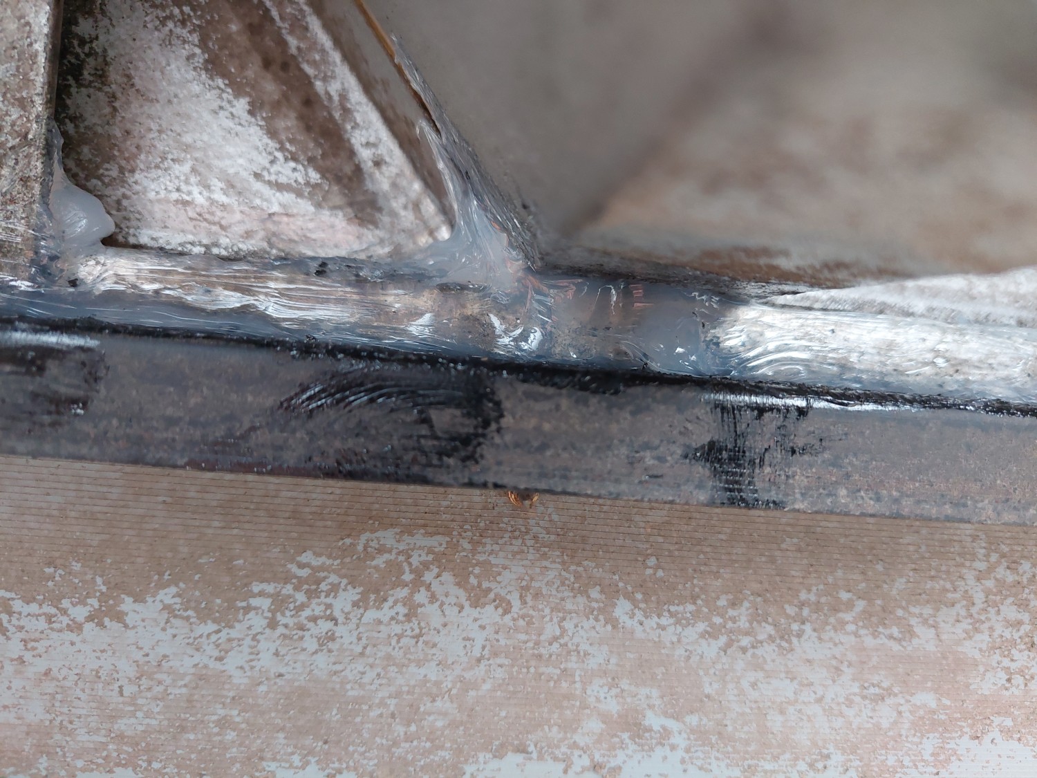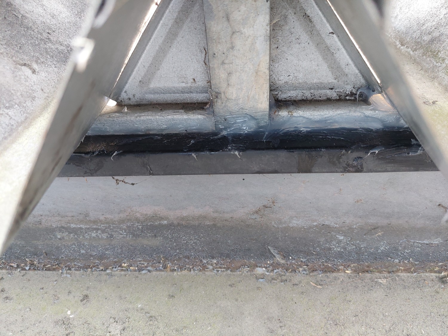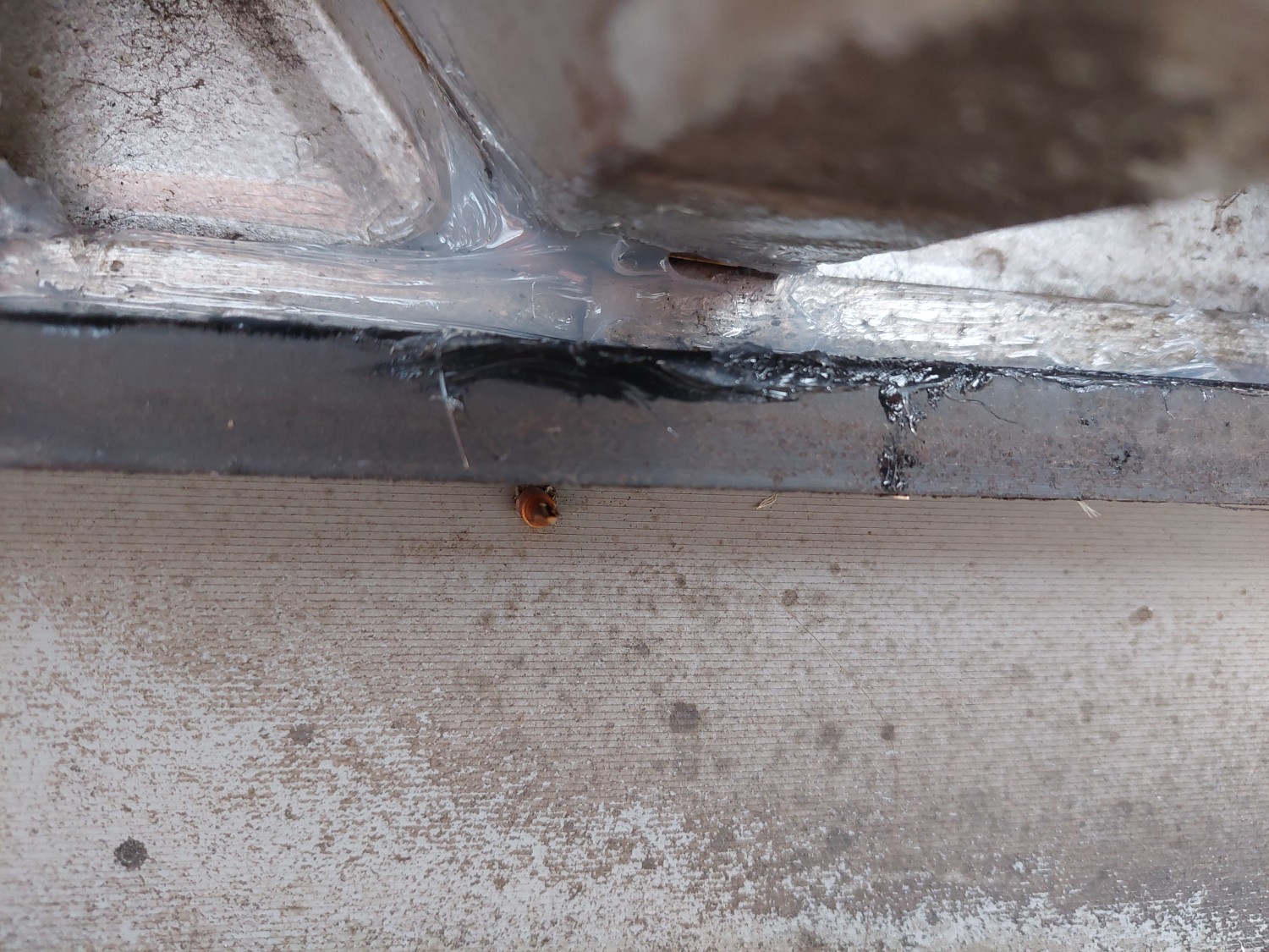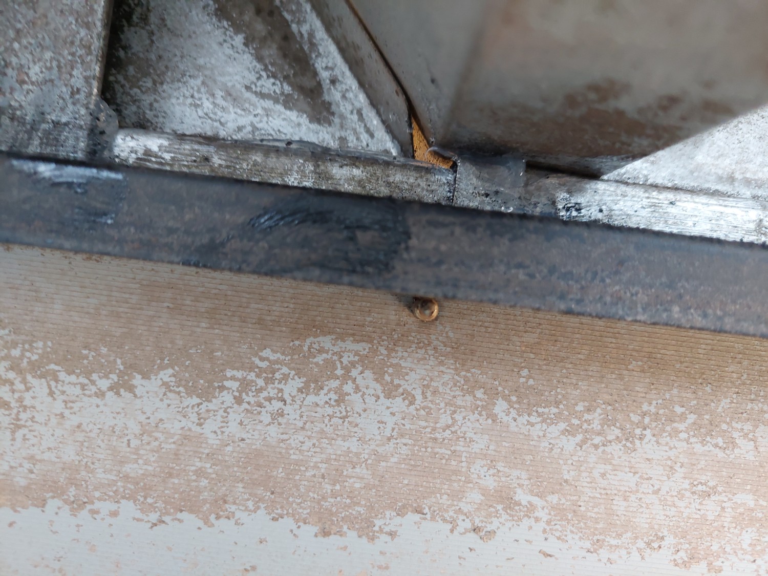 以前コーキング処置を施し、そこが止まったので水がつたってきまして、今度は板金重ね部の縦ラインから水漏れとなりましたので、そこもコーキング補修しました。