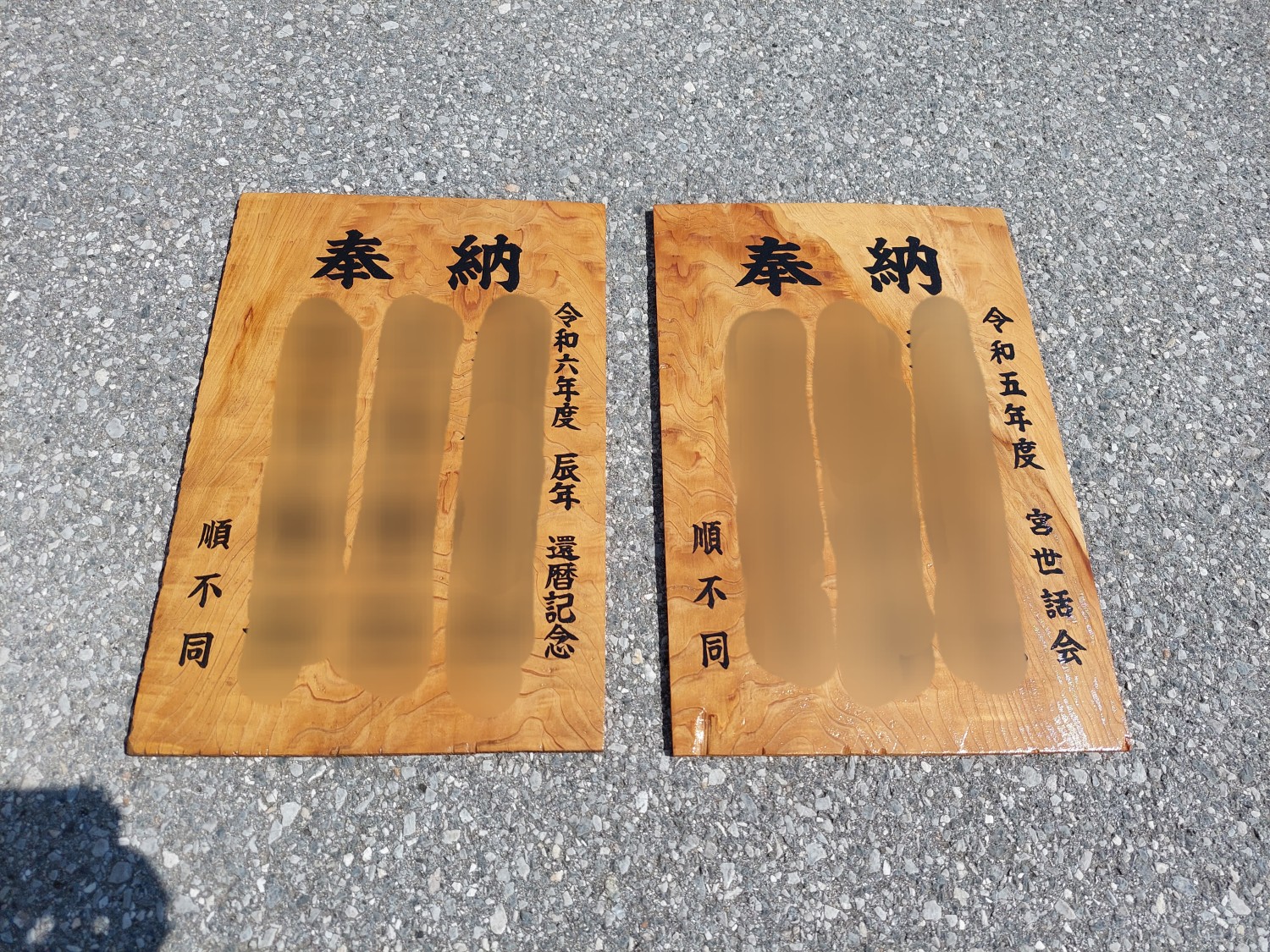 奉納木札を2枚作製しまして、取り付けをおこないました。