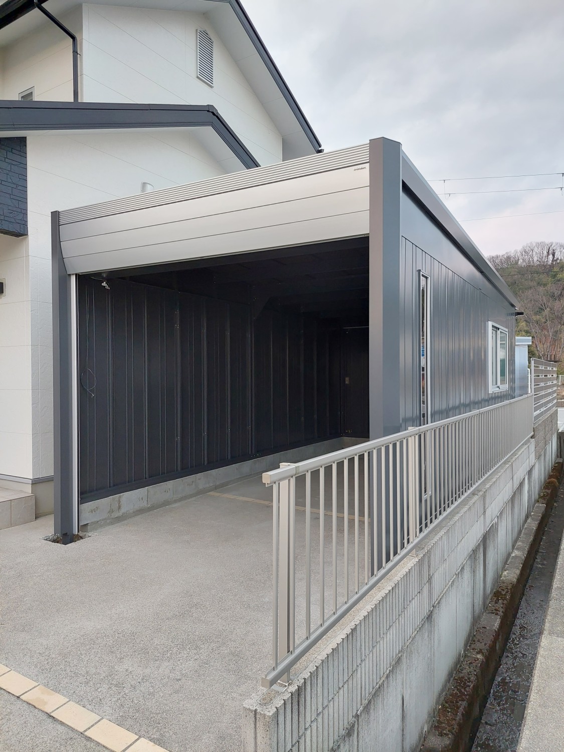 奥のあった既存の物置を撤去しまして、そこにガレージを設置しました。