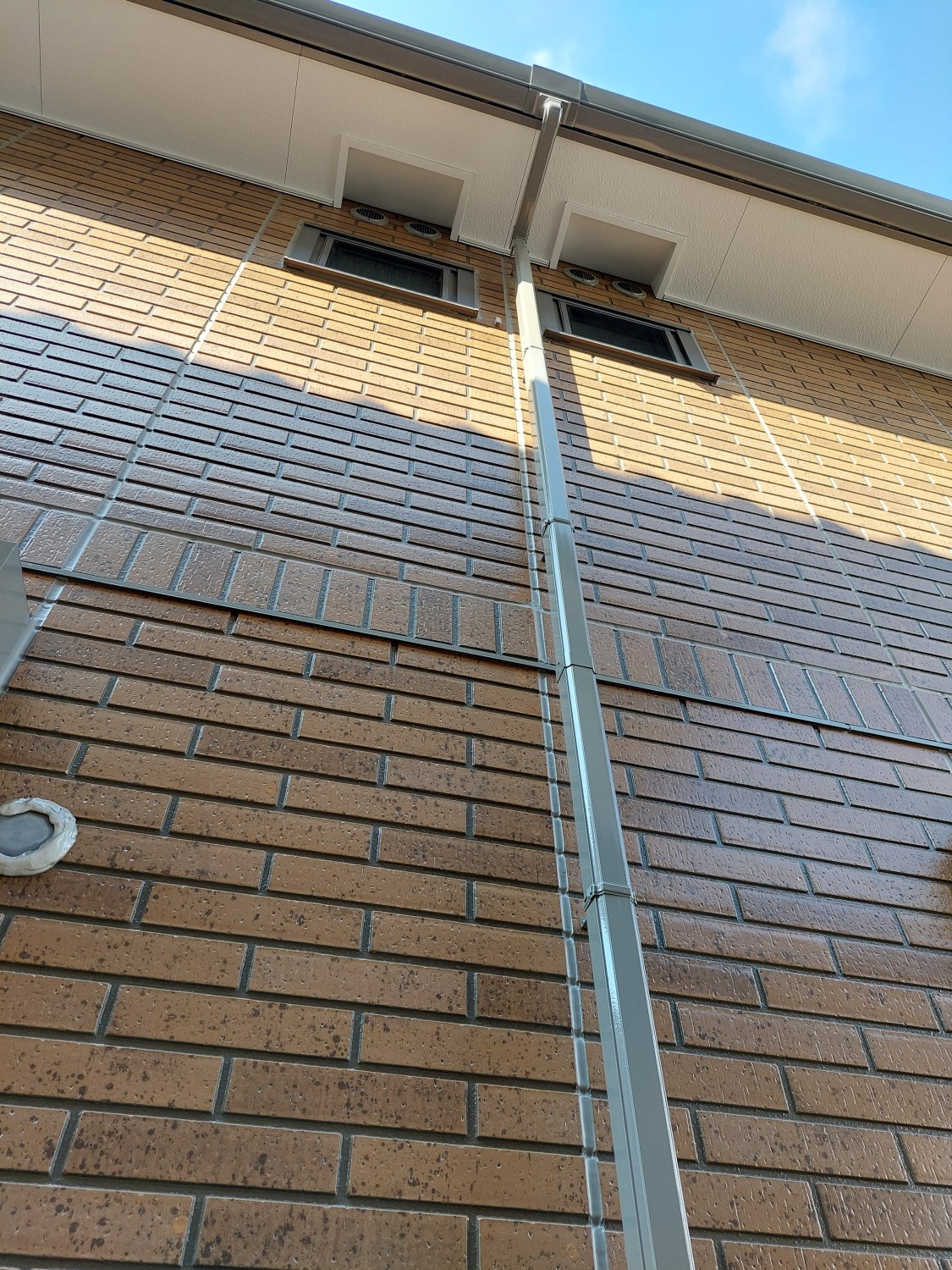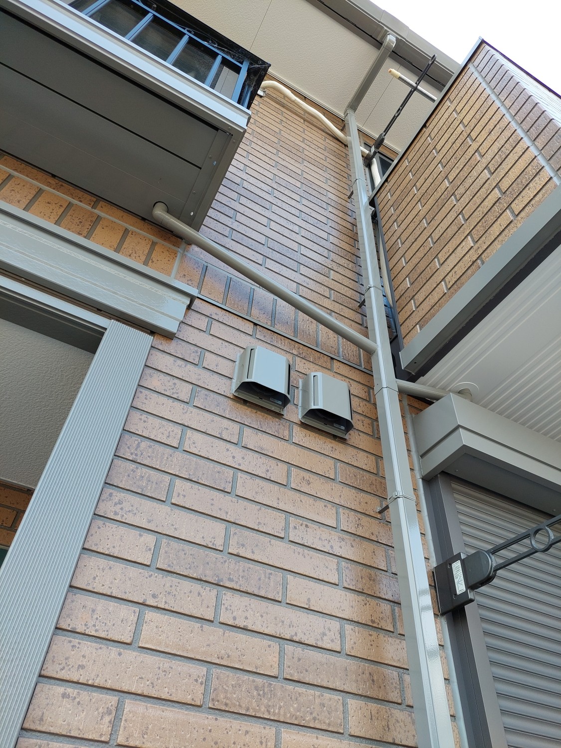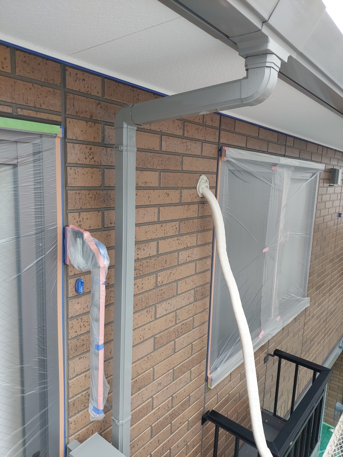 竪樋の塗装をおこないました。