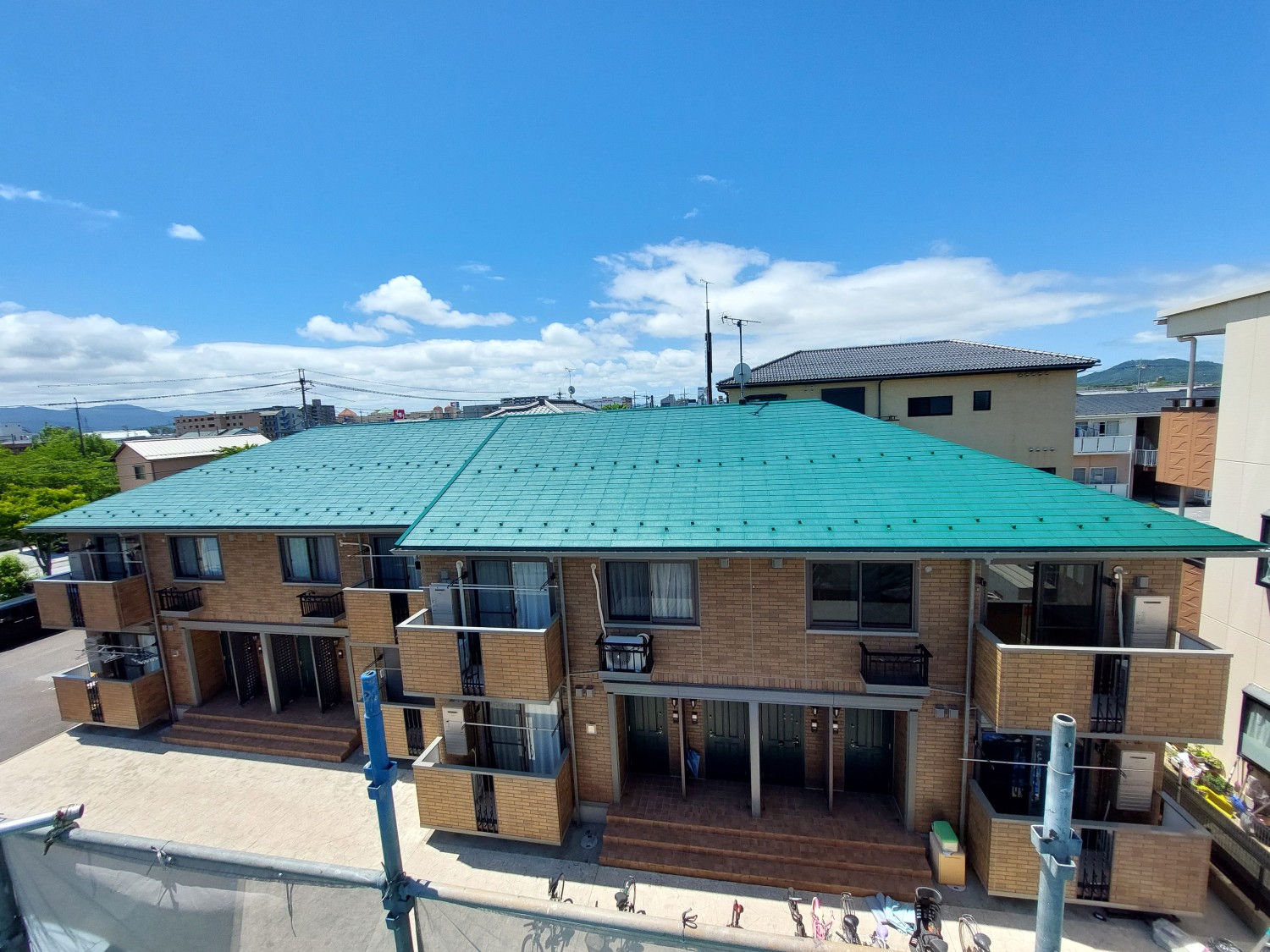 アパートのA棟側の、屋根塗装と外壁塗装と基礎塗装をおこないました。