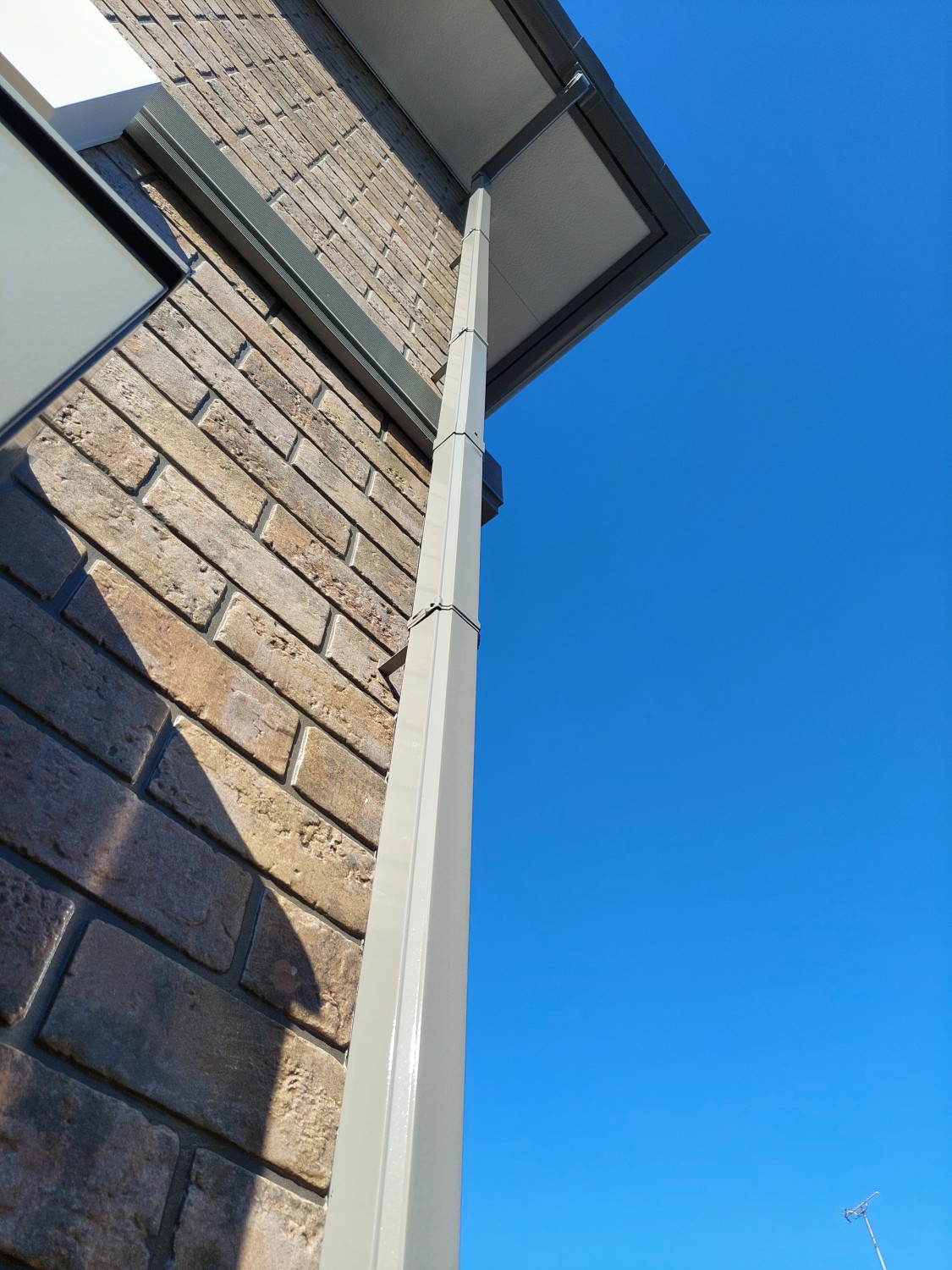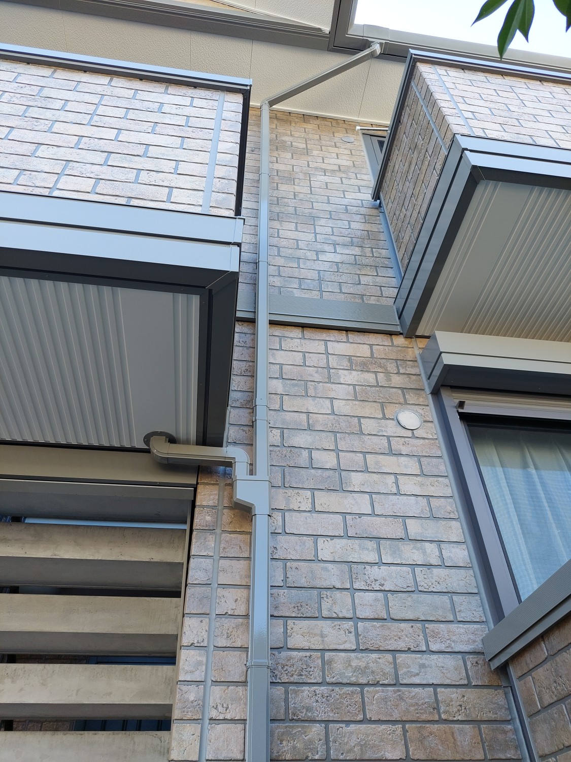 竪樋の塗装をおこないました。
