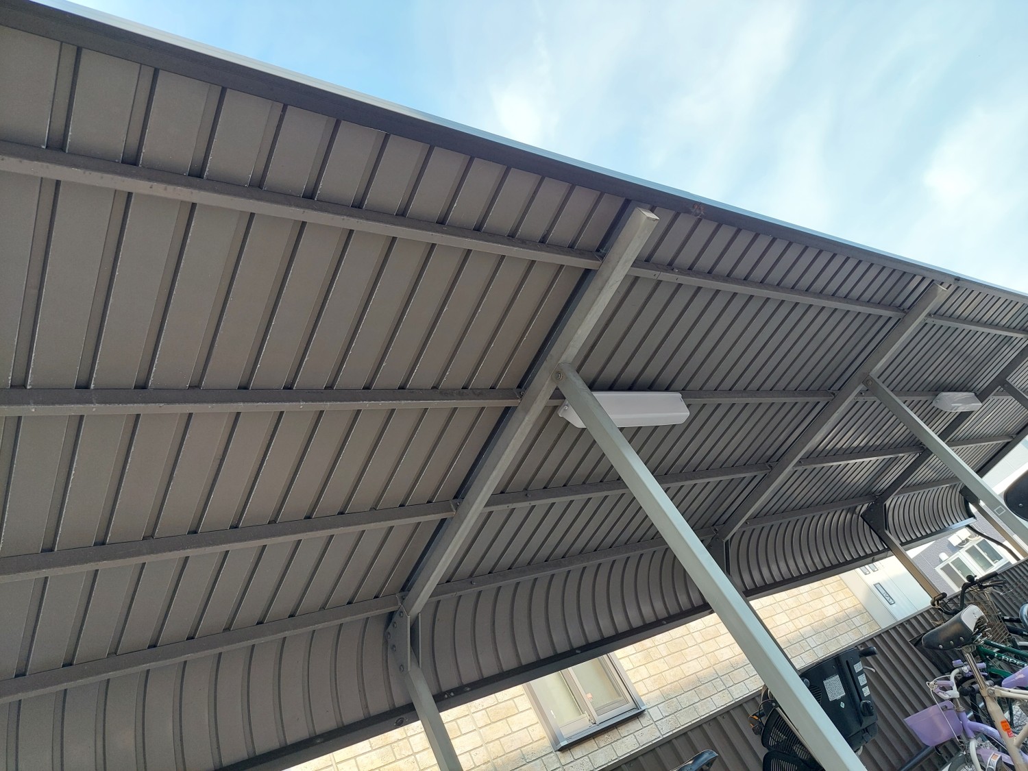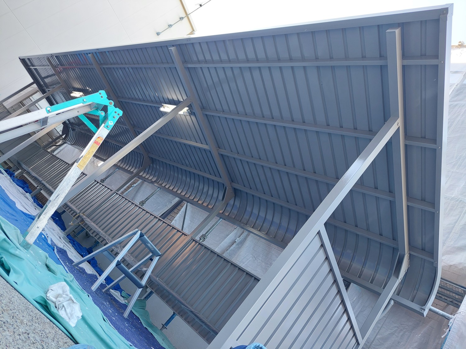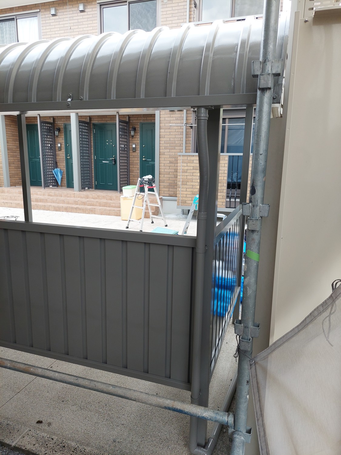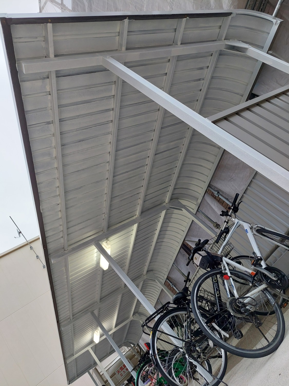 全面サビ止めの下塗りをおこない、上塗りはグレー色にて2回塗りをおこないました。