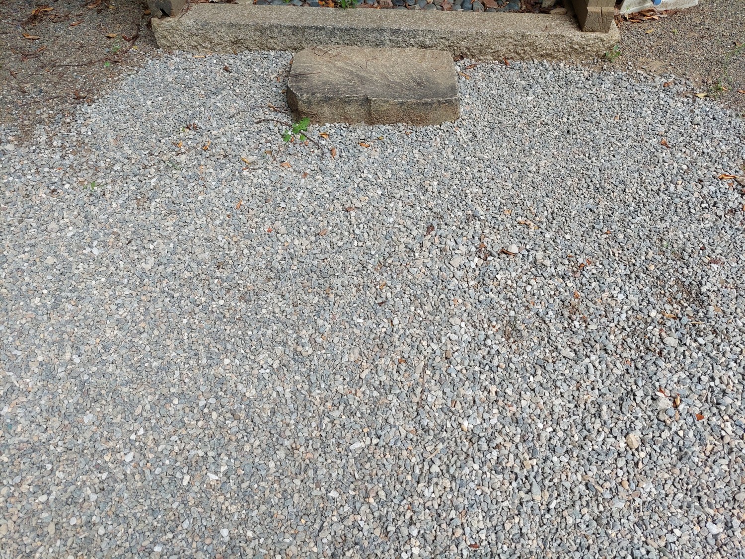 神社の境内の砂利がなくなっている箇所や、地が下がっていて補修した箇所全体に、天然石のビリ砂利を敷きました。