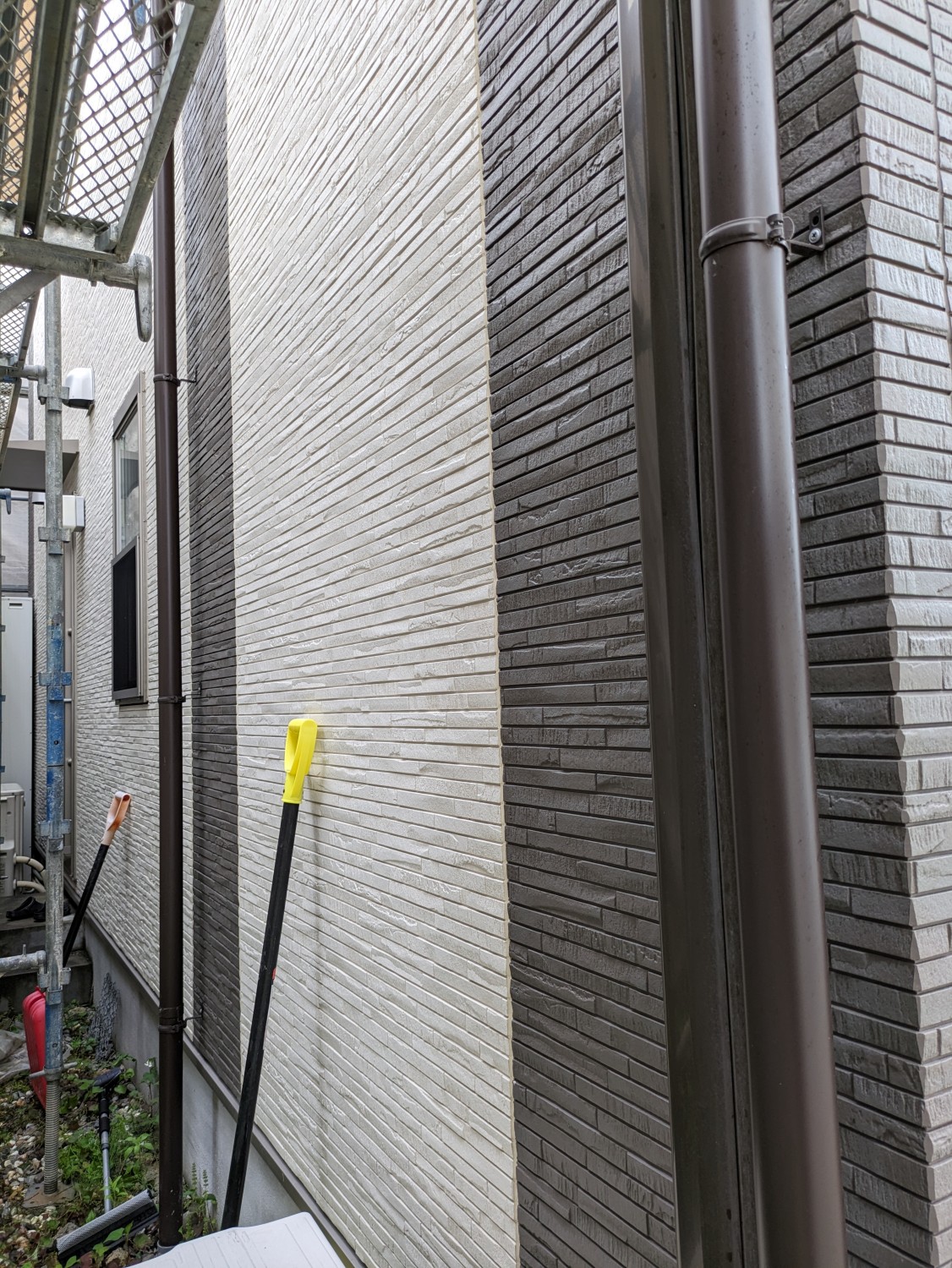 濃い目のグレー色にて外壁の塗装をおこないました。