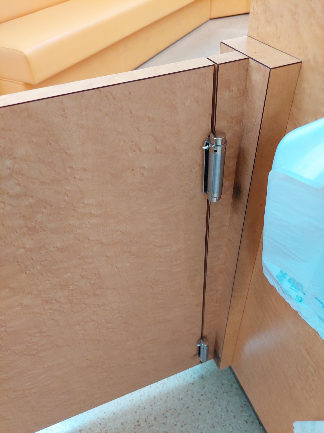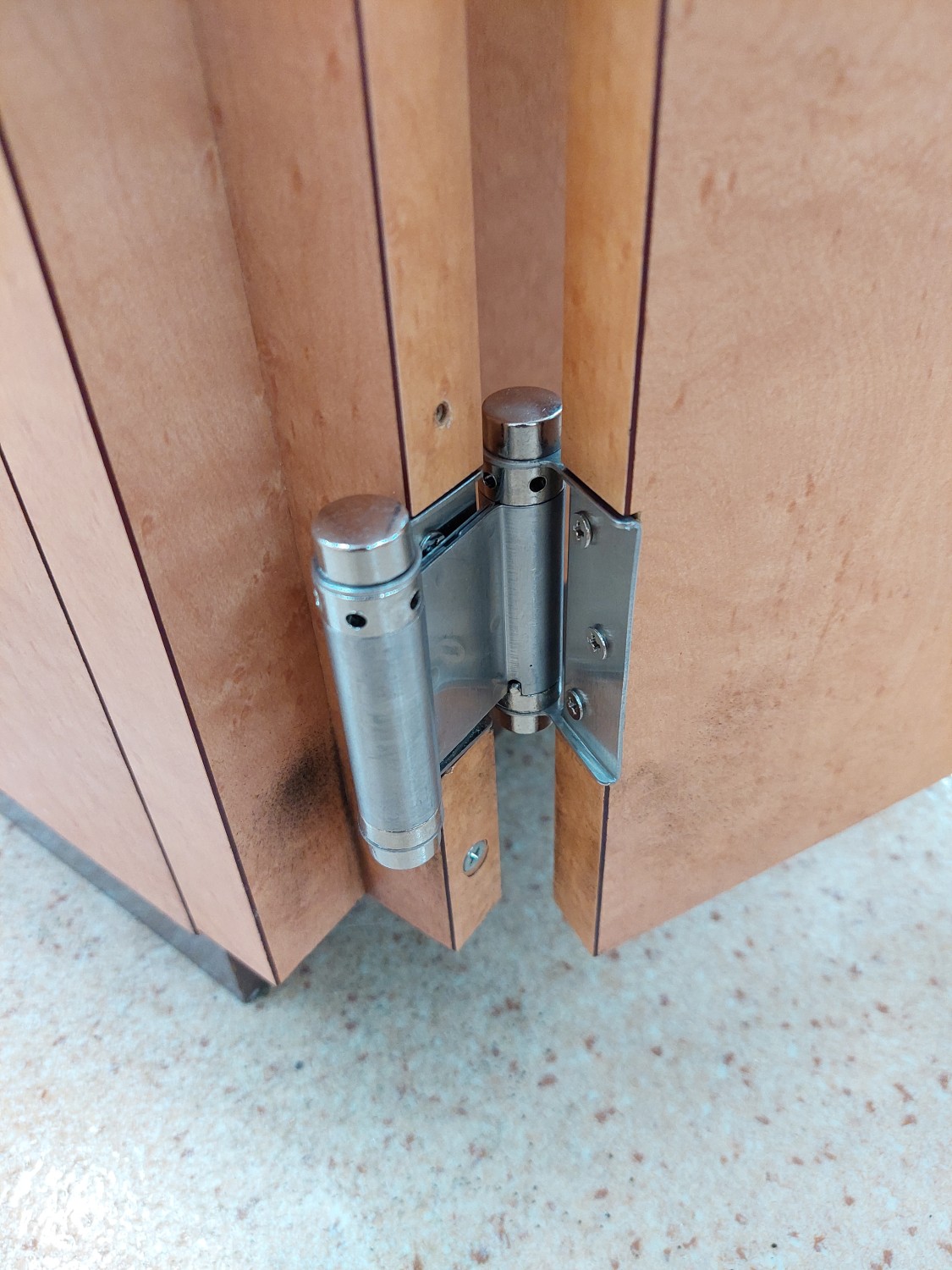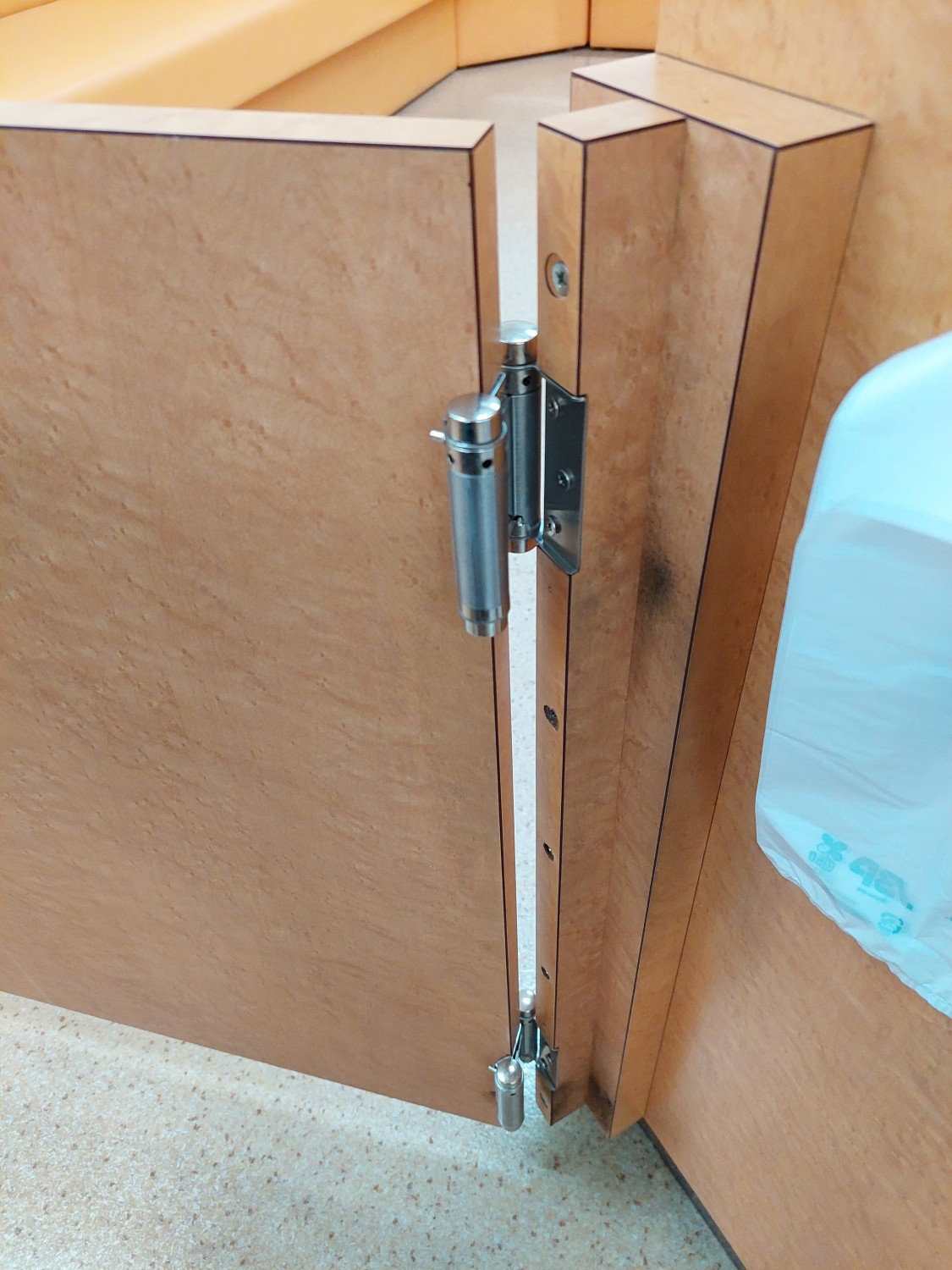 また、丁番のバネ調整もおこない、扉を押し開ける時の開閉のかたさ(重たさ)も調整してあります。
