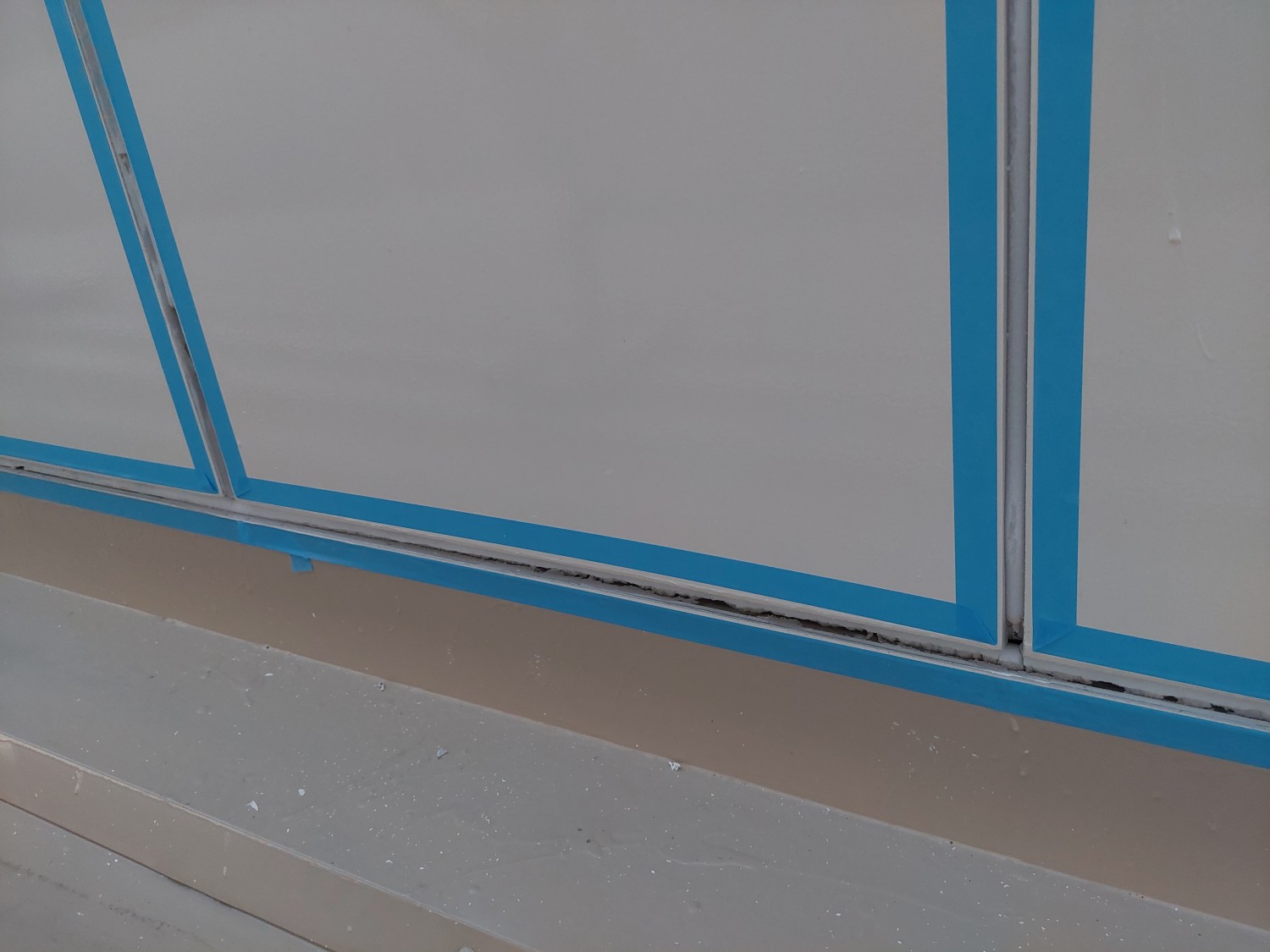 コーキング(アスロック)を撤去しまして、コーキング(シール)にて打ち替えをおこないました。
