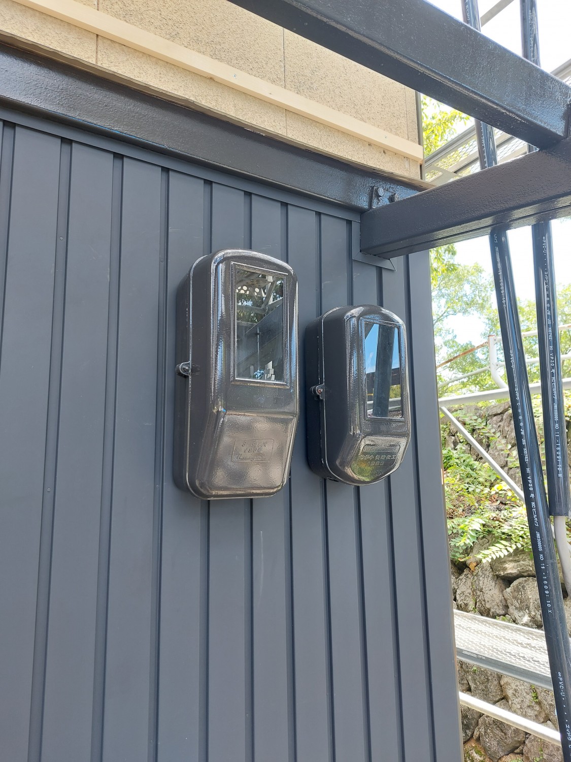 外壁の板金工事(黒色)に合わせて、黒に塗装しました。