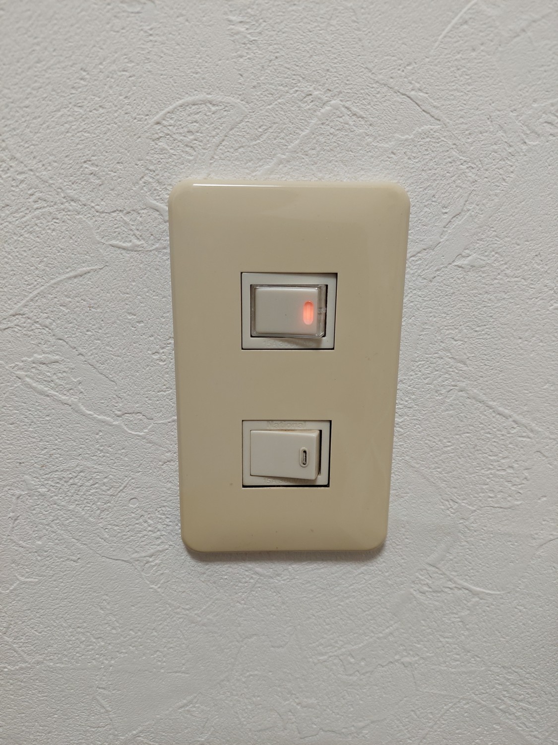 室内の照明スイッチが故障していましたので、故障箇所のスイッチ部(ホタル付きスイッチ)の交換をおこないました。