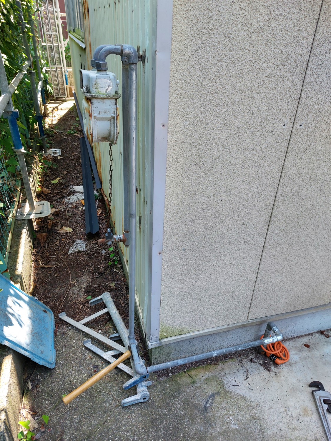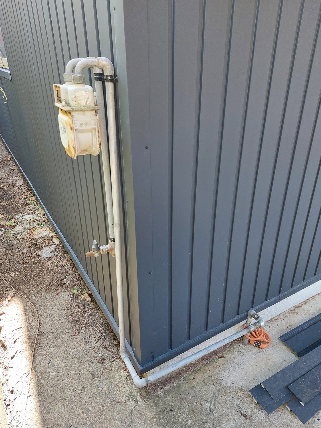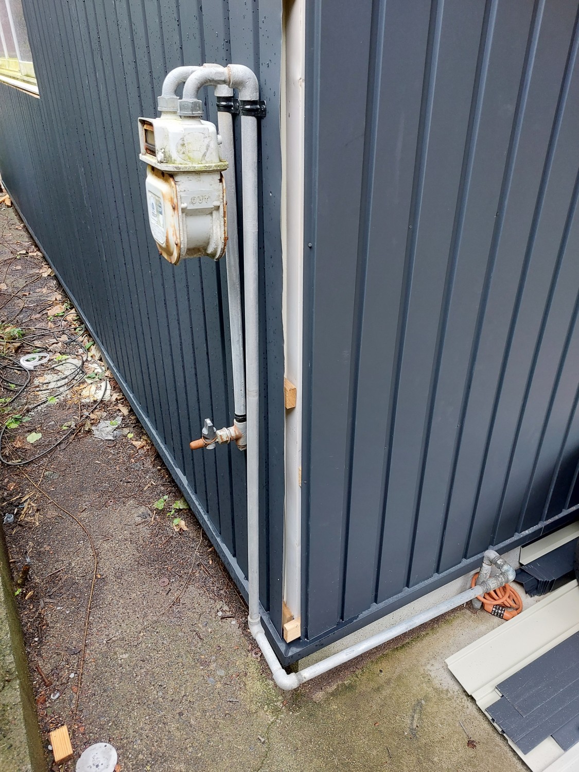 外壁の板金工事で干渉する為、配管を繋ぎ変えました。