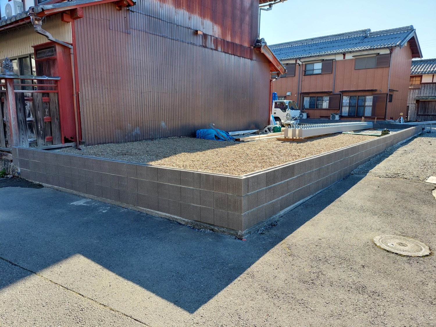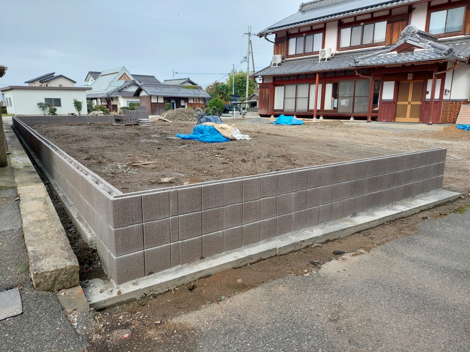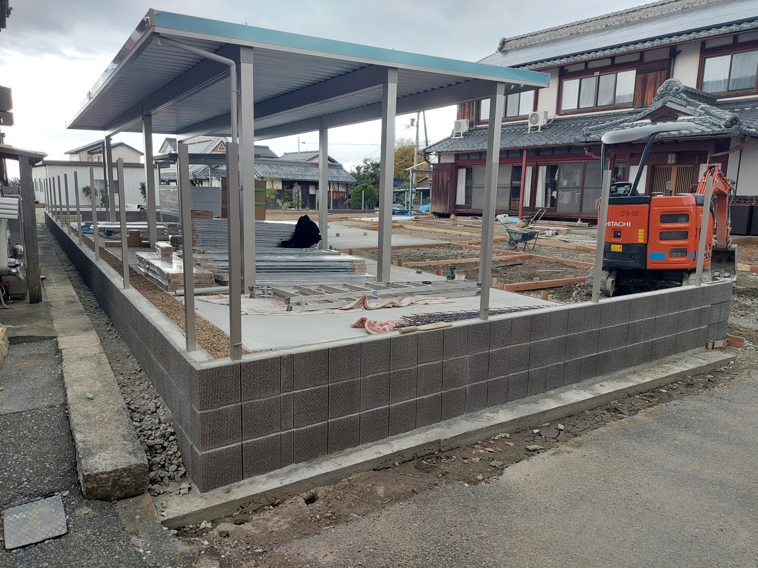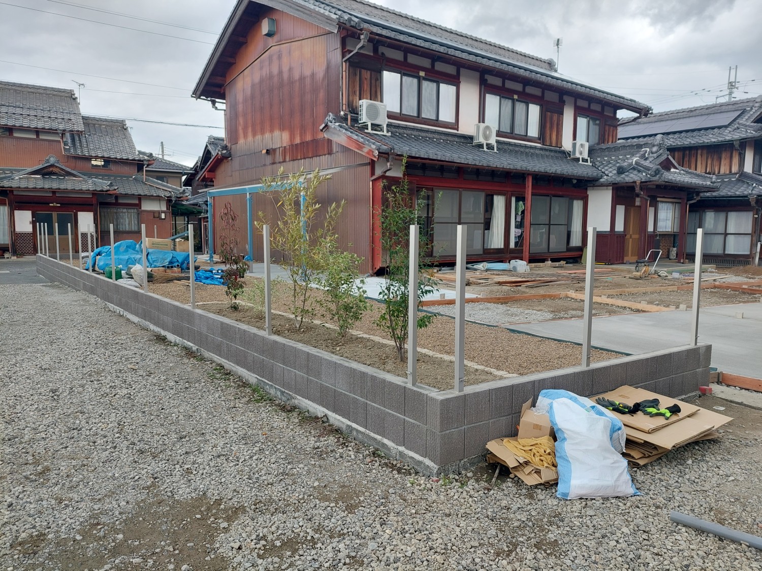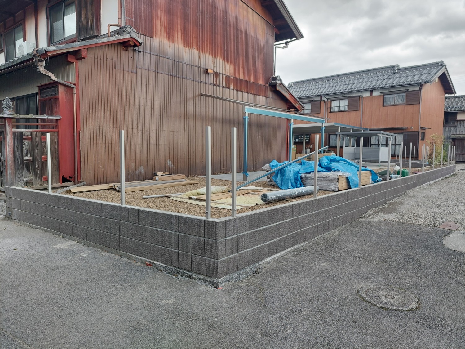 高さは1200のアルミフェンスで、ブロックと合わせると通りからは高さ1800程となります。