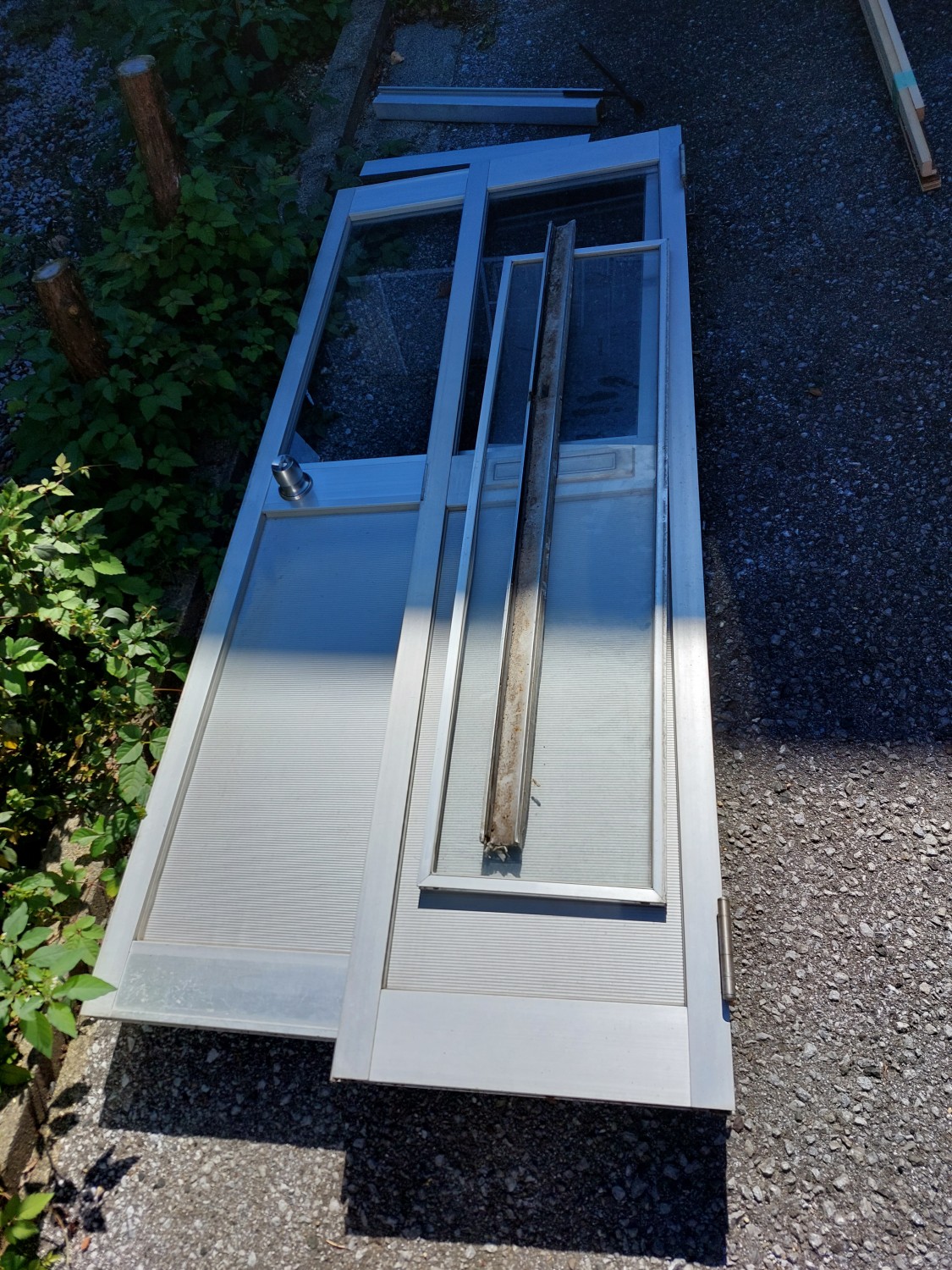 既存ドアを撤去し、既存サッシに新規のドアを施工しました。