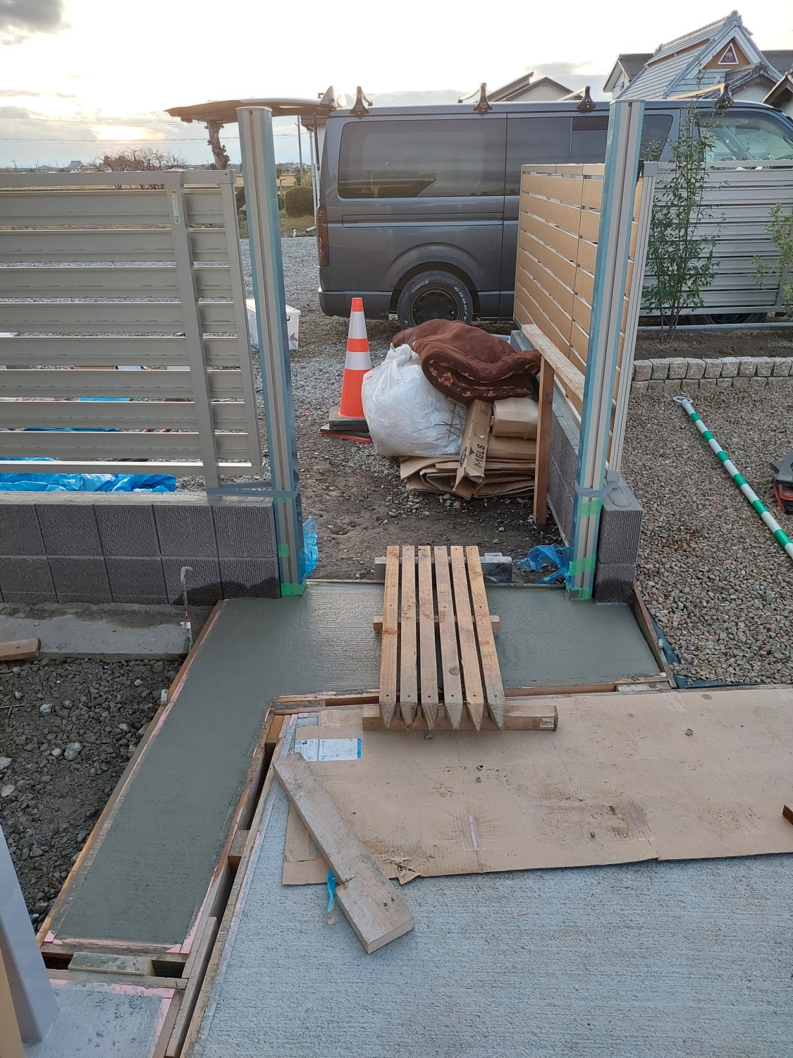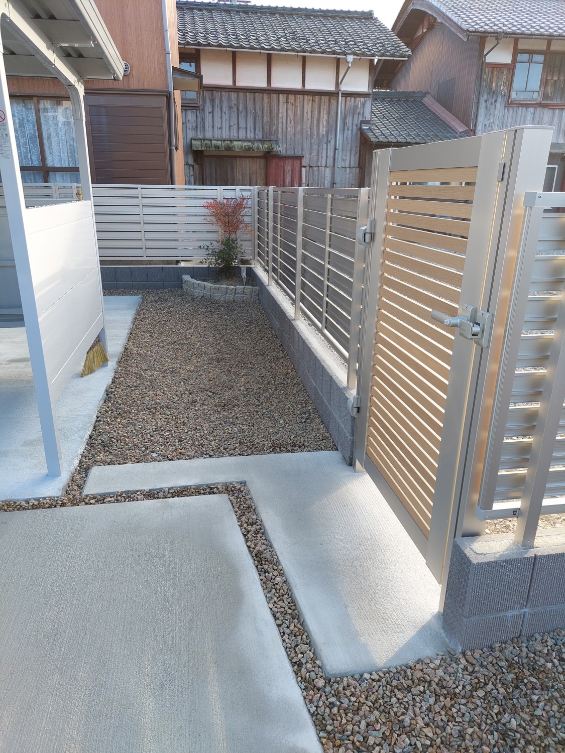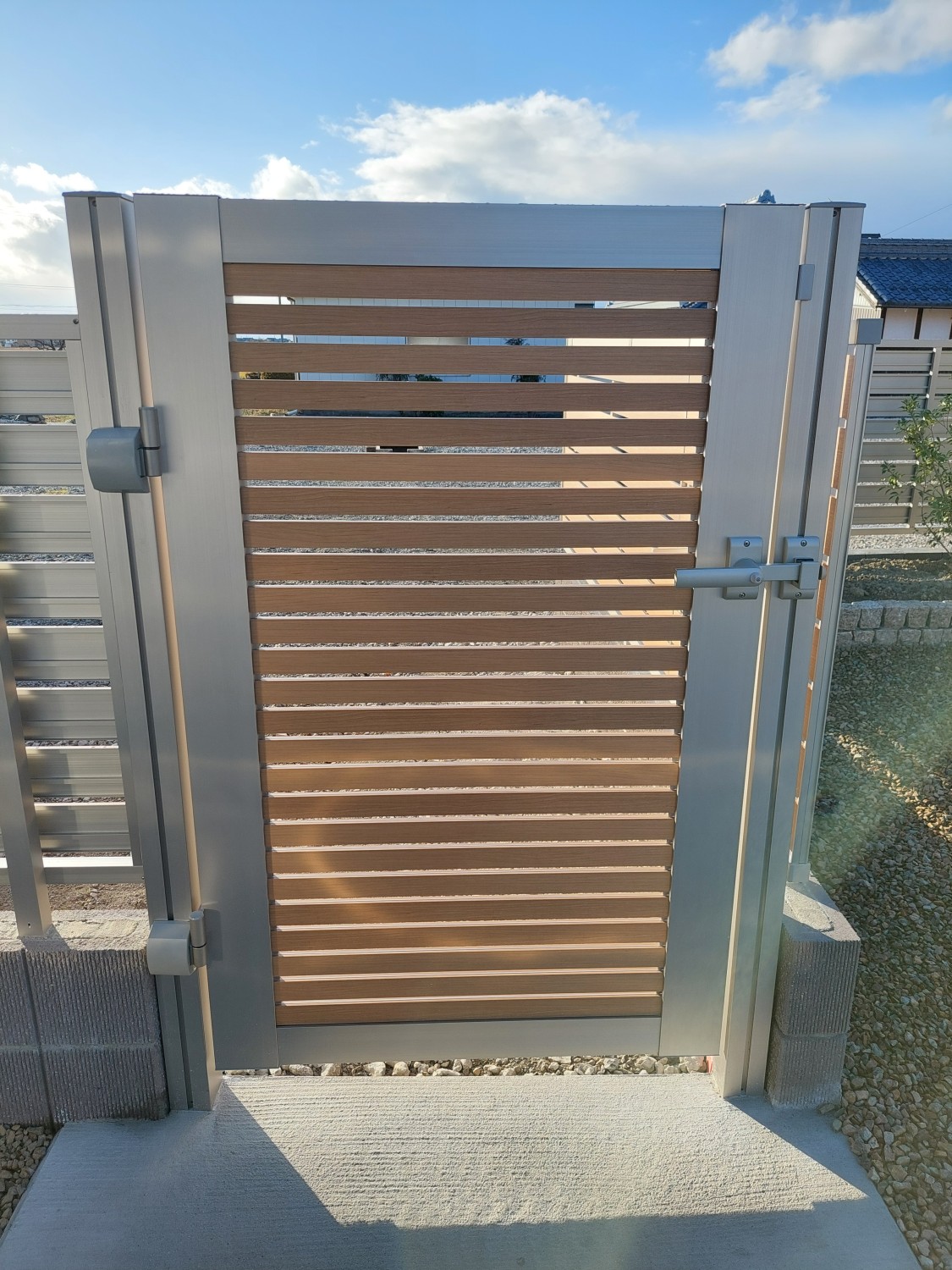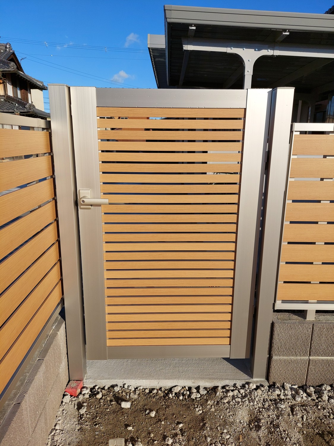 隣接するフェンスと、同種類のアルミ製の門扉を設置しました。