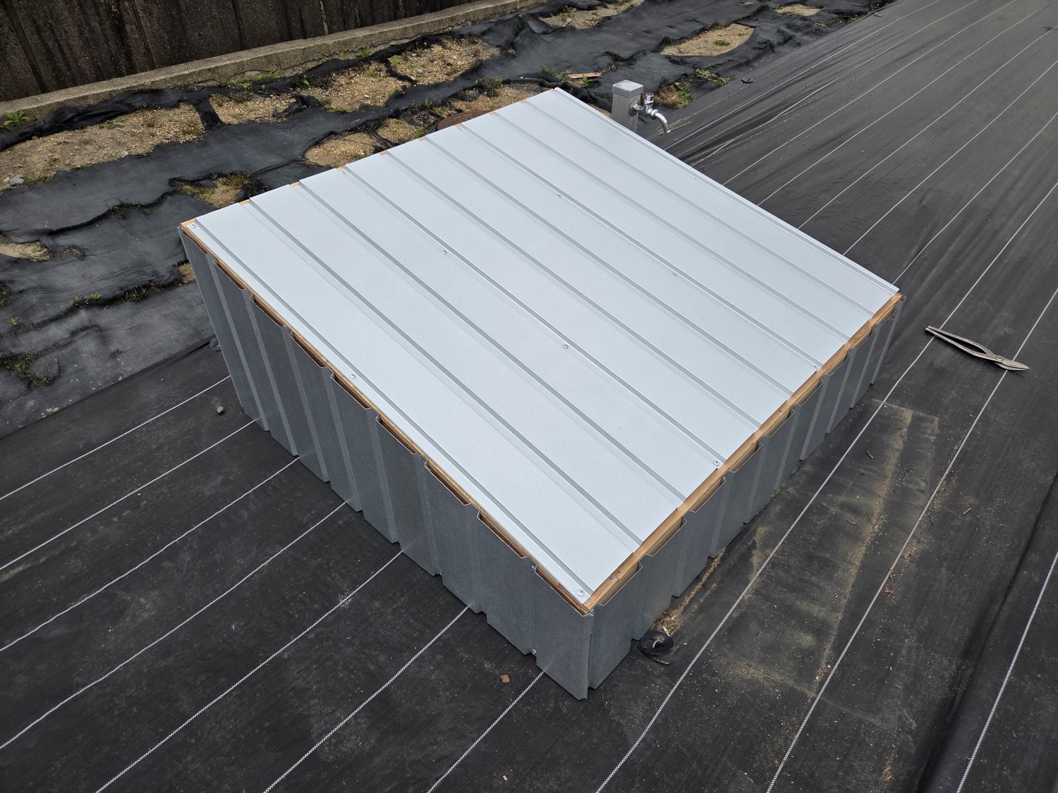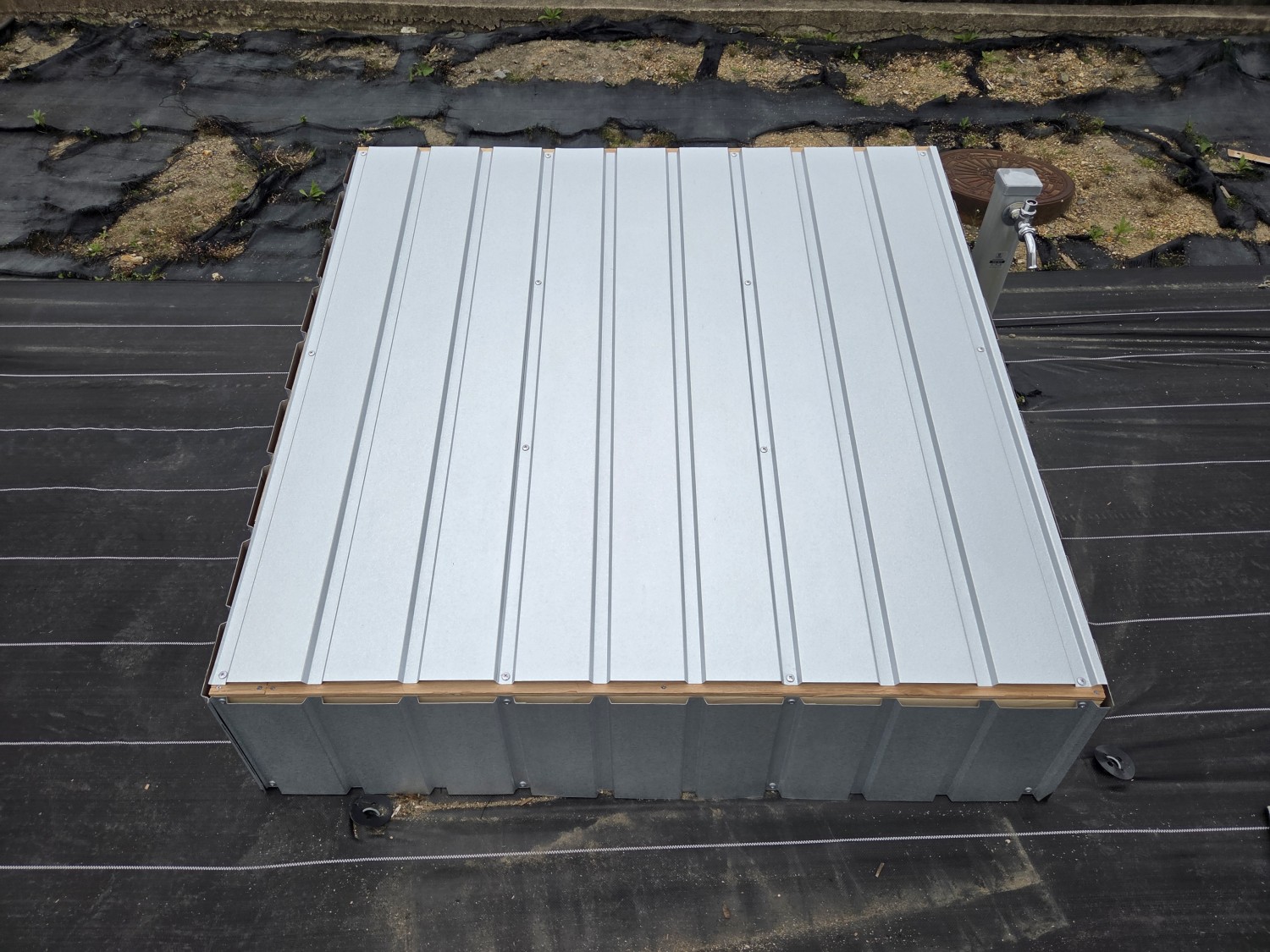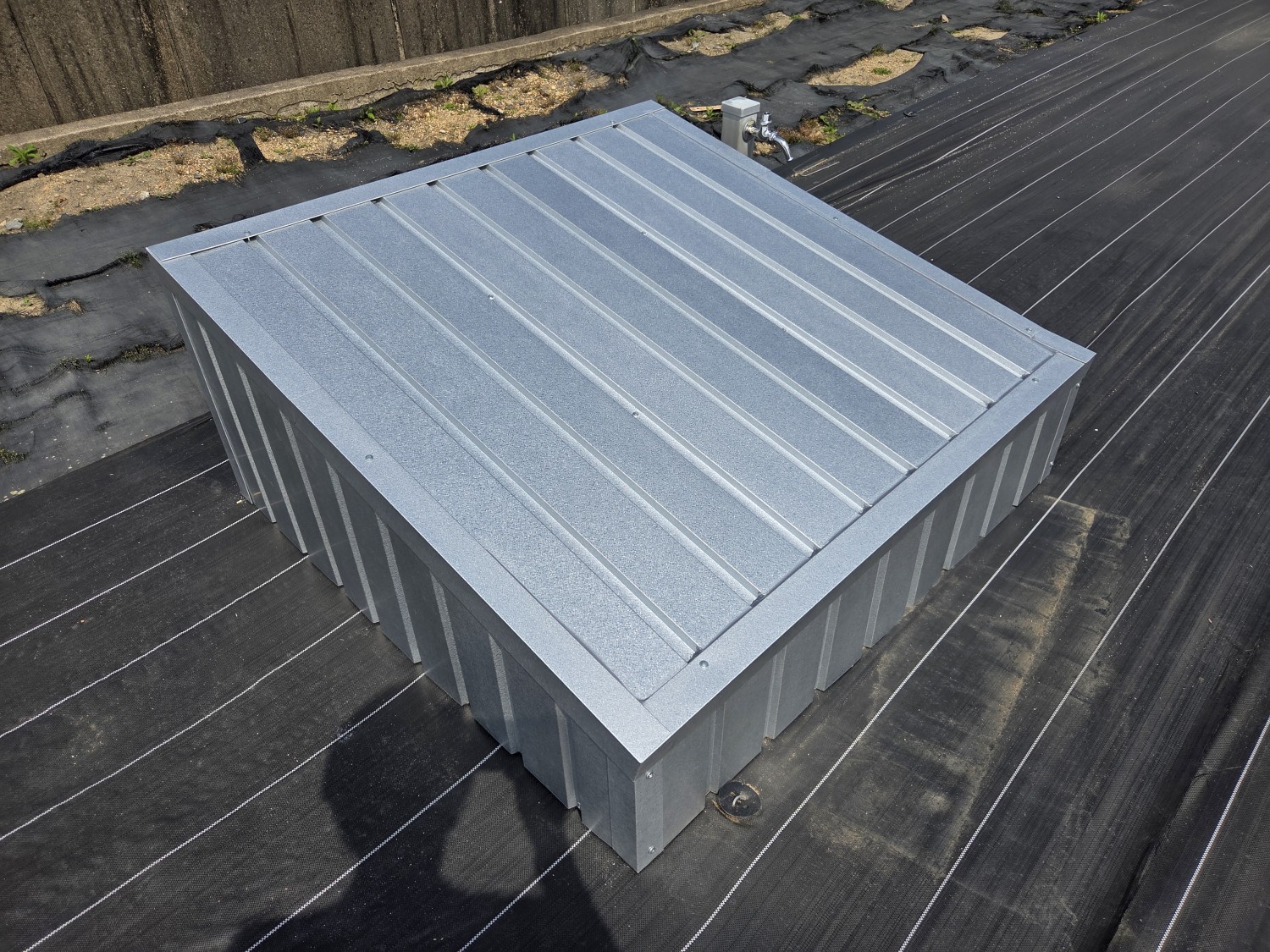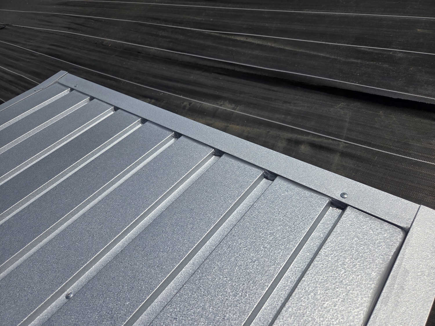 コンパネの厚みも厚くしまして風でズレないように重みを増やし、周りをガルバリウム鋼板にて張り合わせて、雨水による浸水腐食も防ぎました。