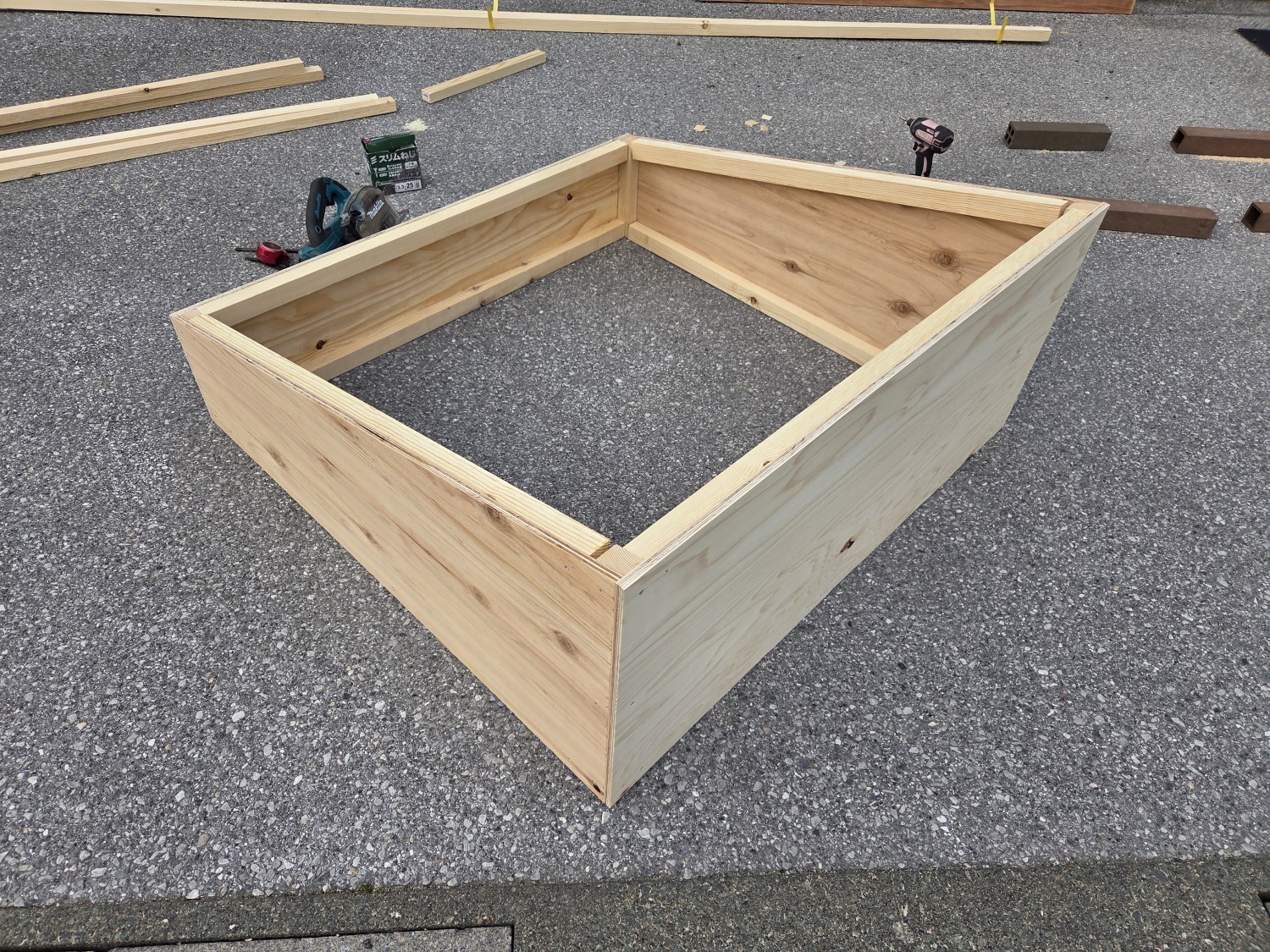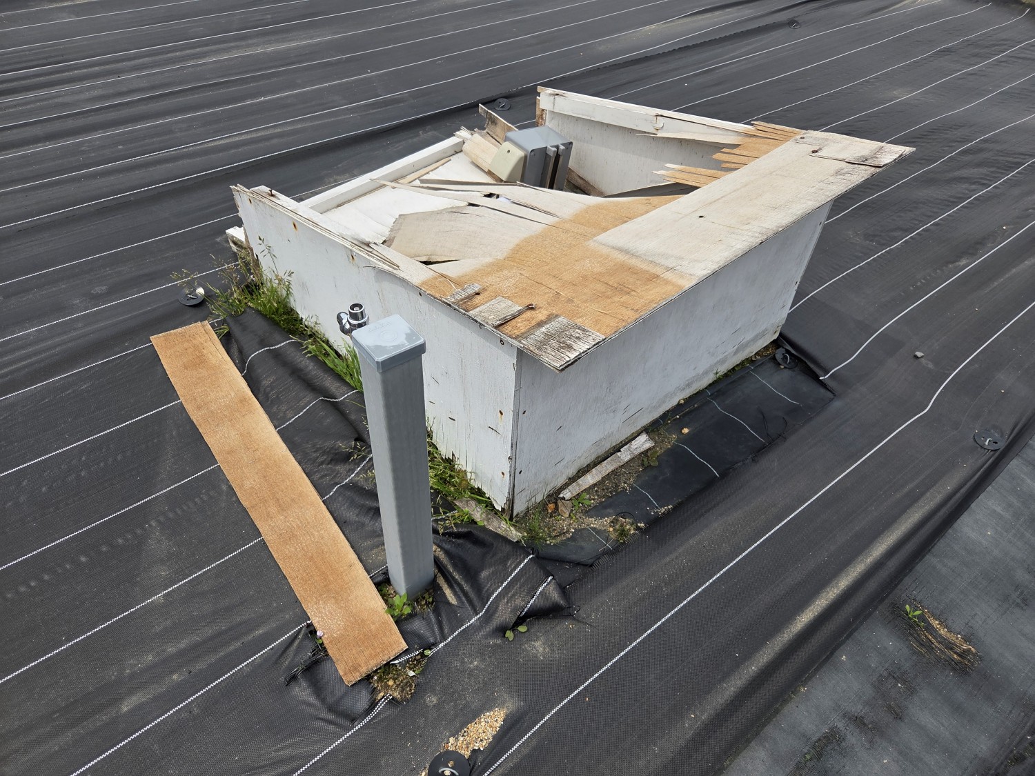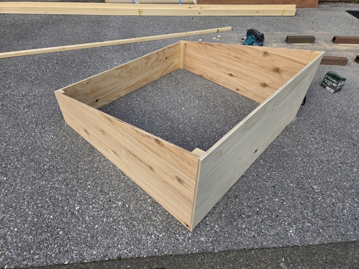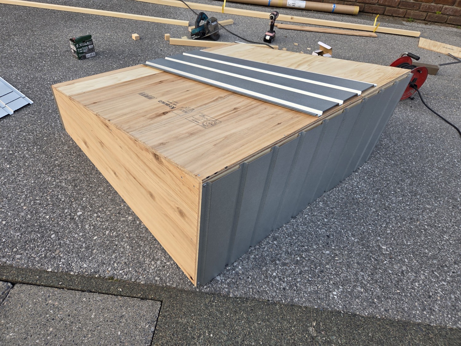 コンパネの厚みも厚くしまして風でズレないように重みを増やし、周りをガルバリウム鋼板にて張り合わせて、雨水による浸水腐食も防ぎました。