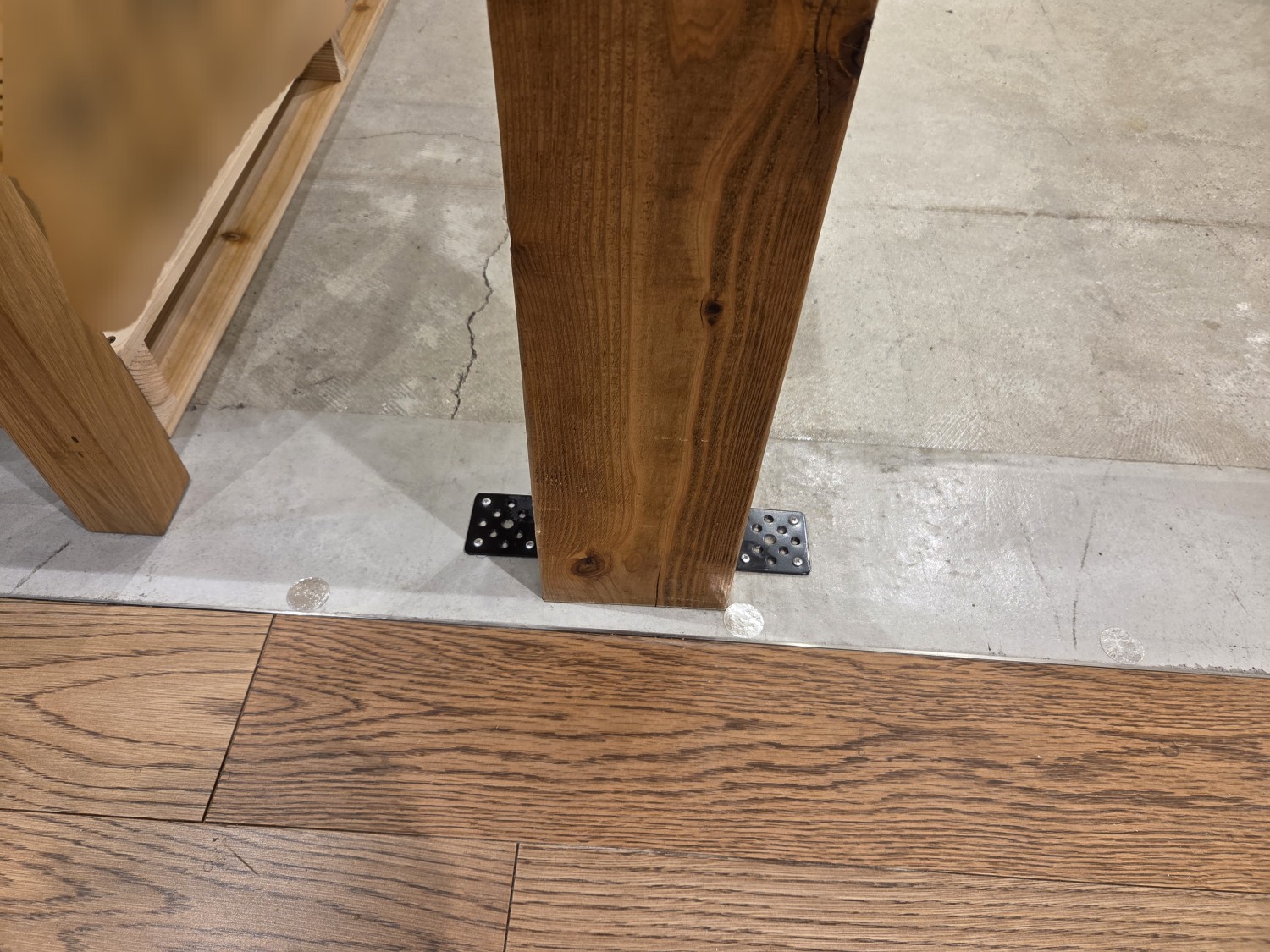 地震発生時に、柱や接地面がズレないための耐震補強の処置を施しました。
