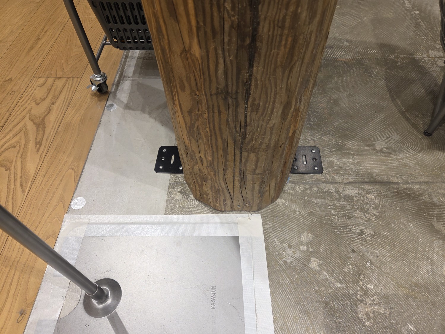 地震発生時に、柱や接地面がズレないための耐震補強の処置を施しました。