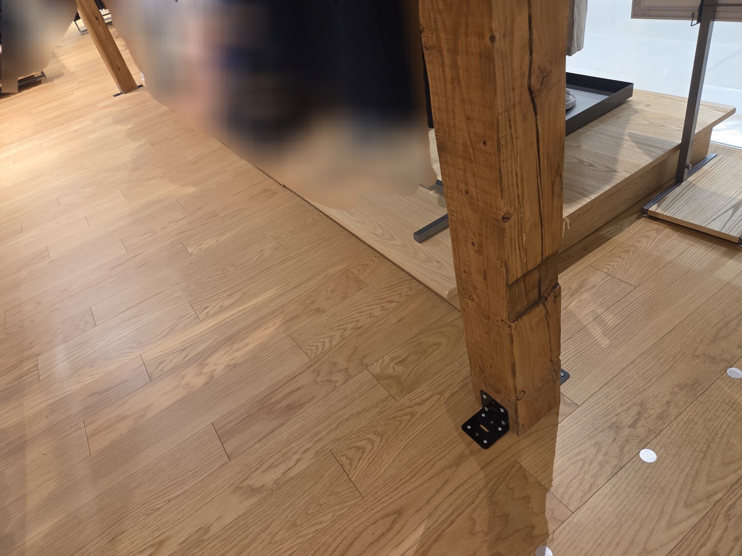 地震発生時に、柱や接地面がズレないための耐震補強の処置を施しました。