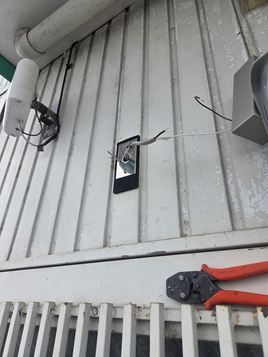 センサーライトの人感センサー部分が故障し、電気が付きっぱなしになるとのことでしたので、センサー部分の機器(電球以外)を交換しました。