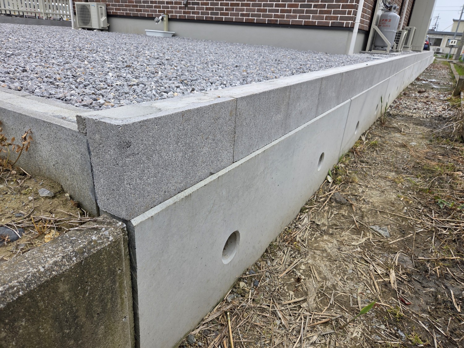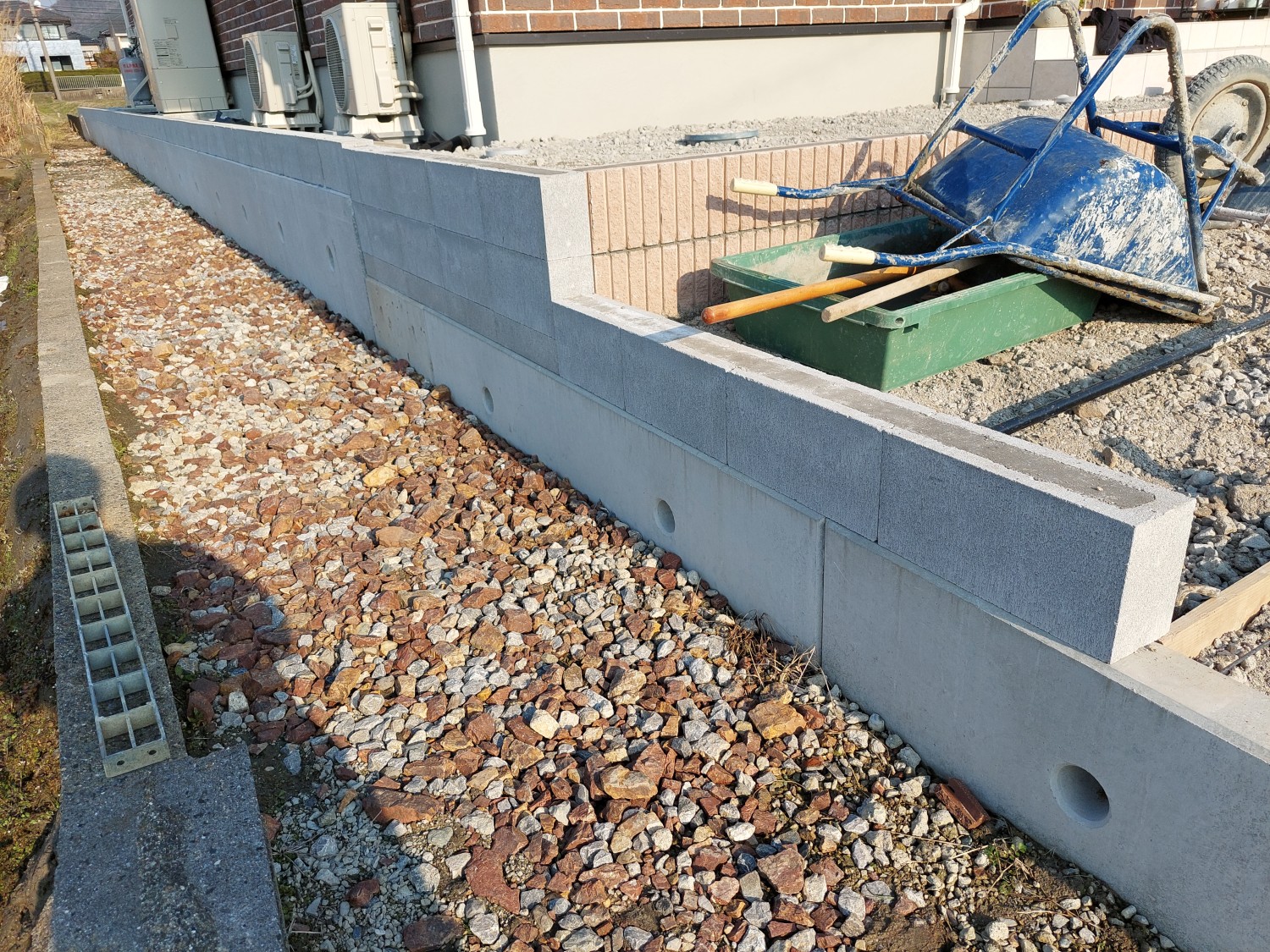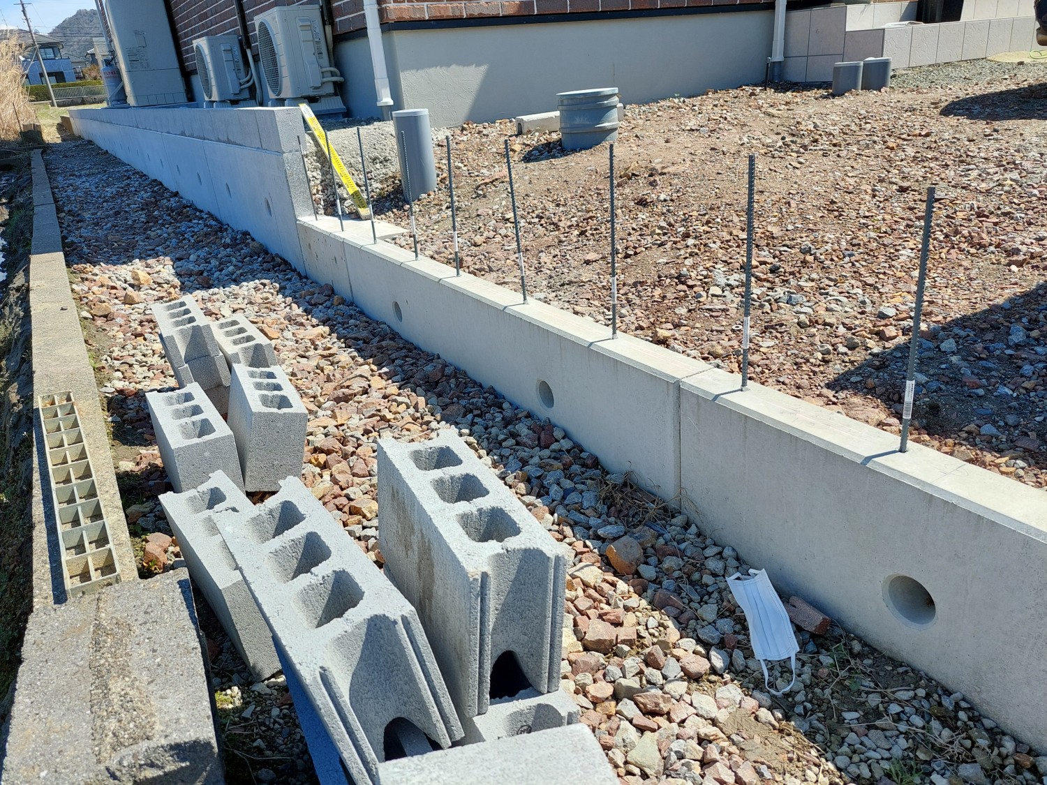 土留めのためにブロックを1段積みました。