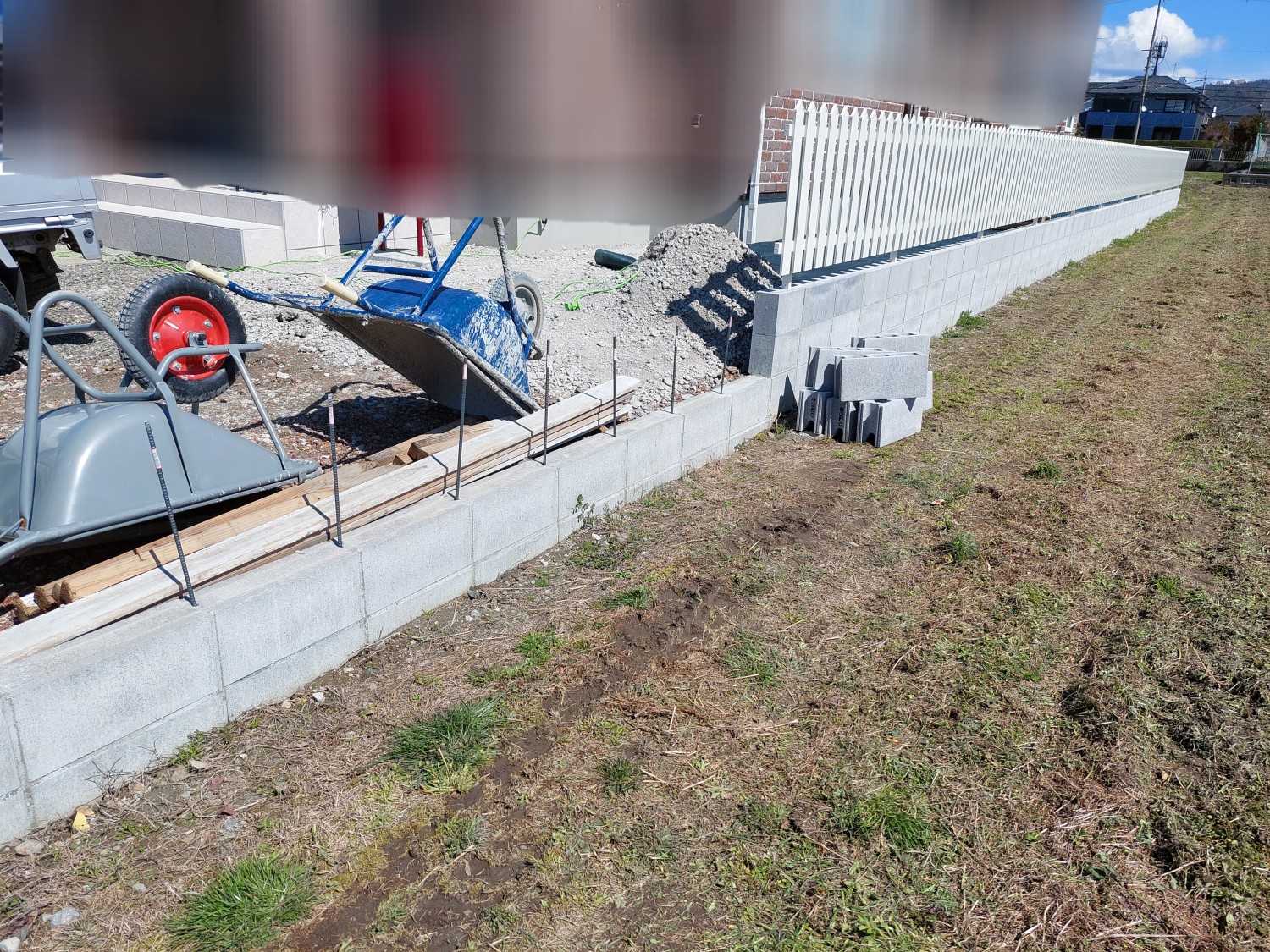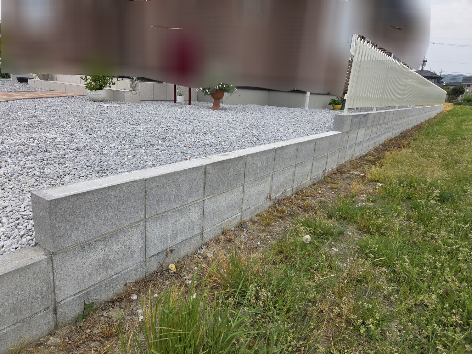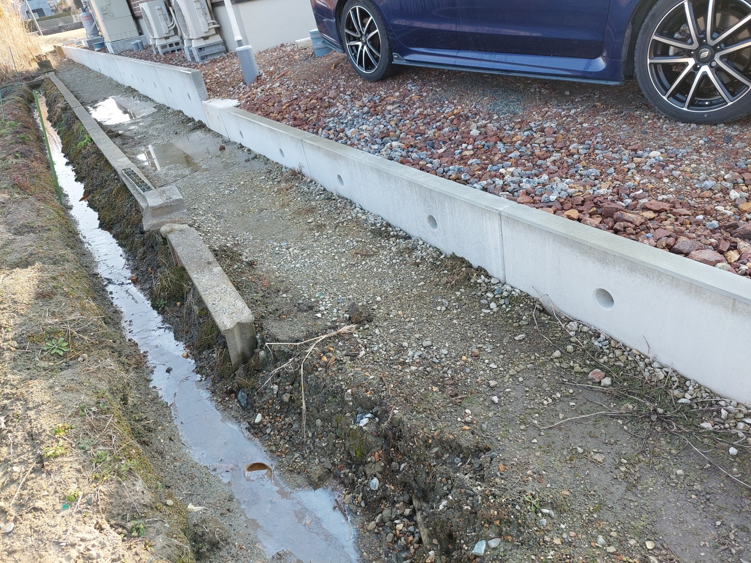 土留めのためにブロックを1段積みました。