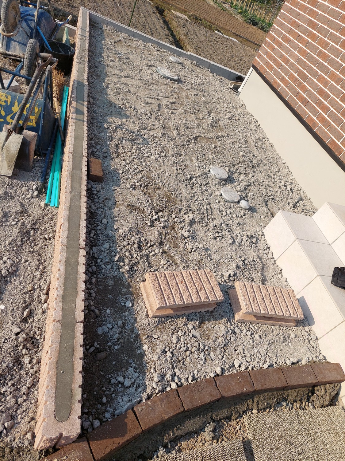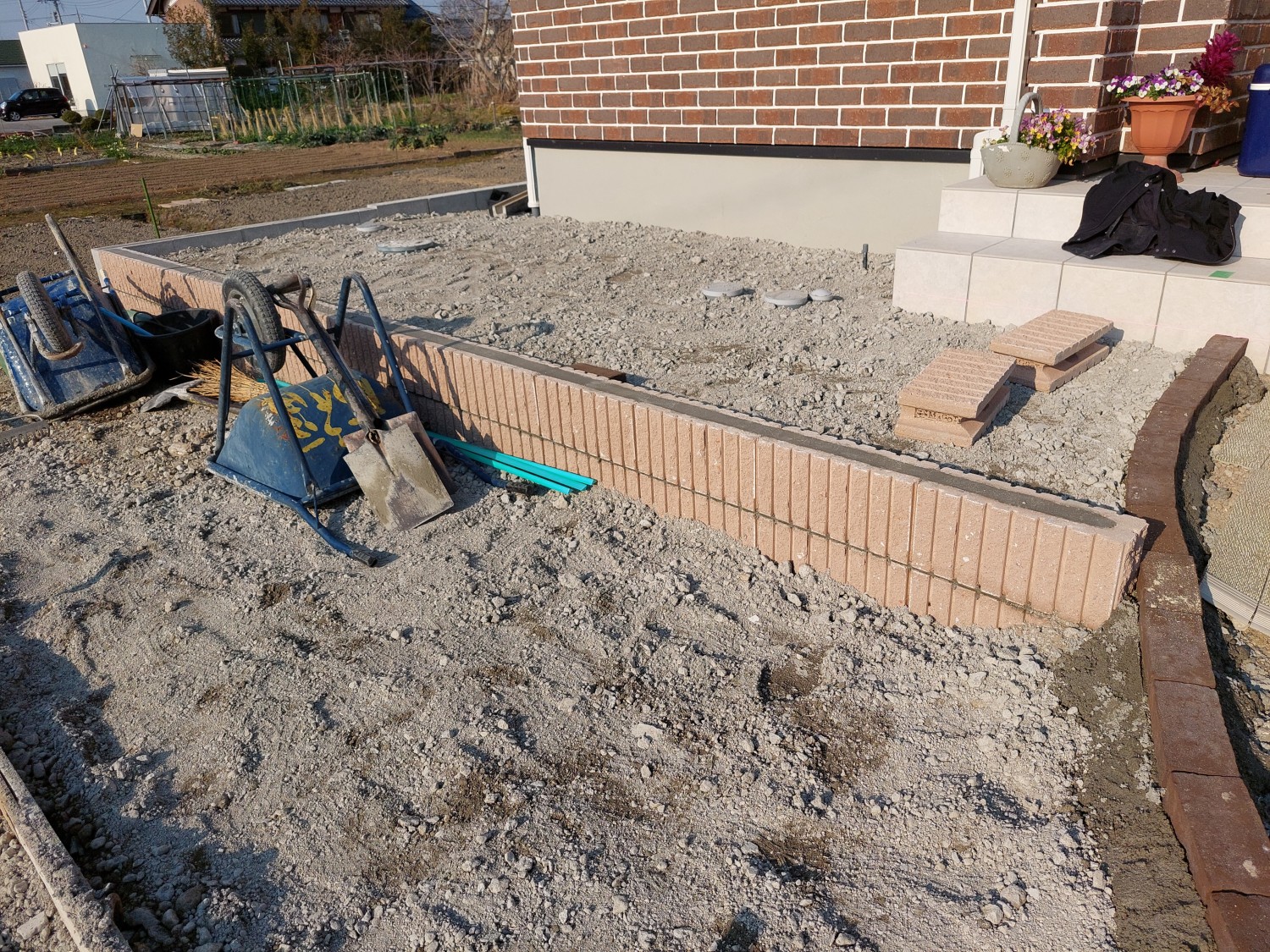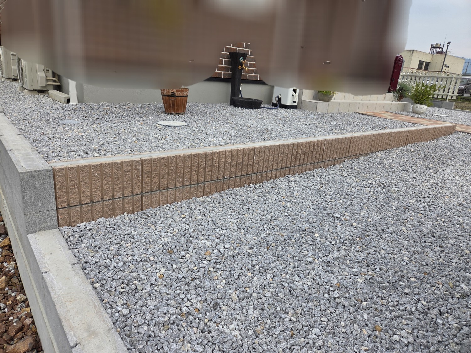 高低差が結構ありましたので、化粧ブロックにて間仕切りをおこない、高低差を違和感のないように付けました。