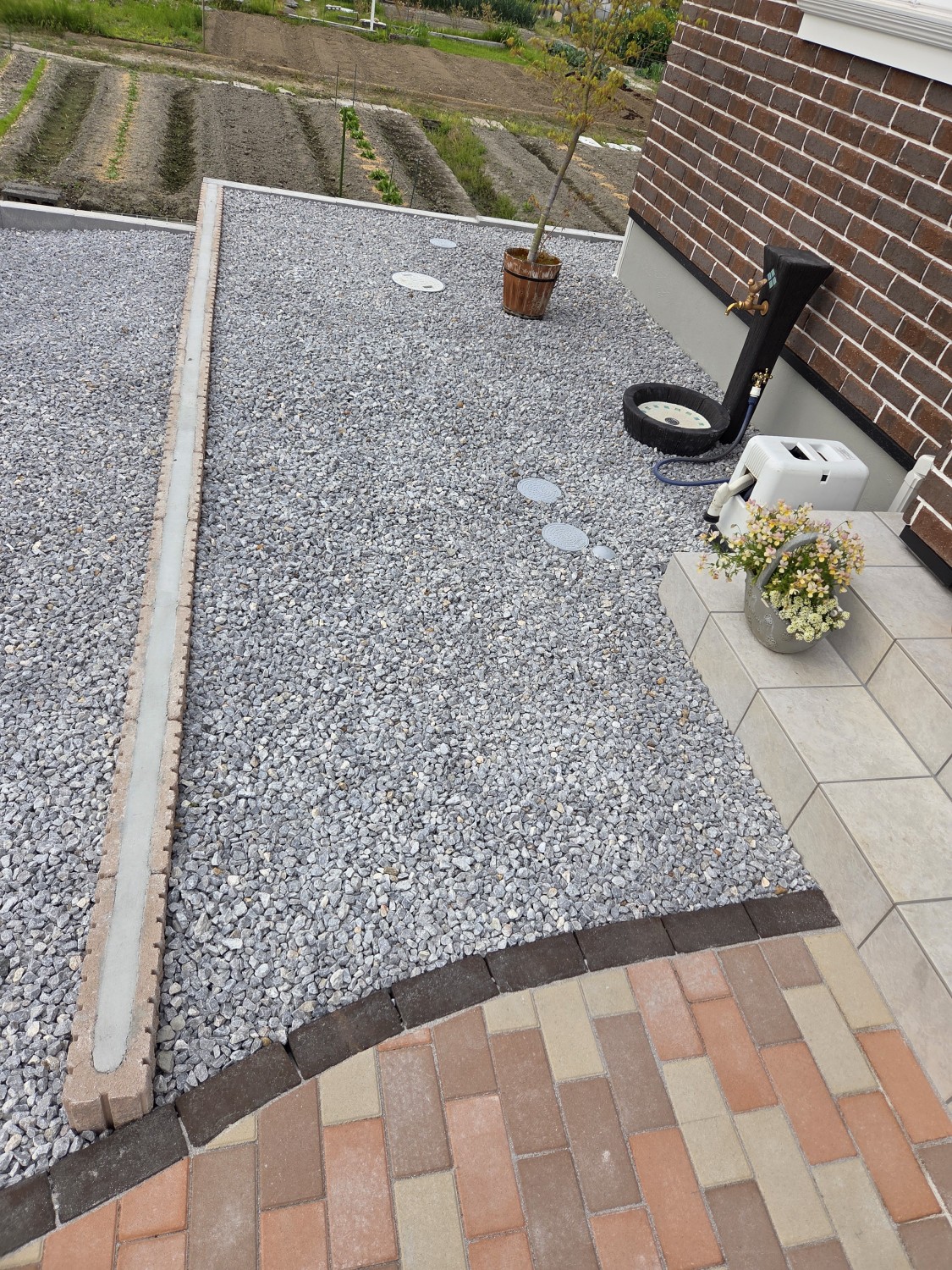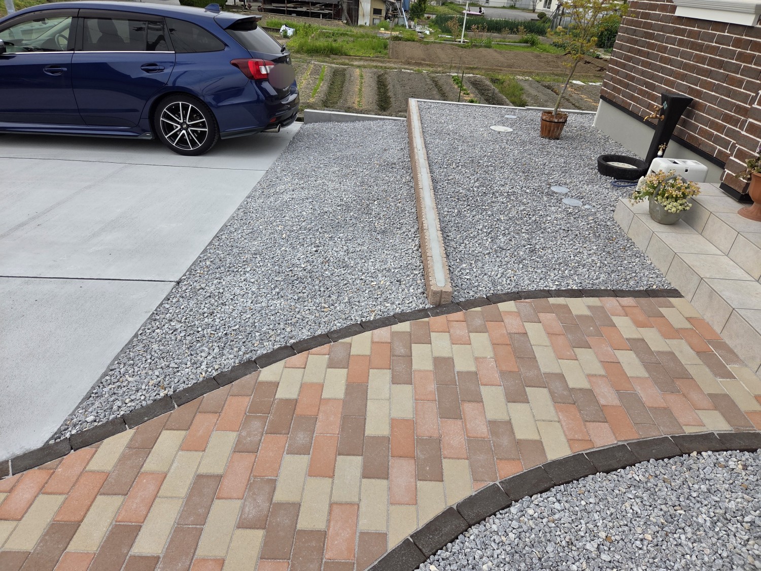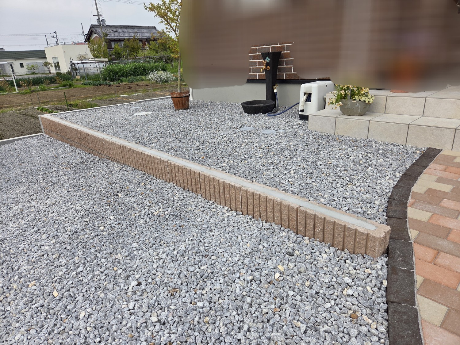 高低差が結構ありましたので、化粧ブロックにて間仕切りをおこない、高低差を違和感のないように付けました。