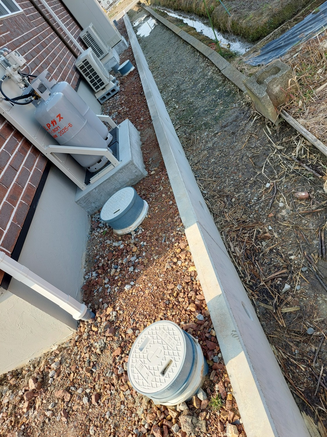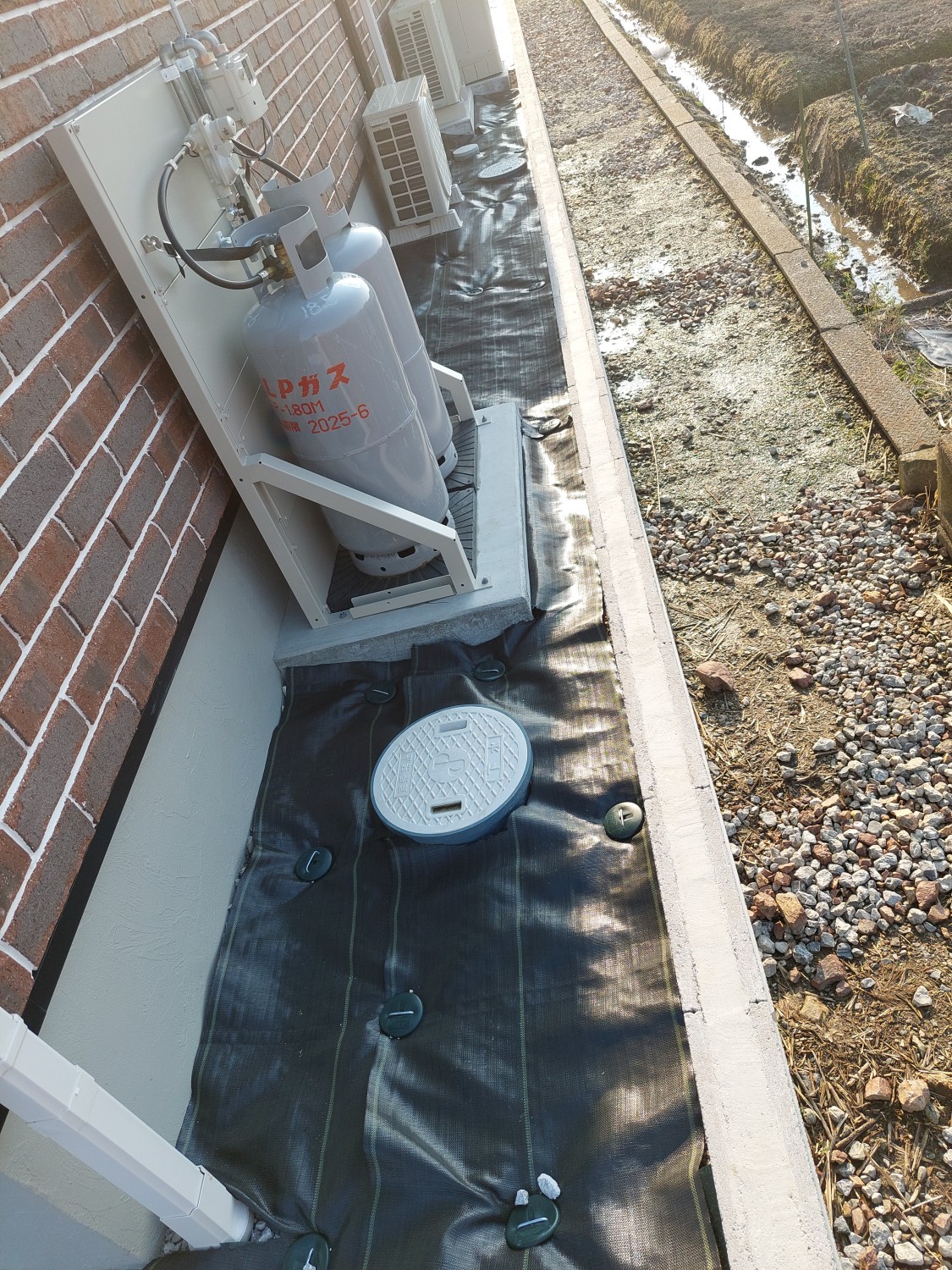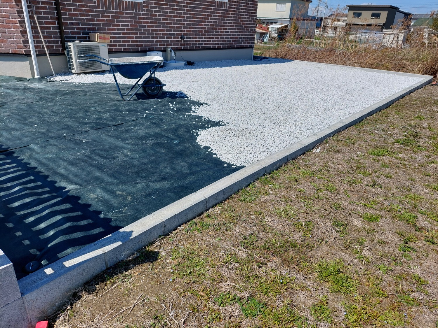 砕石入れ + 防草シート・砂利敷き 1