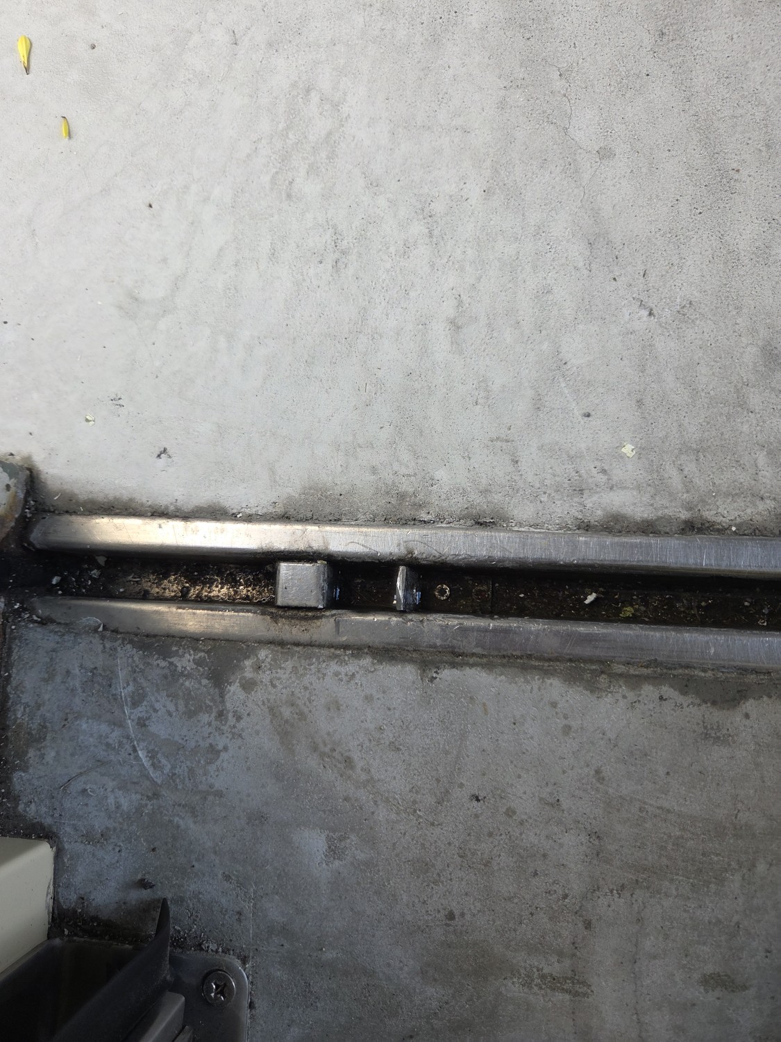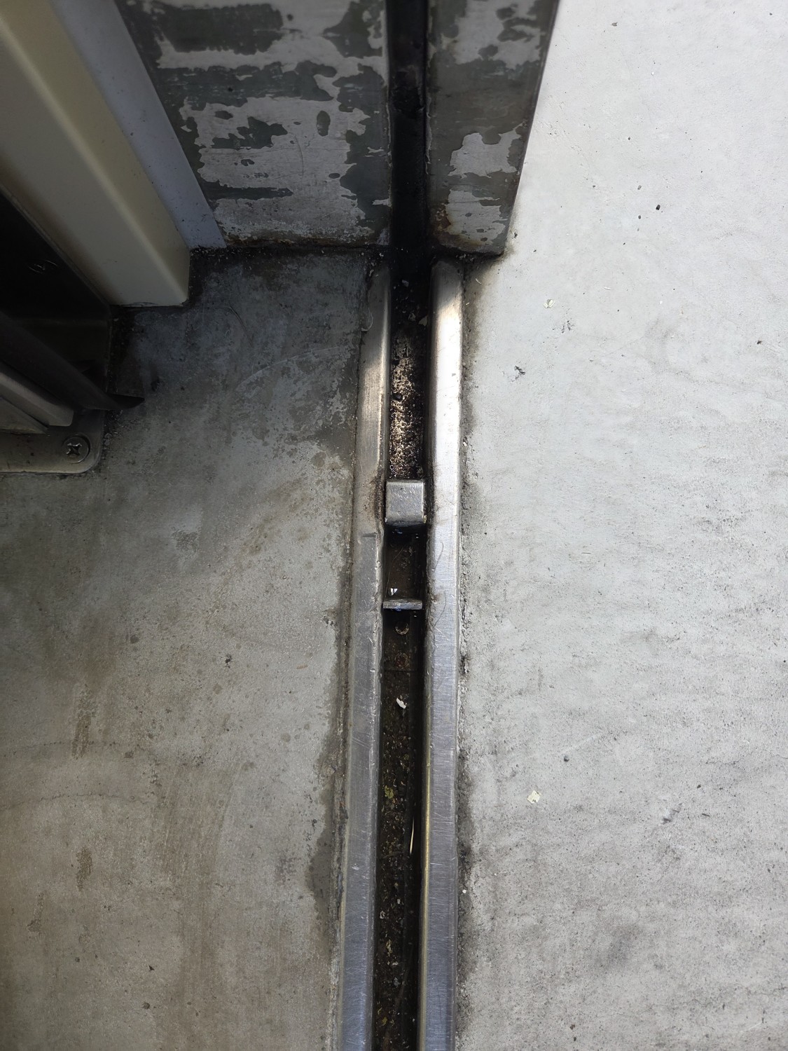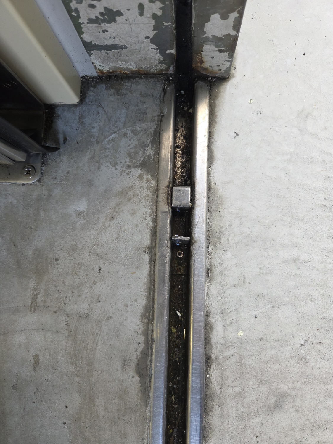 鉄扉であるため重く、鍵をかけたまま閉めたことによる鍵受け金具の変形による施錠不可となっておりましたので、鍵受け金具を成形加工しまして補修しました。