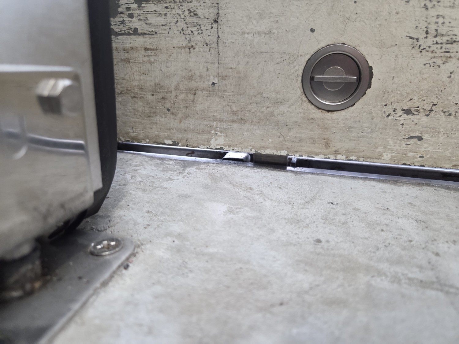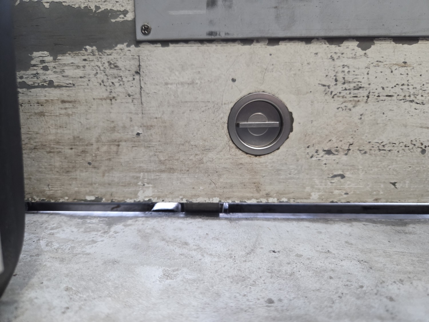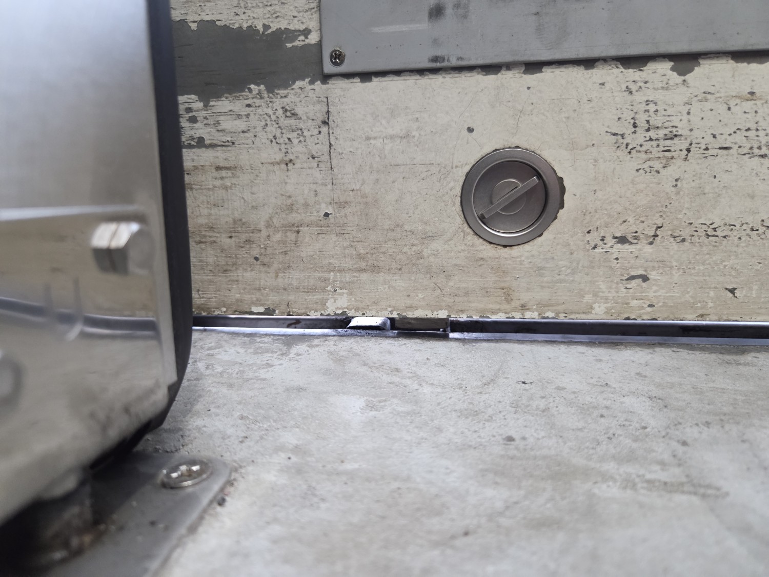 鉄扉であるため重く、鍵をかけたまま閉めたことによる鍵受け金具の変形による施錠不可となっておりましたので、鍵受け金具を成形加工しまして補修しました。