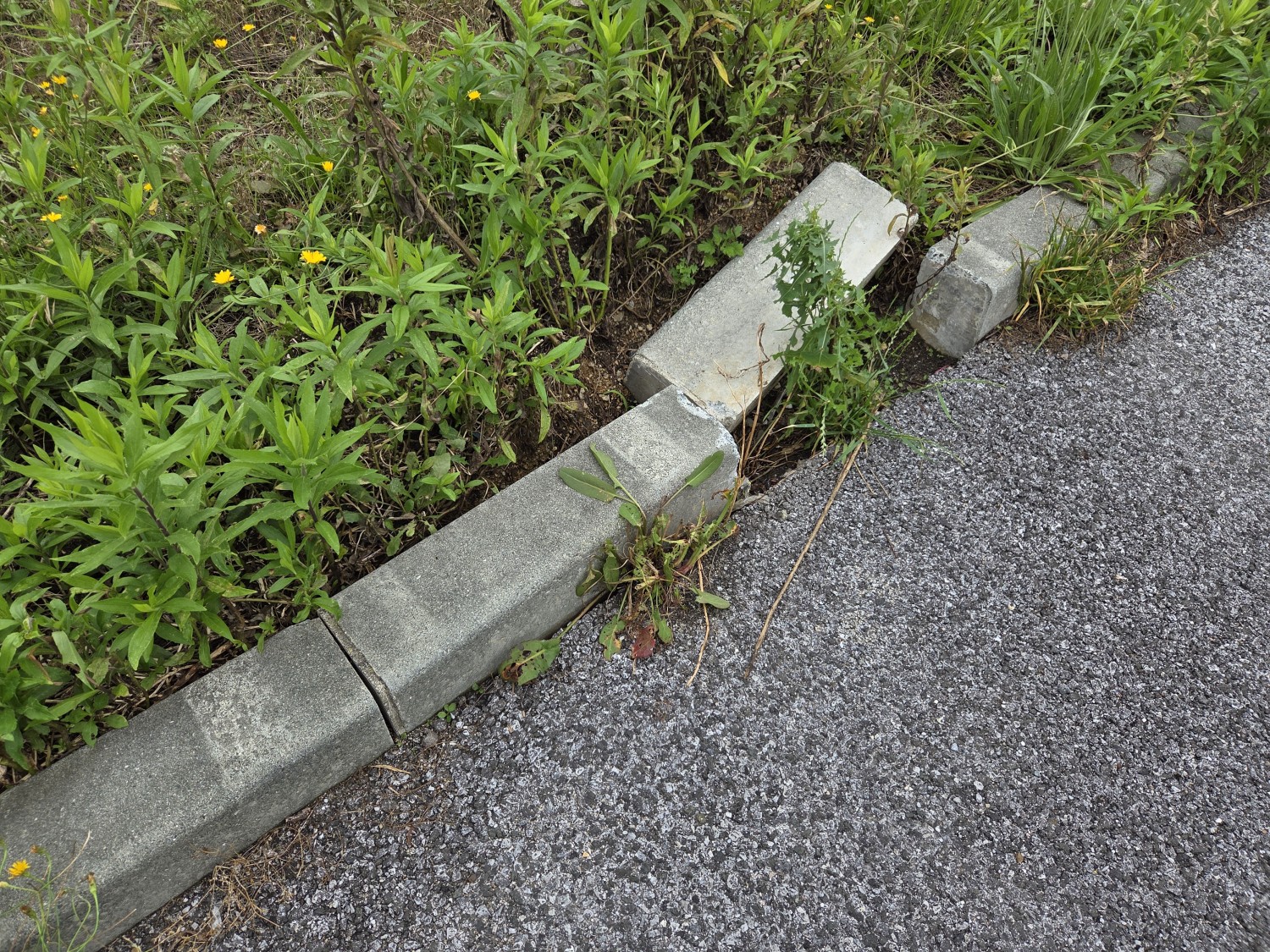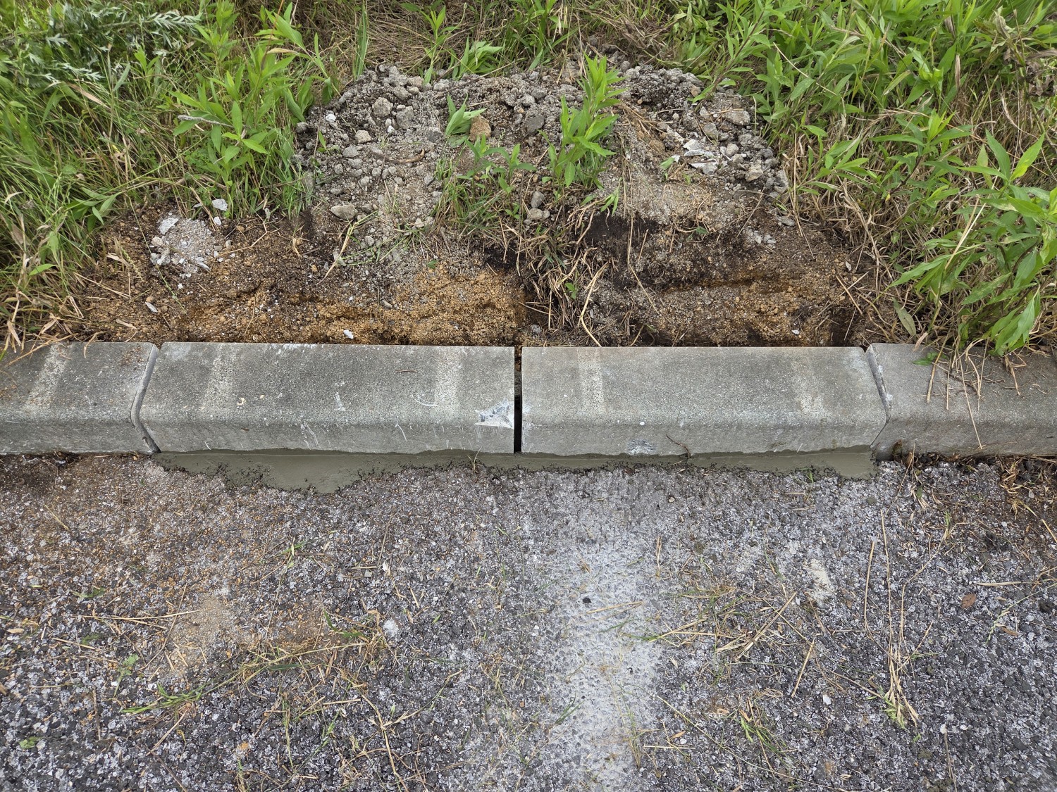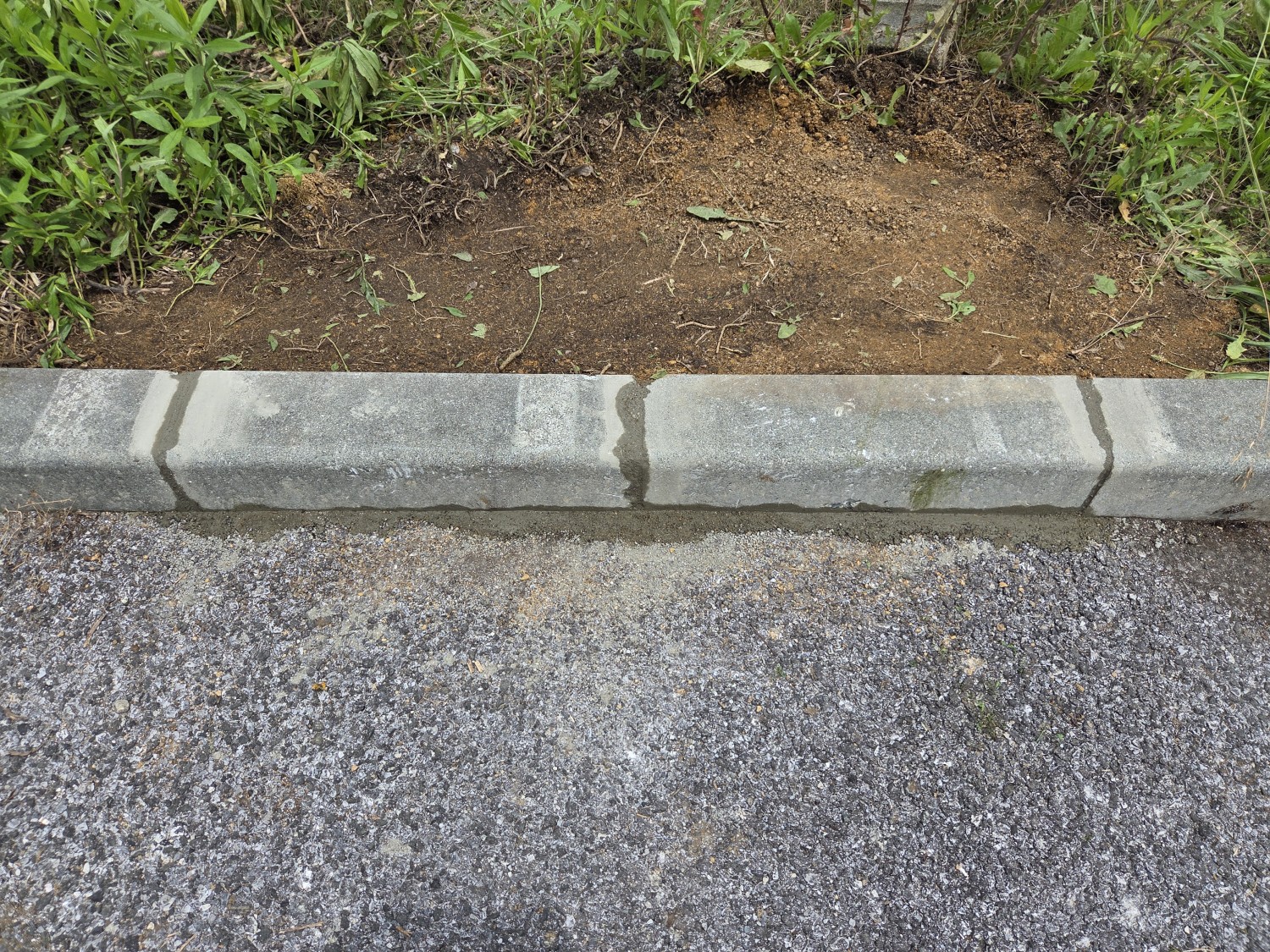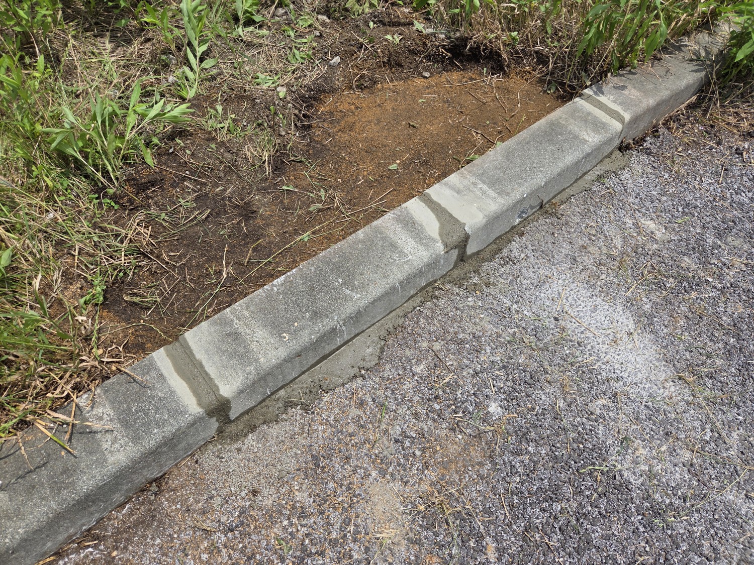 駐車場の車止めの地先ブロックが車に押され、ズレていましたので据え付けし直しました。