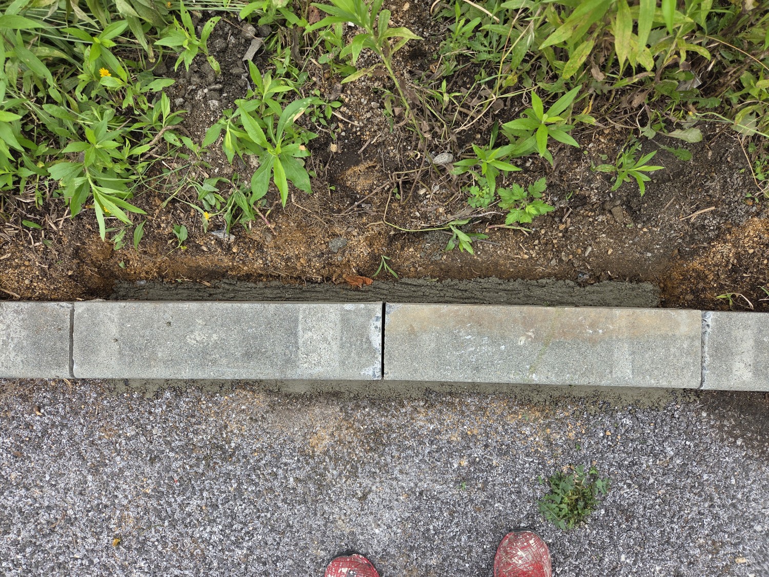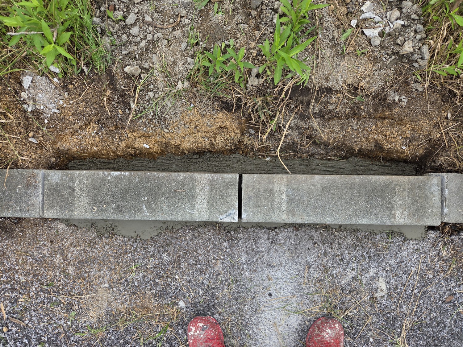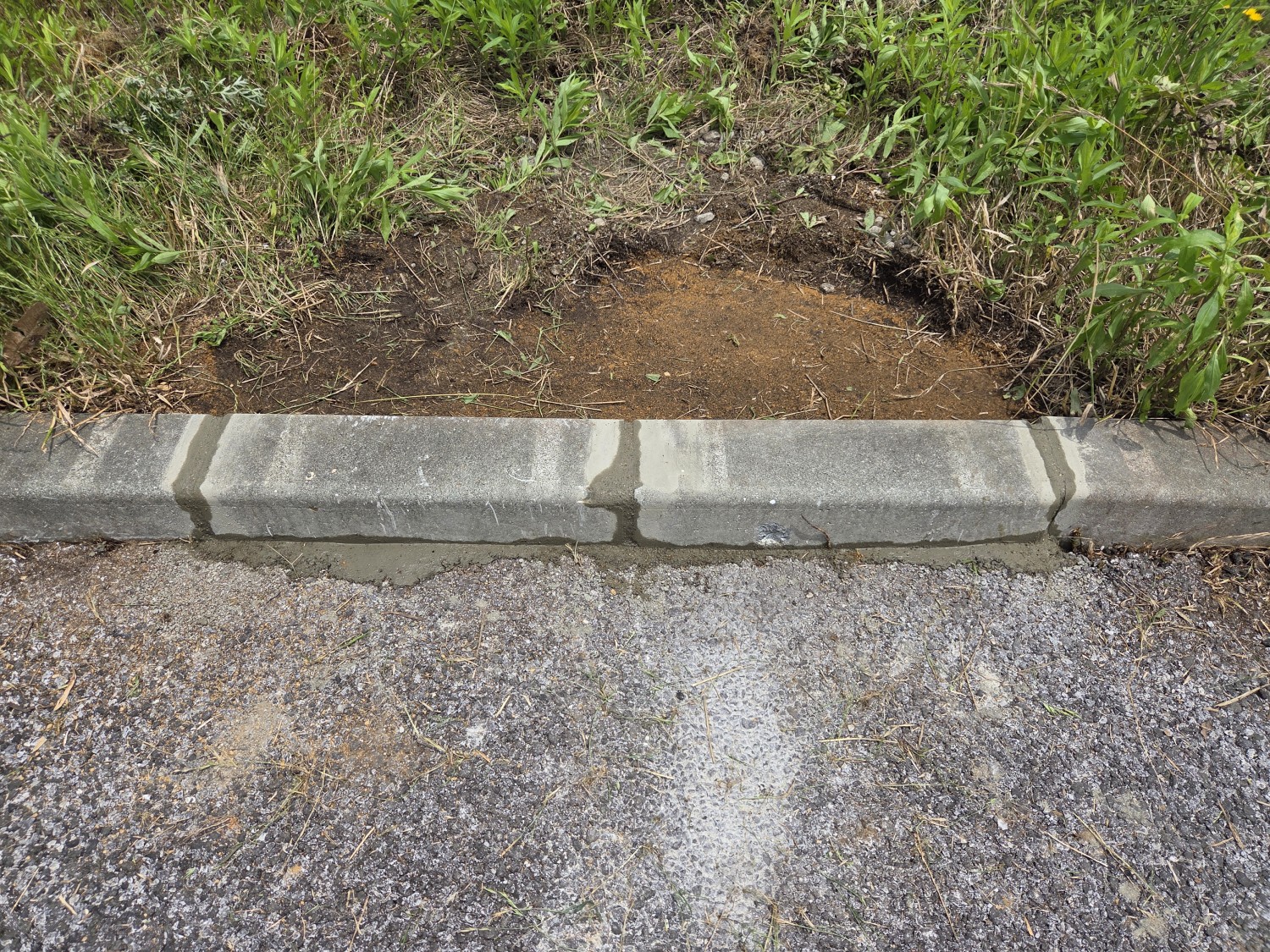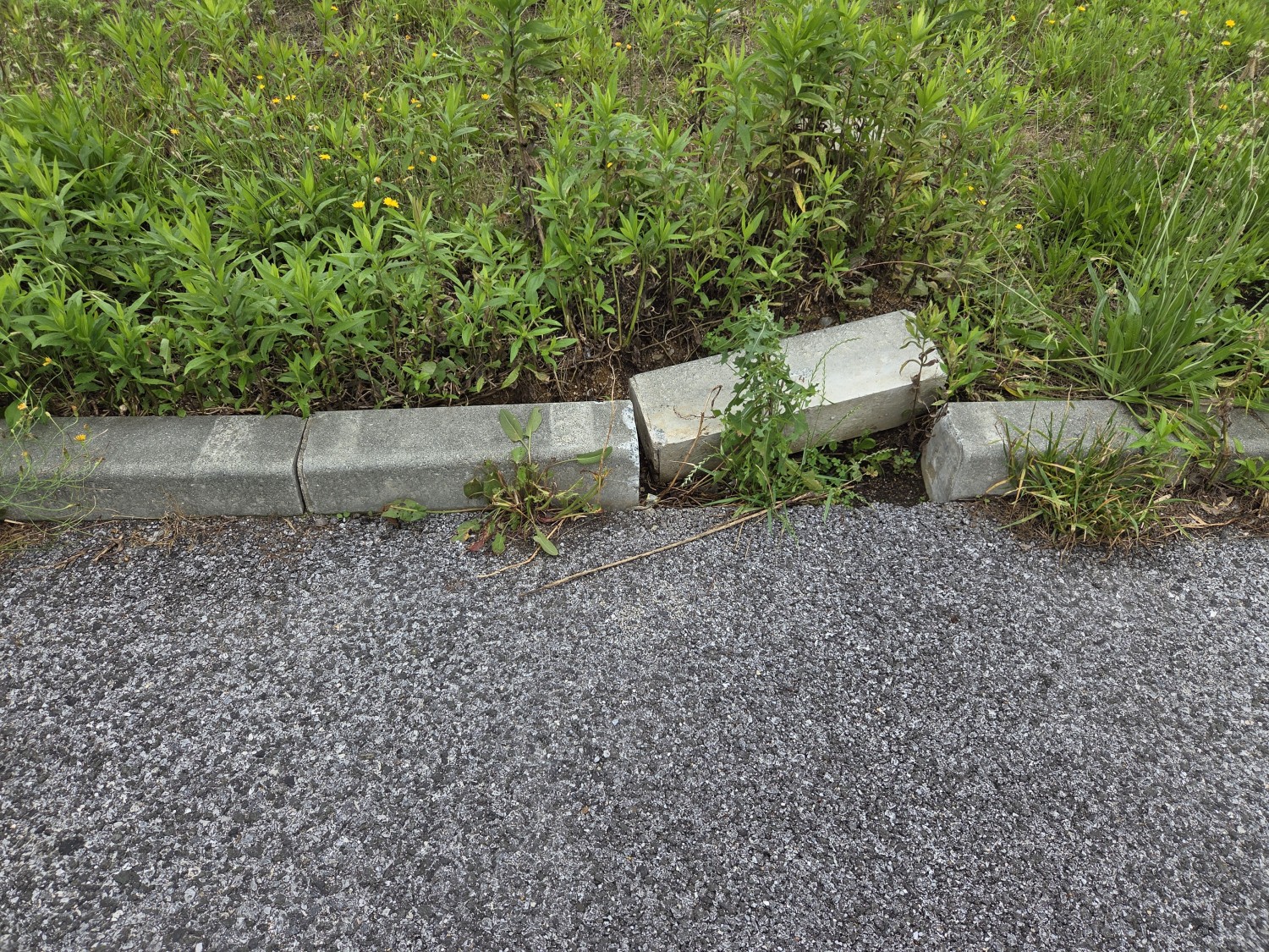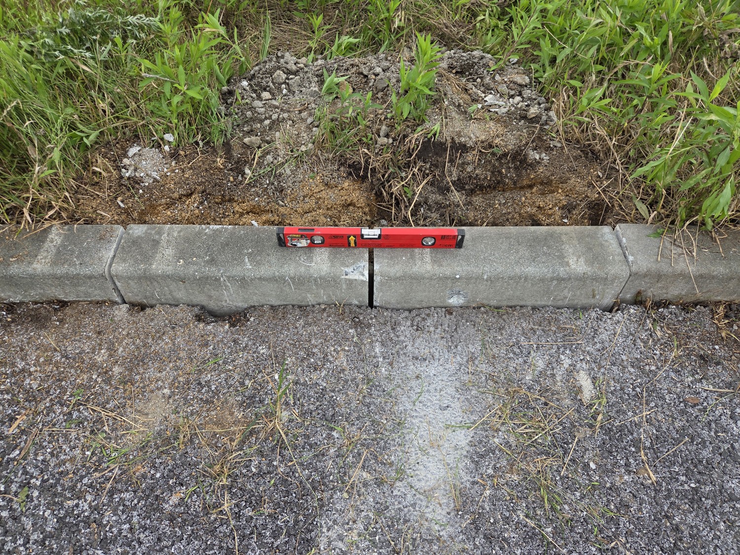 駐車場の車止めの地先ブロックが車に押され、ズレていましたので据え付けし直しました。