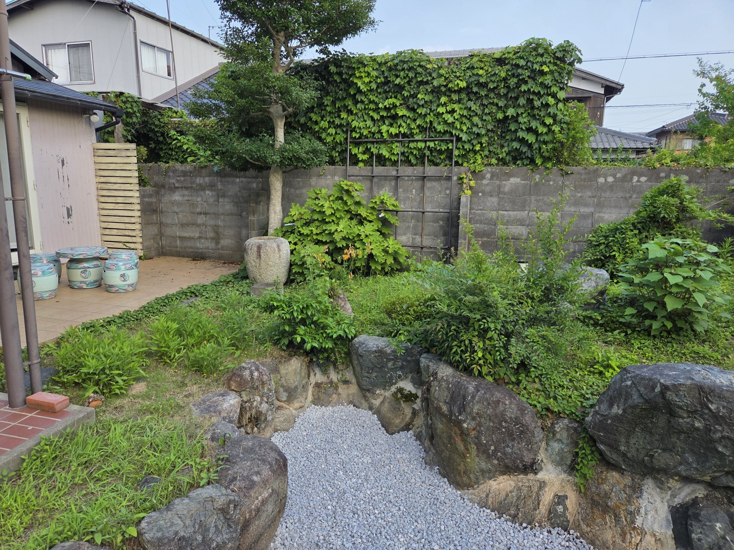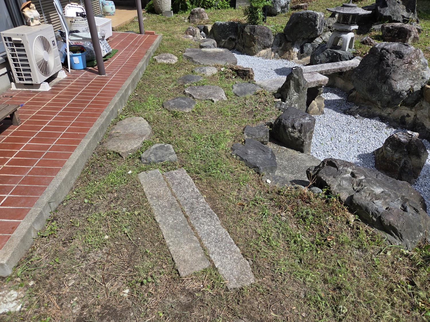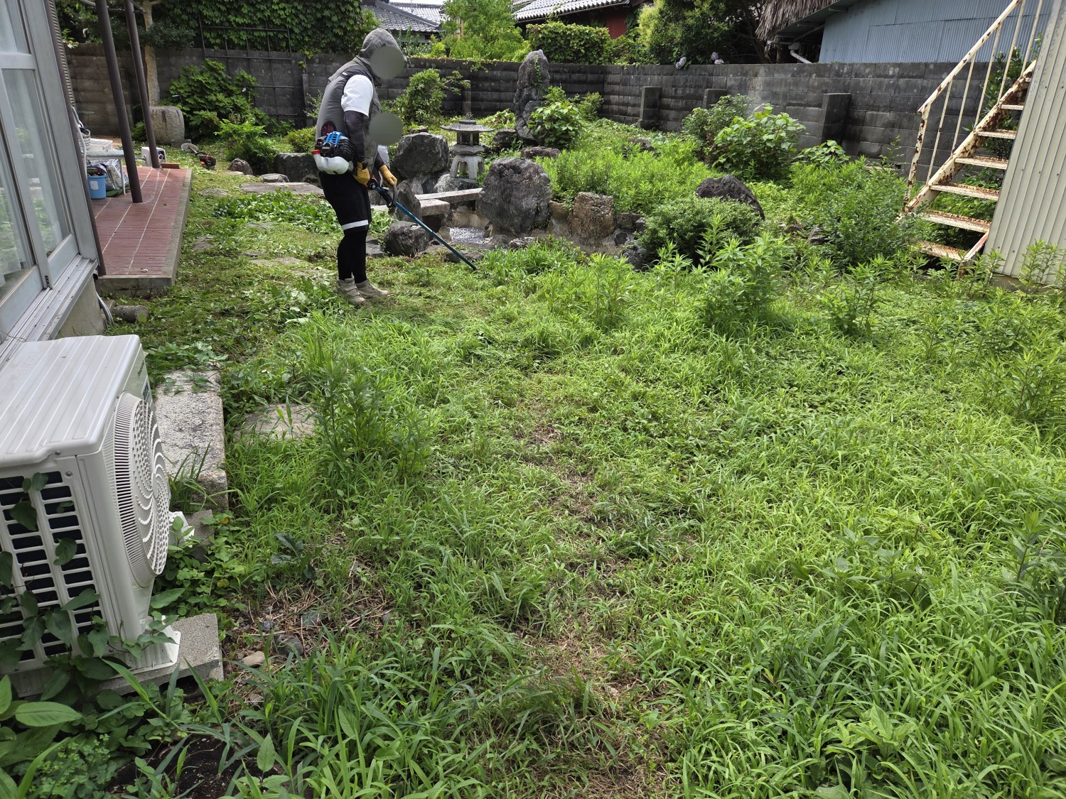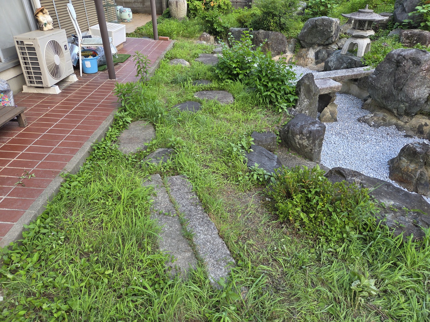 お庭の除草をおこない、その後に除草剤を散布しました。