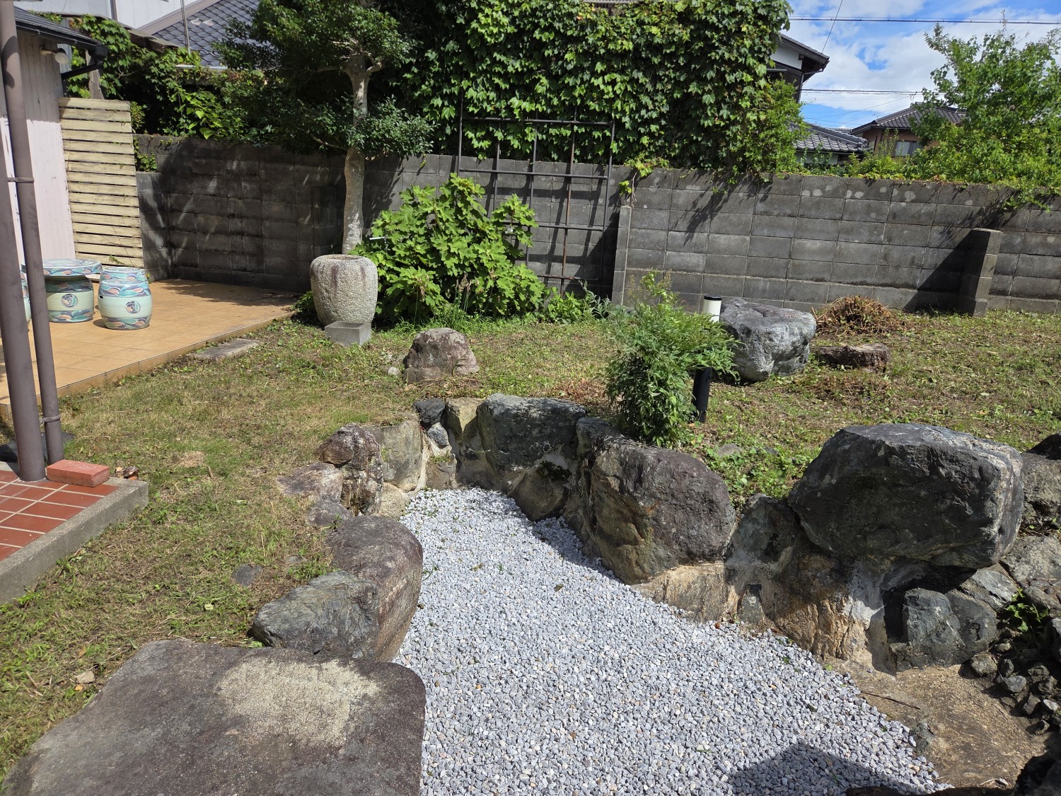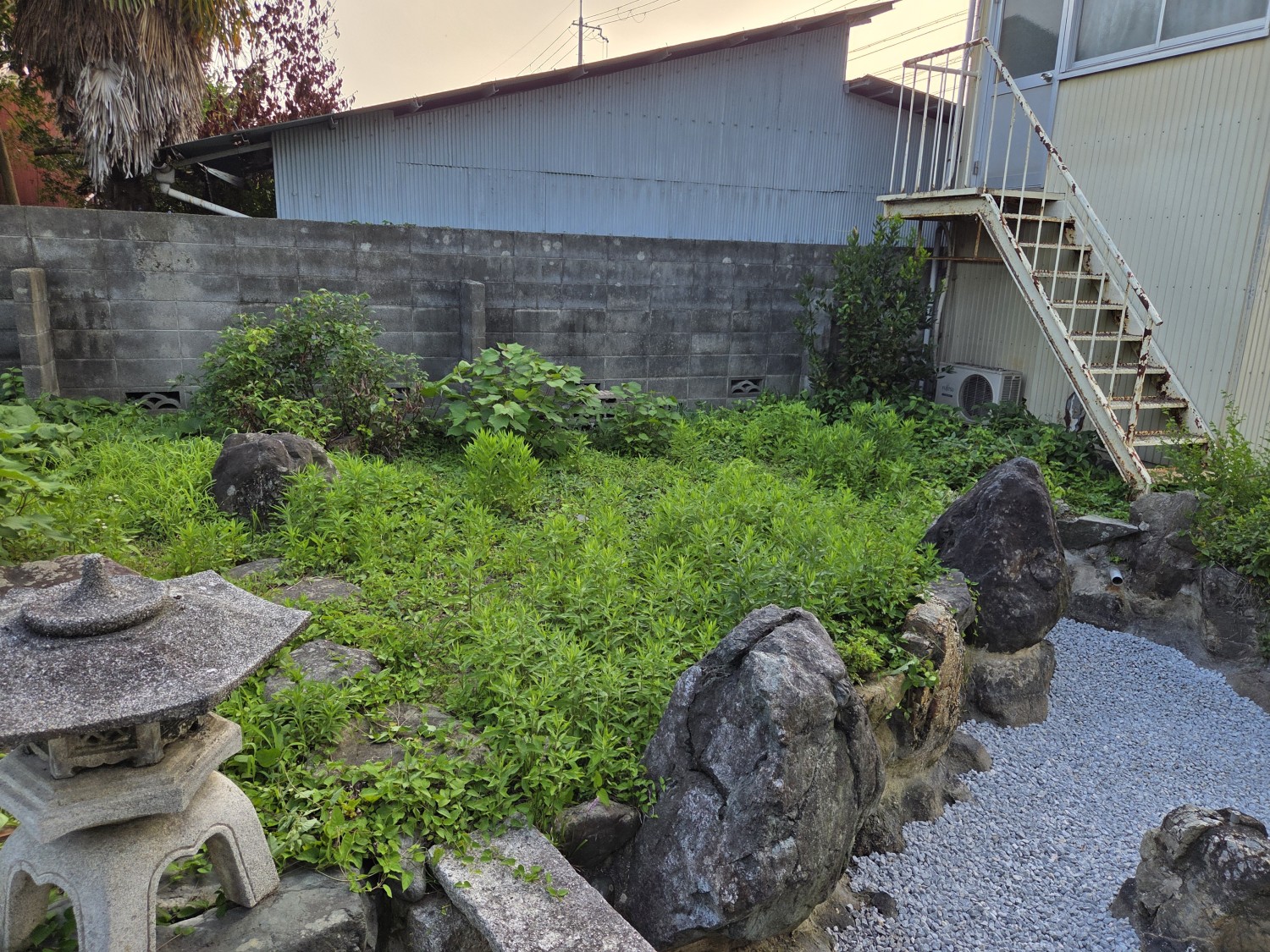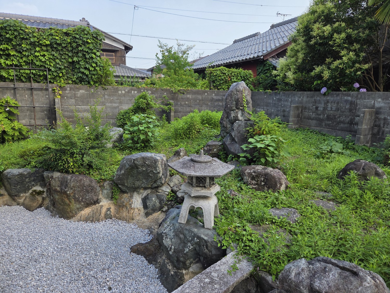 お庭の除草をおこない、その後に除草剤を散布しました。