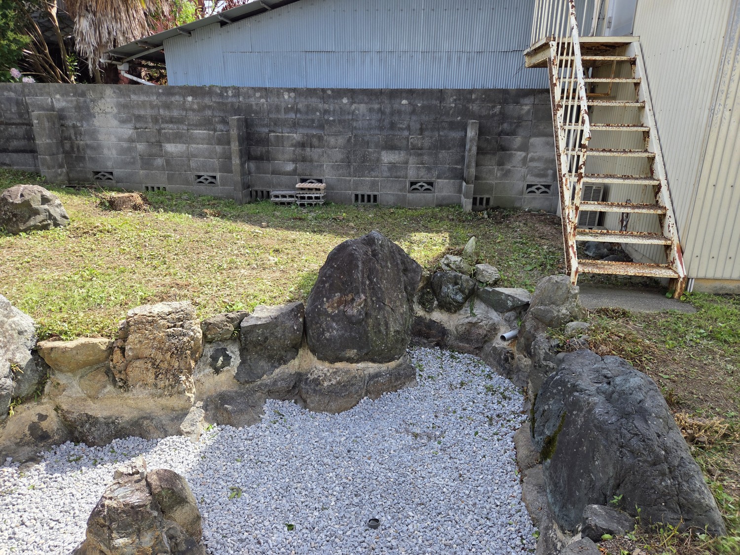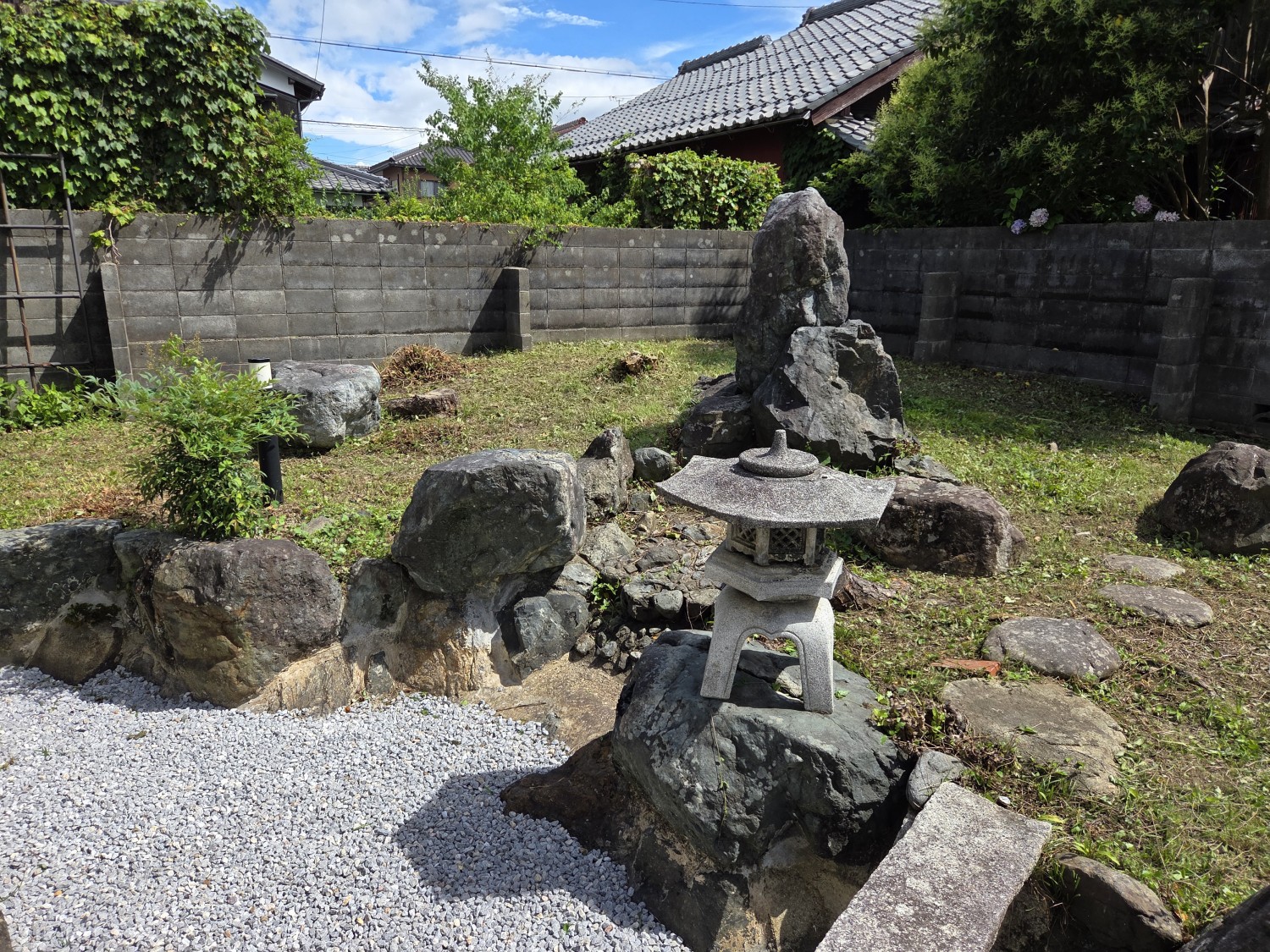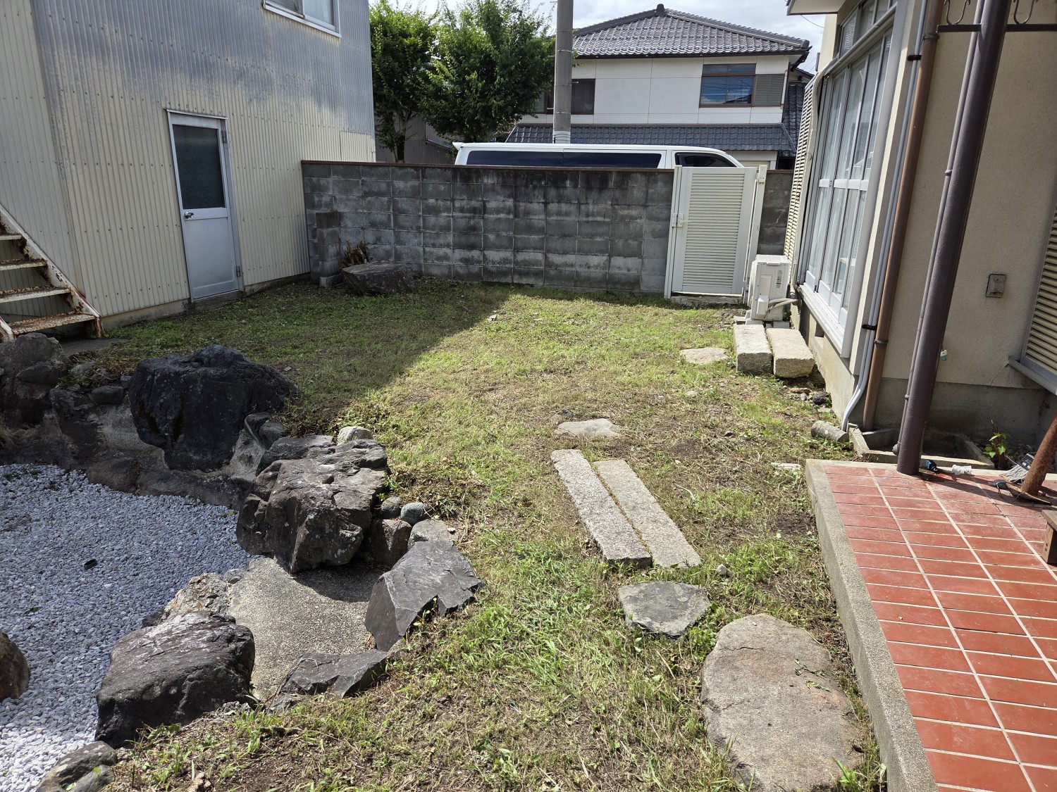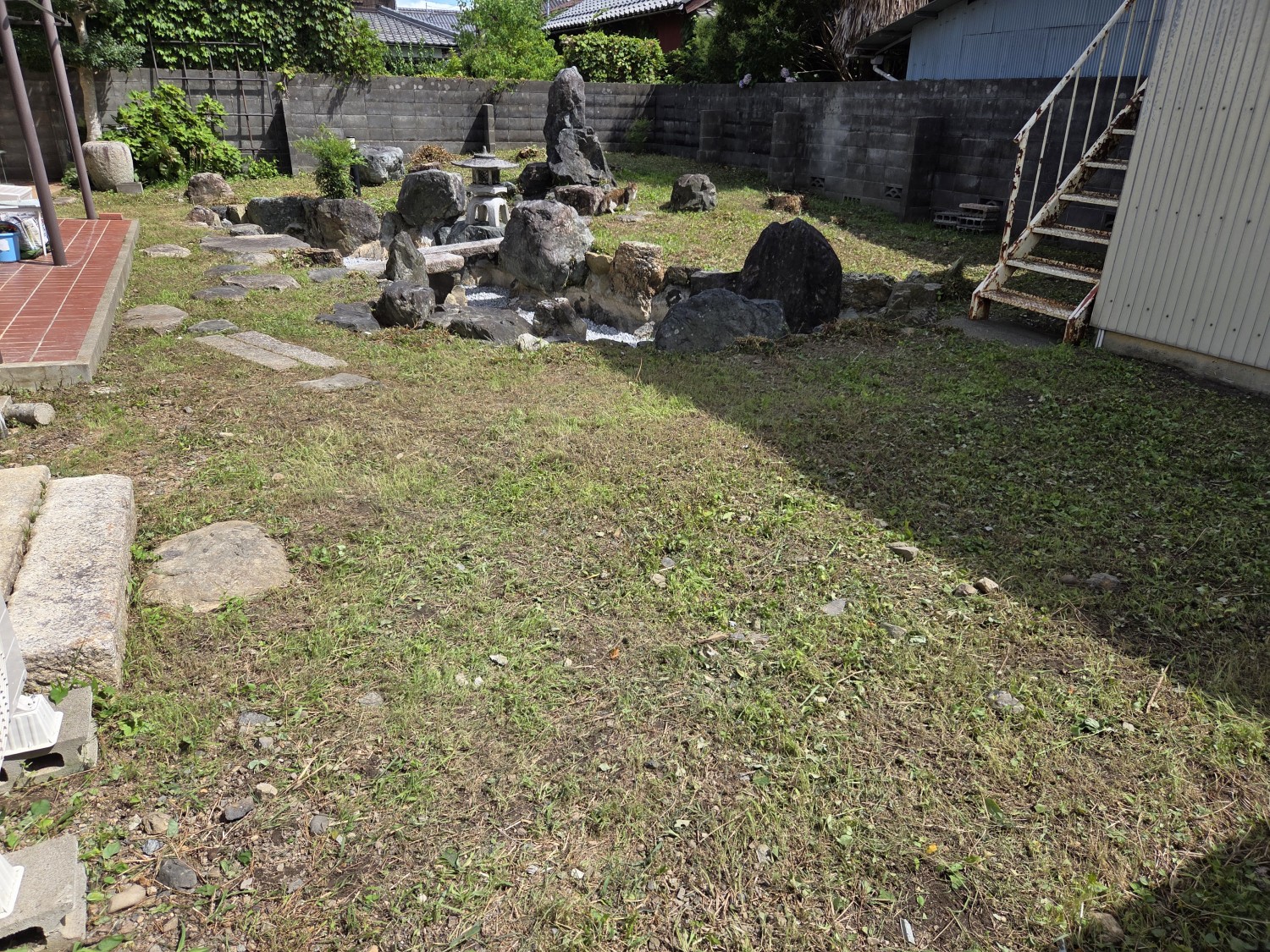 お庭の除草をおこない、その後に除草剤を散布しました。