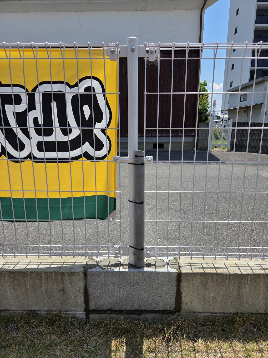 フェンスの柱が曲がったとのことでしたので、フェンスの柱1本のみを交換しました。