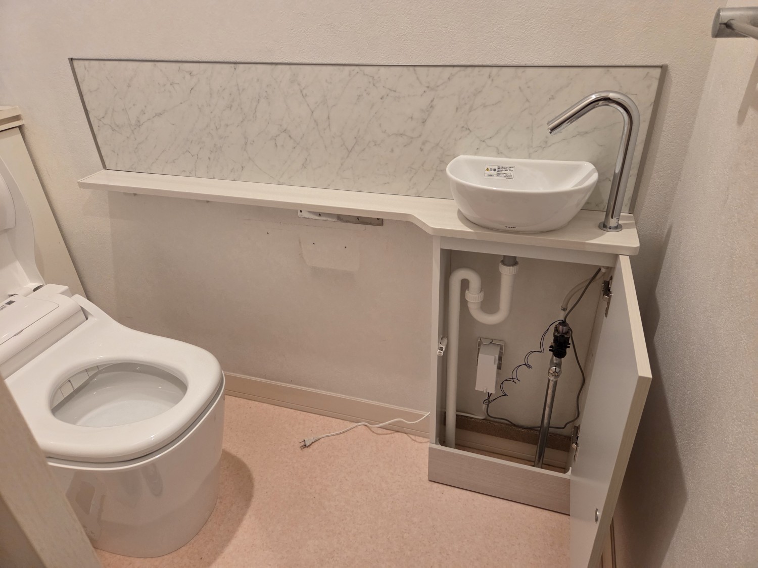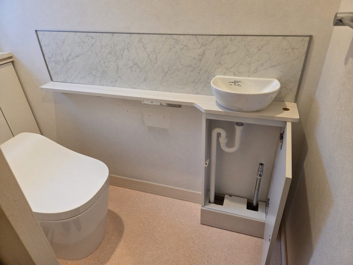 > トイレ洗面器交換 自動水栓+カウンター