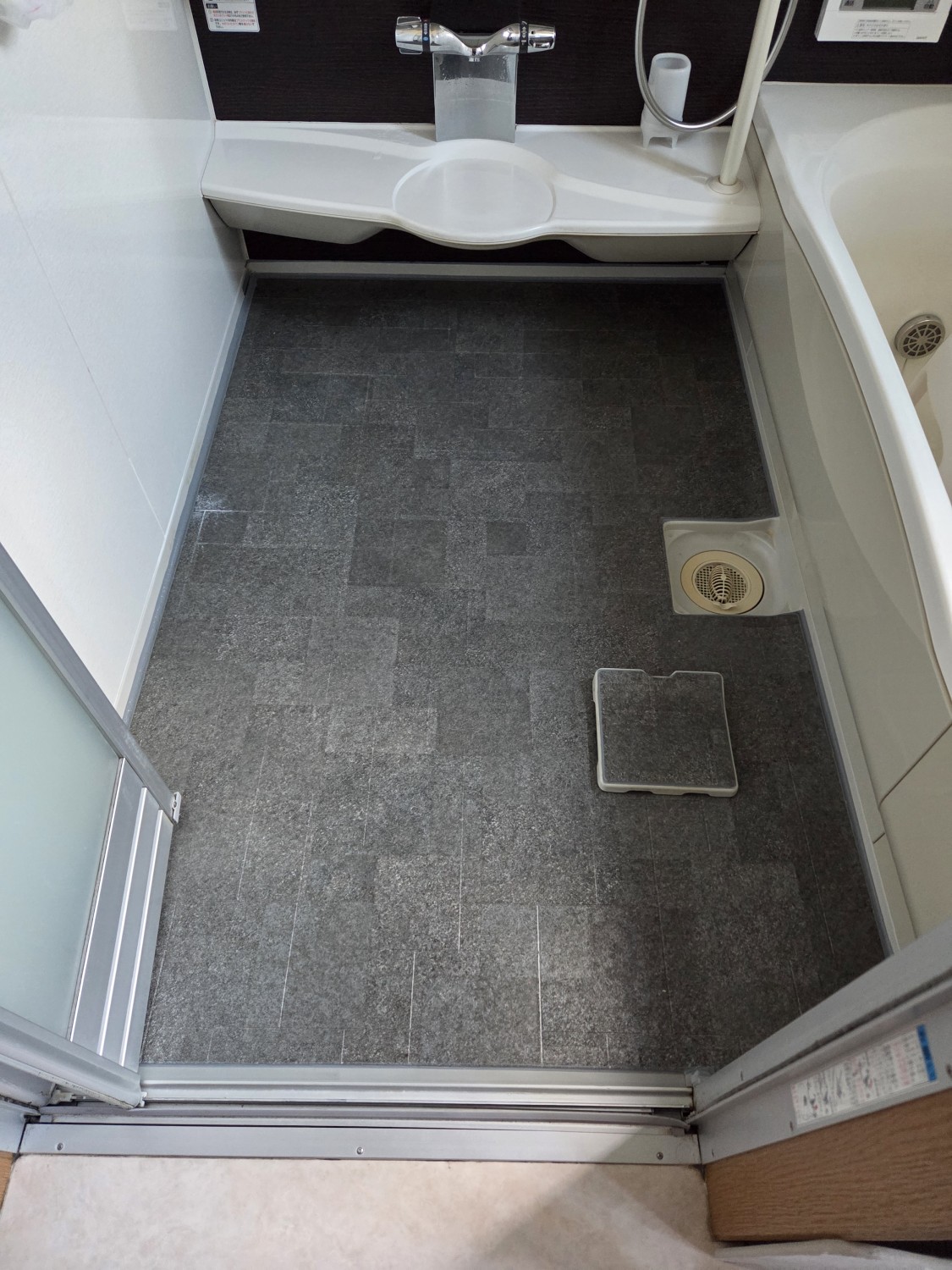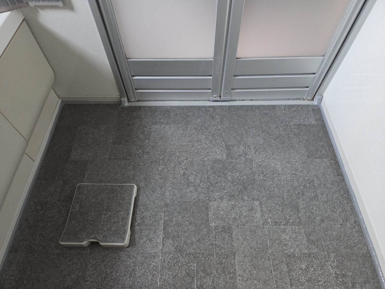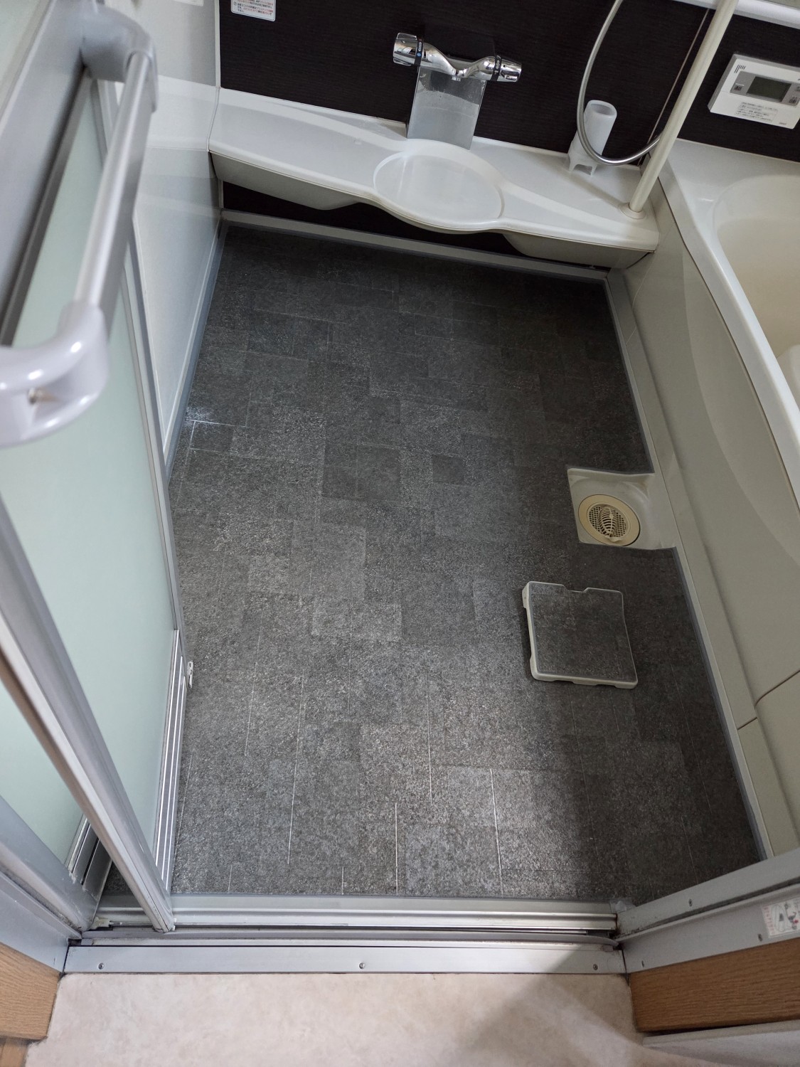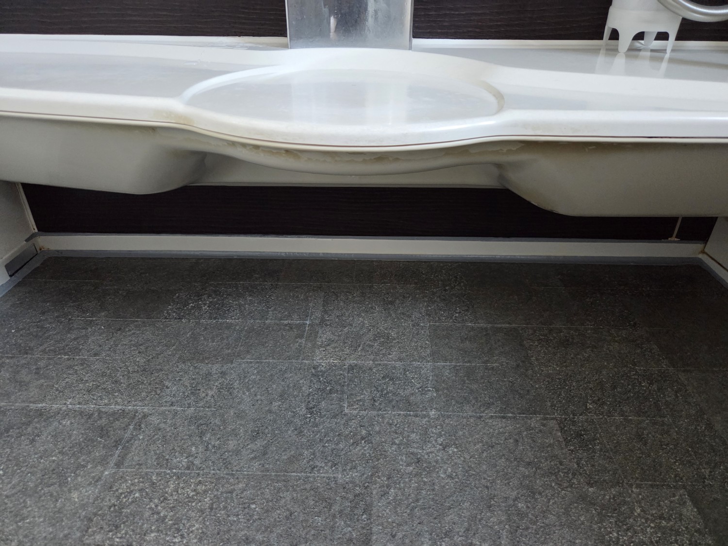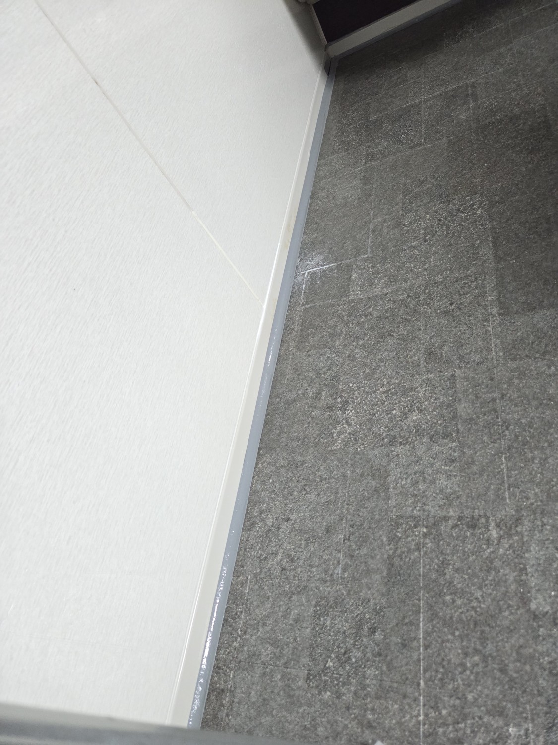 浴室の床周りのコーキングが汚れてきておりましたので、既存のコーキングをめくってから、新たにコーキングを打ち替えました。