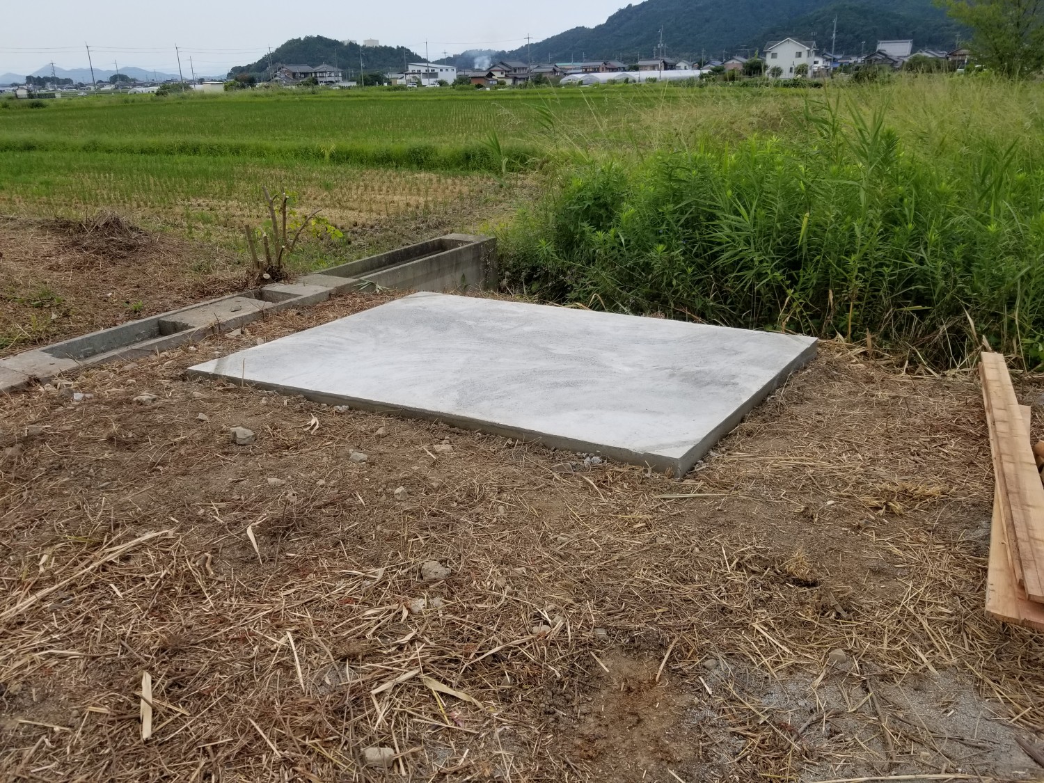 物置を置くのに地が柔らかい為、基礎を据えました。