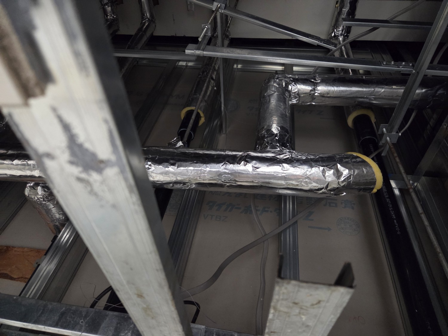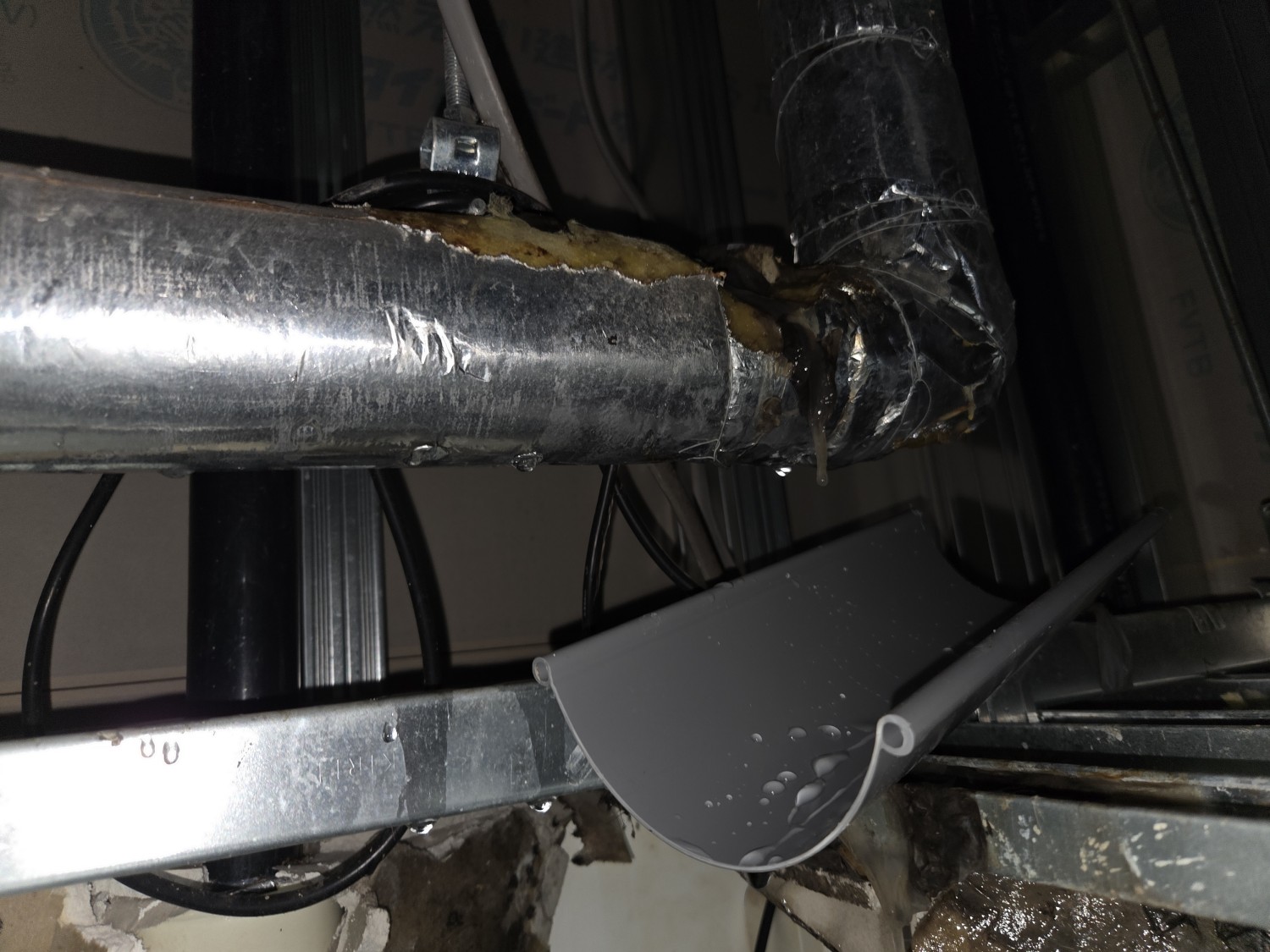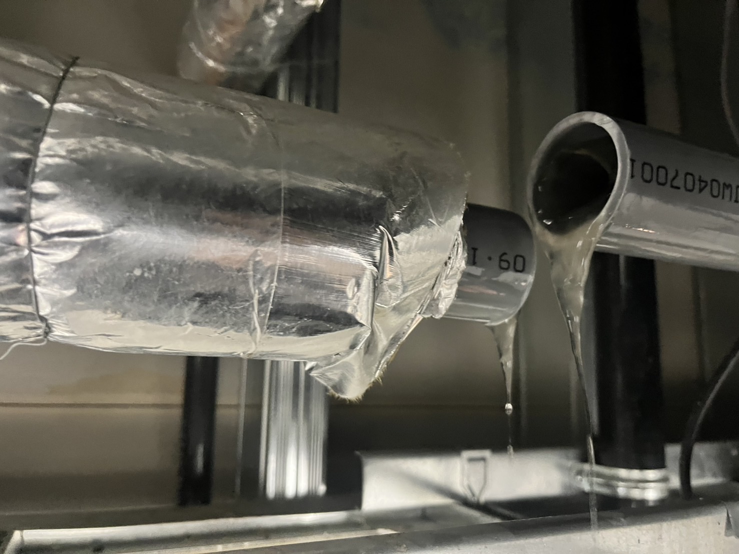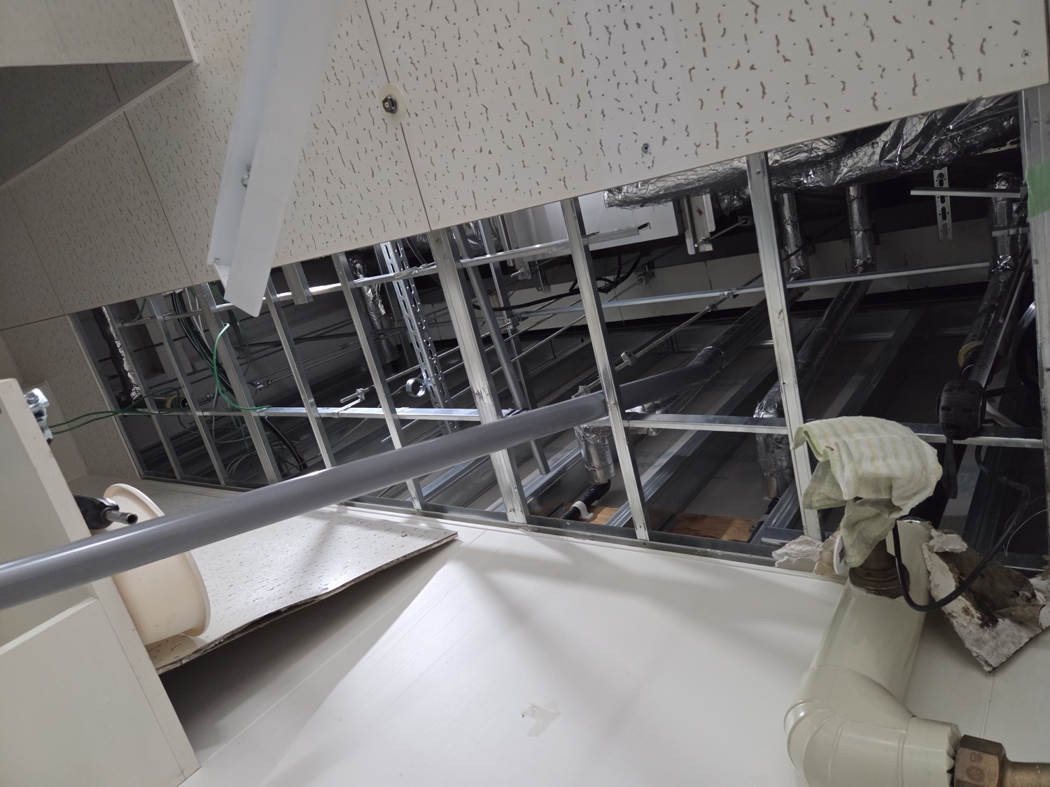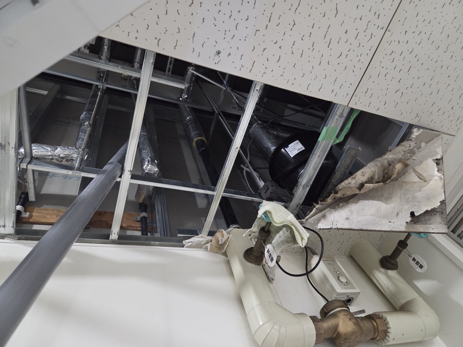 業務用エアコンのドレン管から水漏れが発生していましたので、損傷箇所のドレン管を交換し、既存との接続をおこないました。