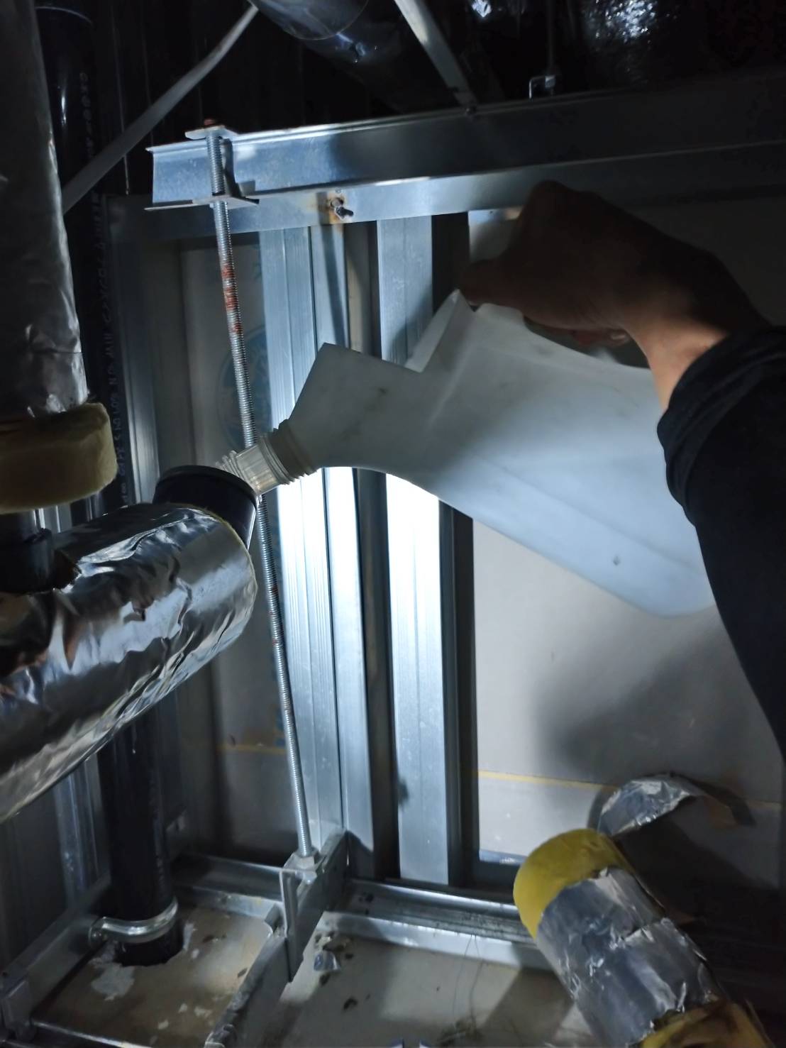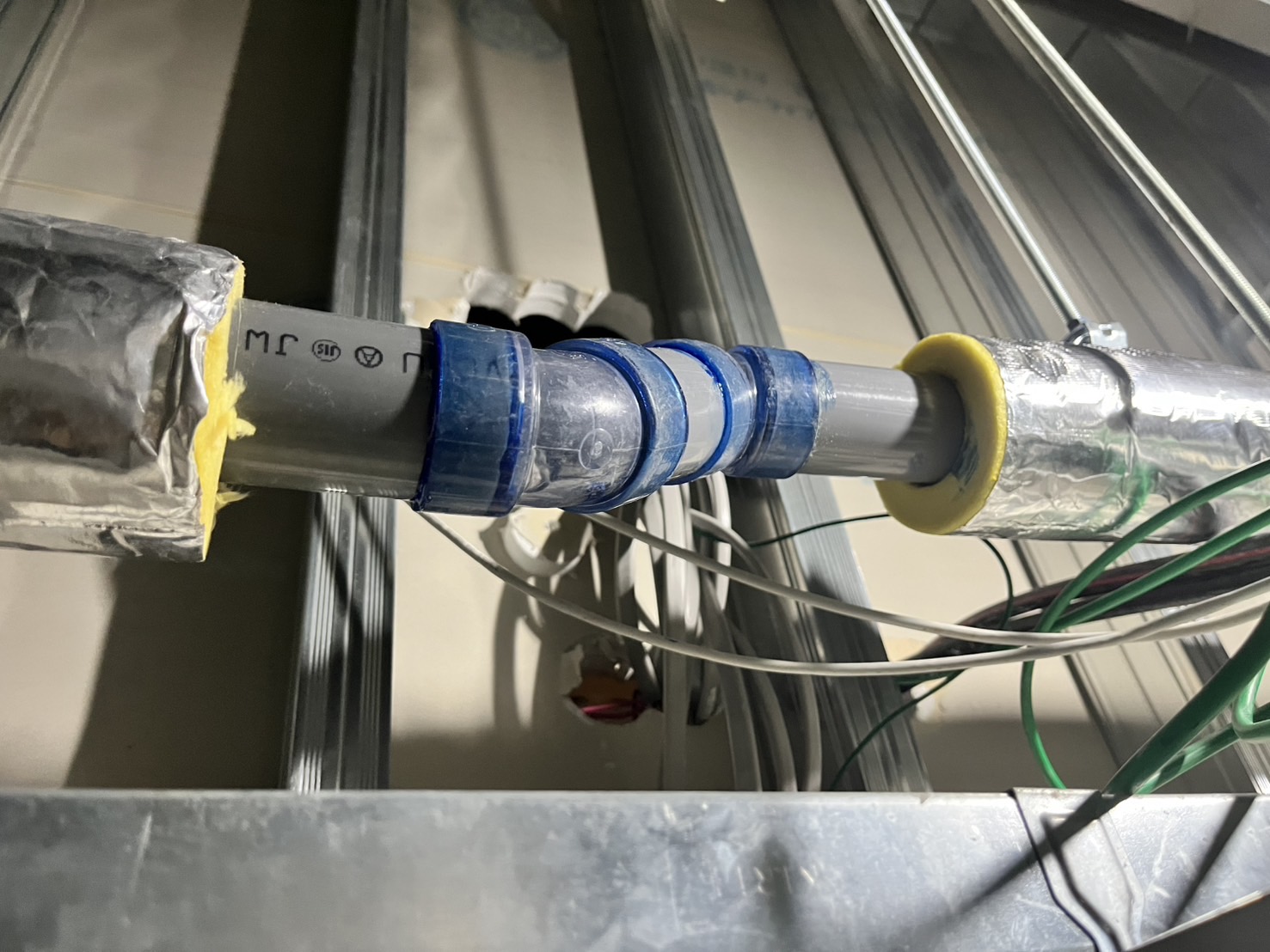 また、水勾配がゆるかったため、角度の変更と一部高さを変えるジョイントを取り付け、最後に通水テストをおこなっております。