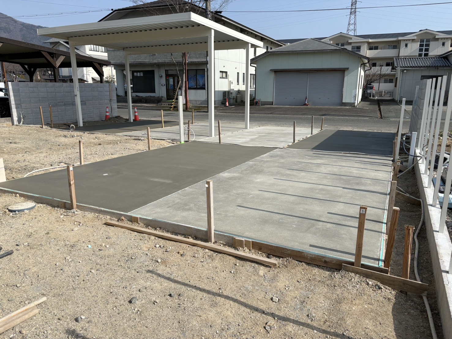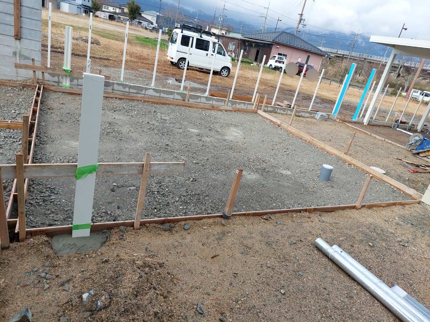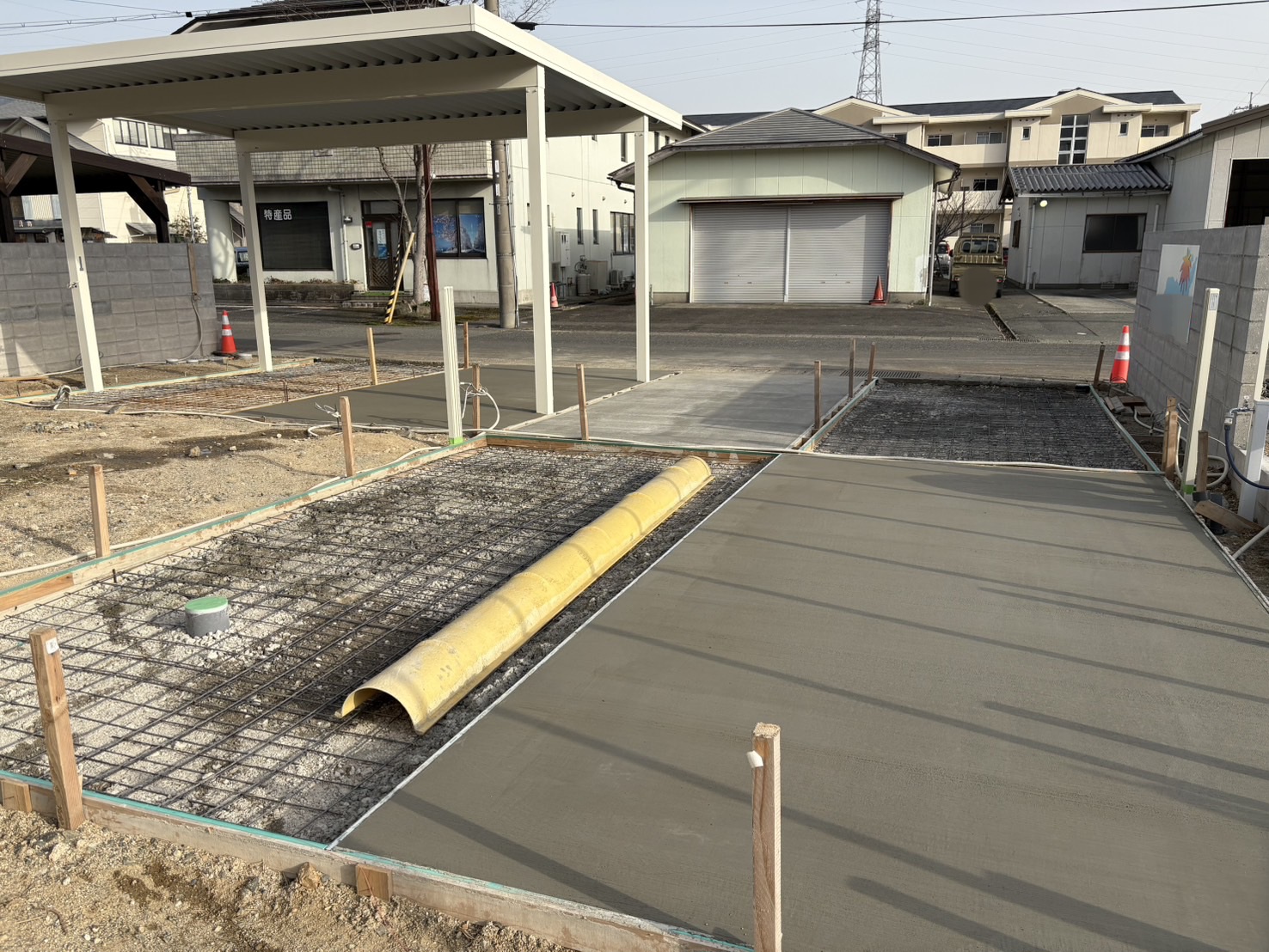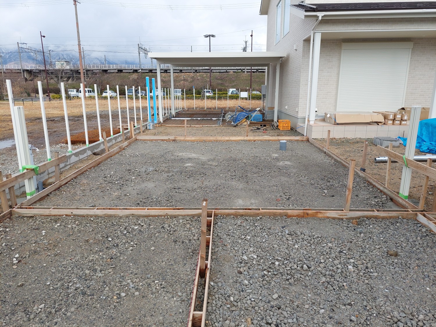 この場所にはトレーラーハウスが止まりますので、コンクリートの厚みを15㎝にて施工してあります。
