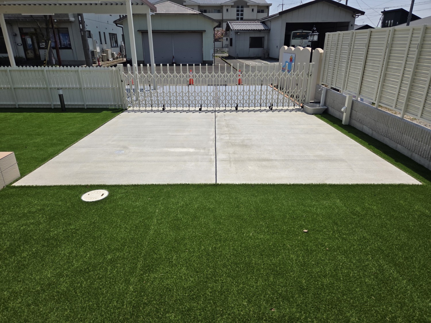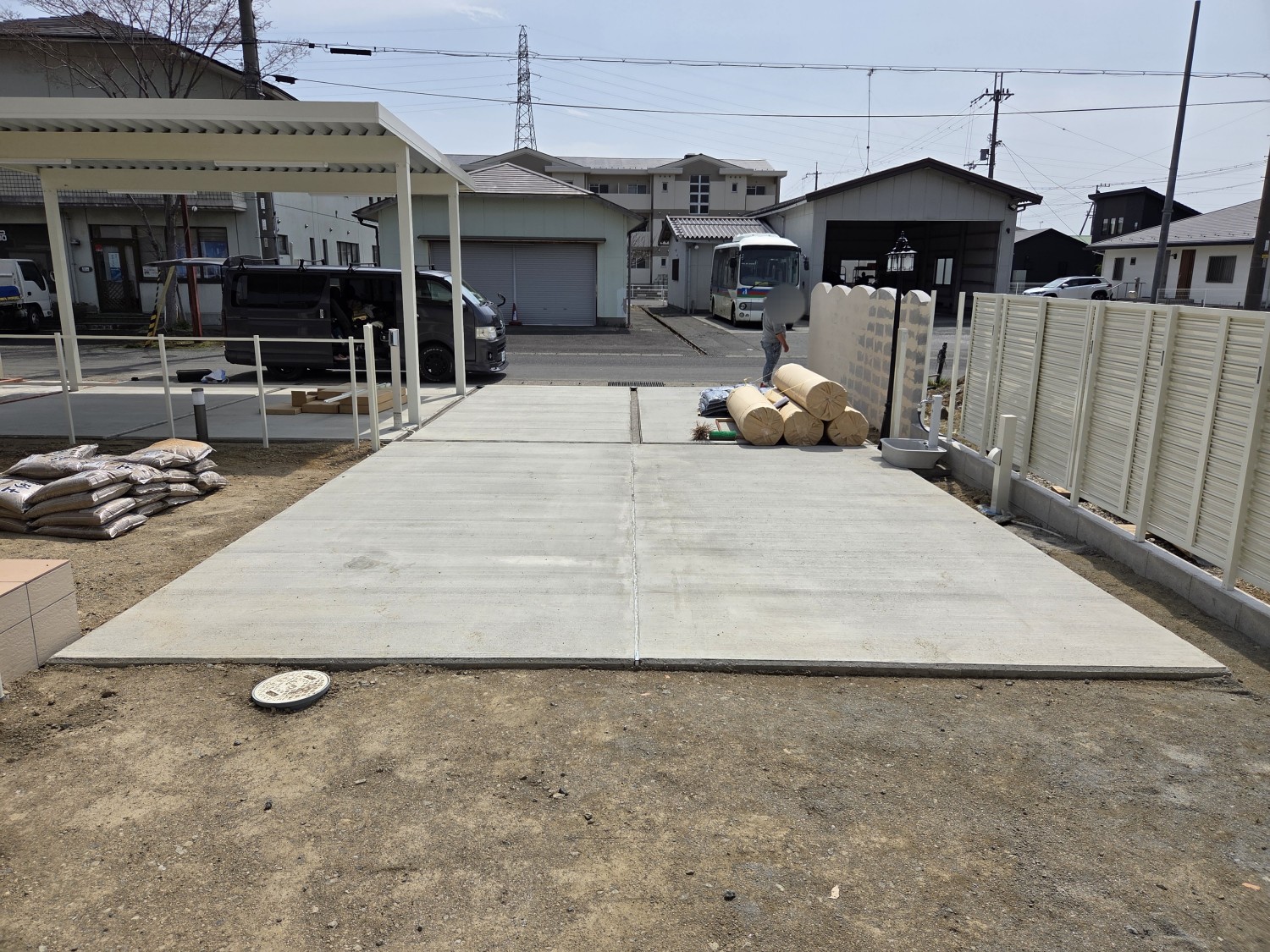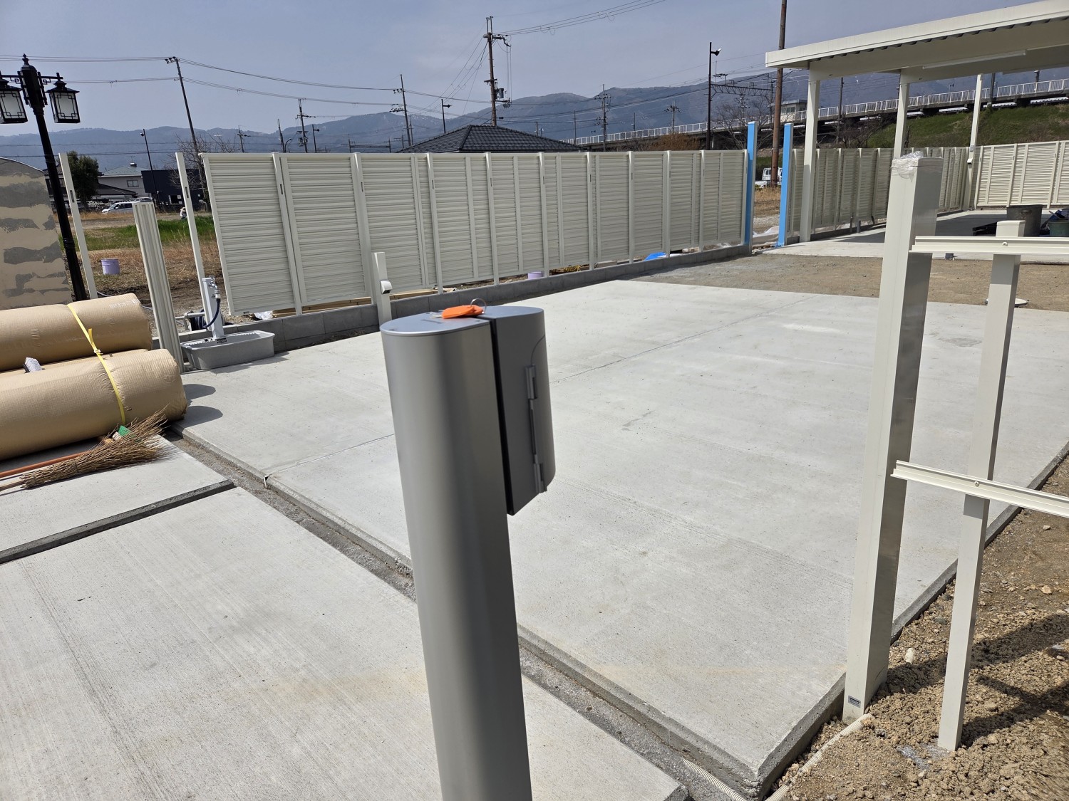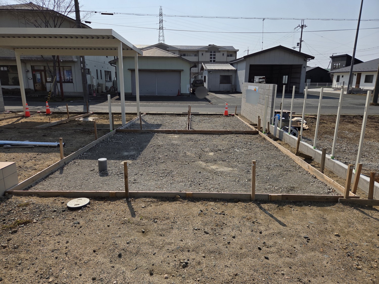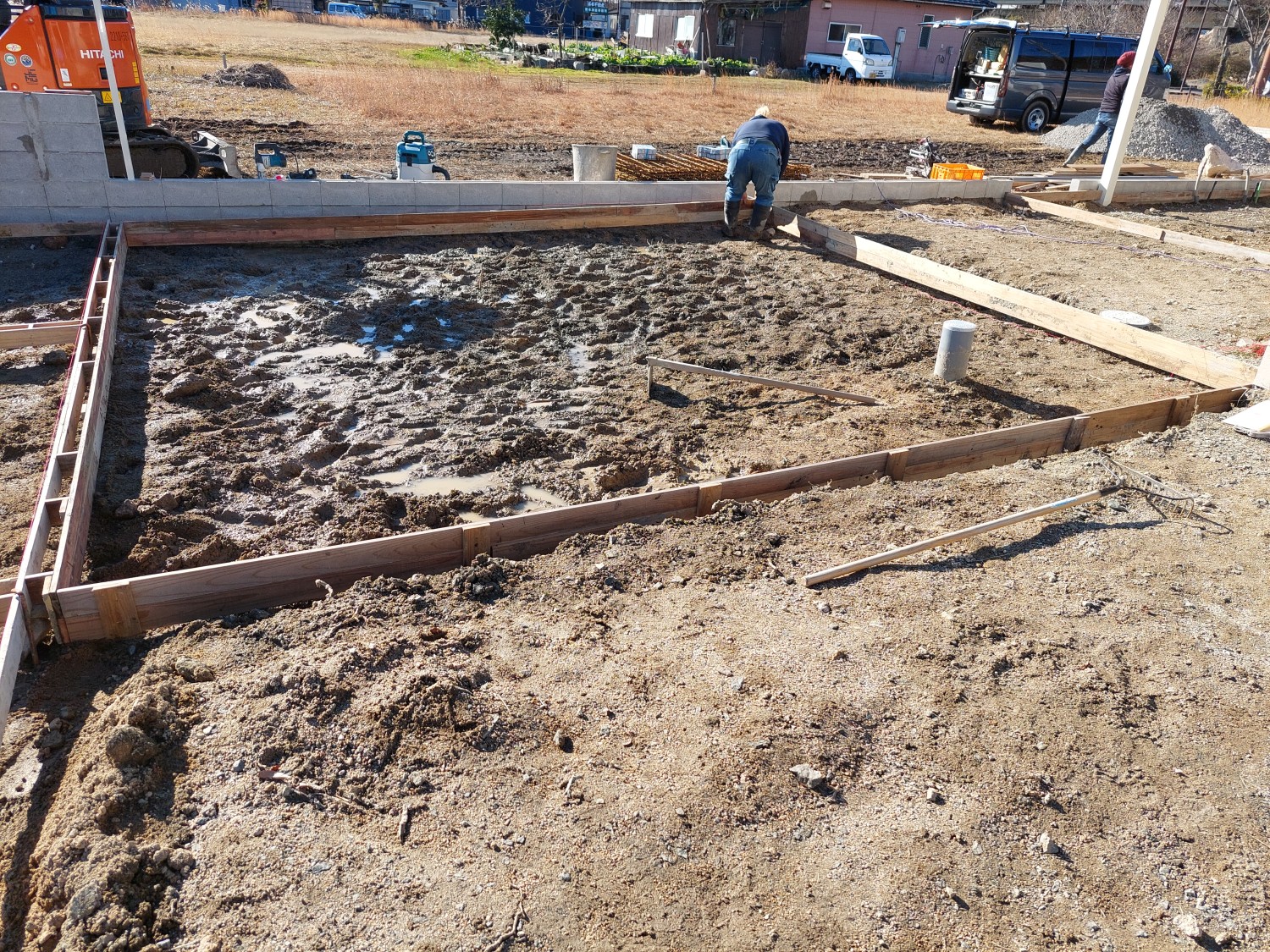 この場所にはトレーラーハウスが止まりますので、コンクリートの厚みを15㎝にて施工してあります。