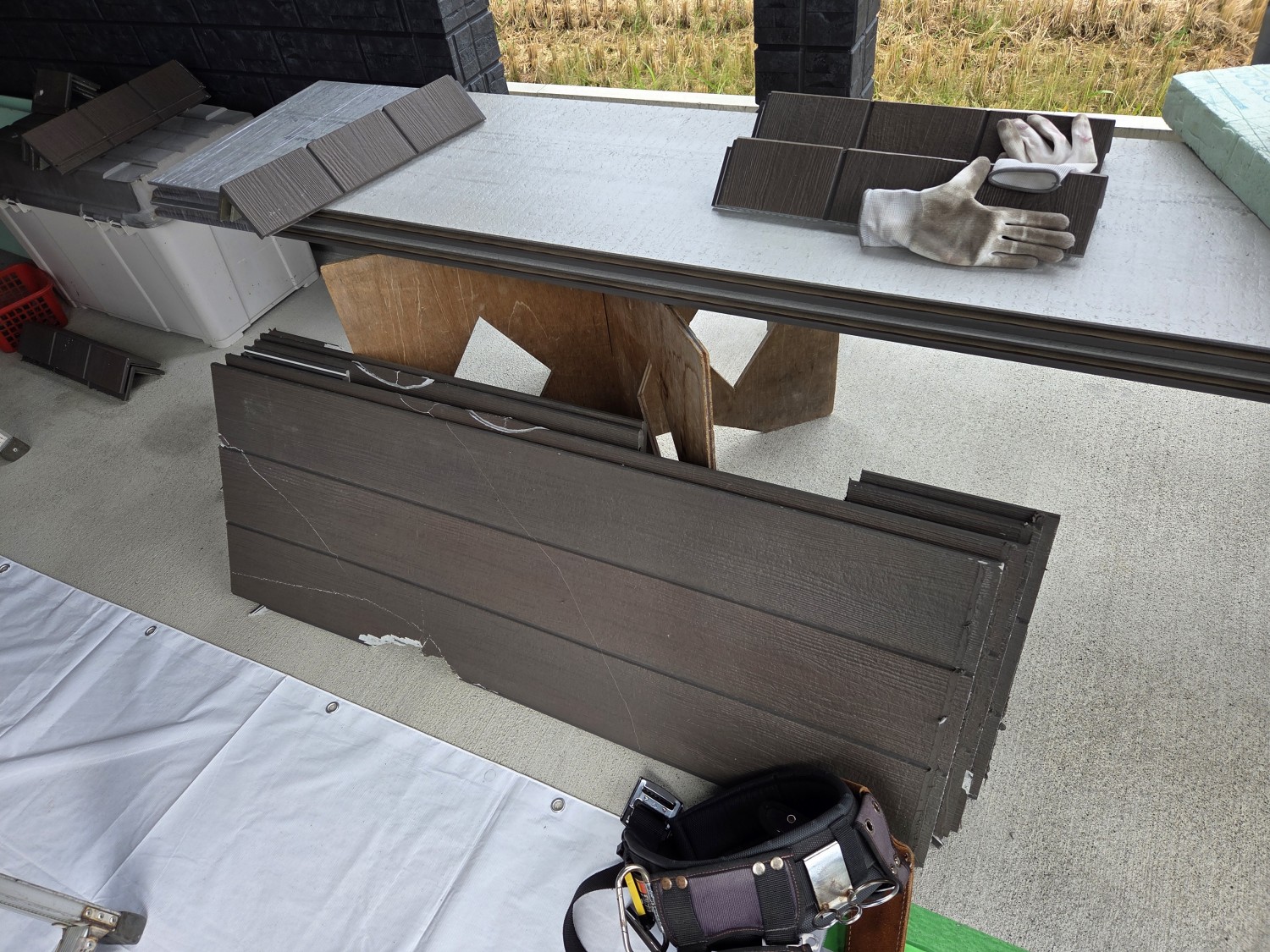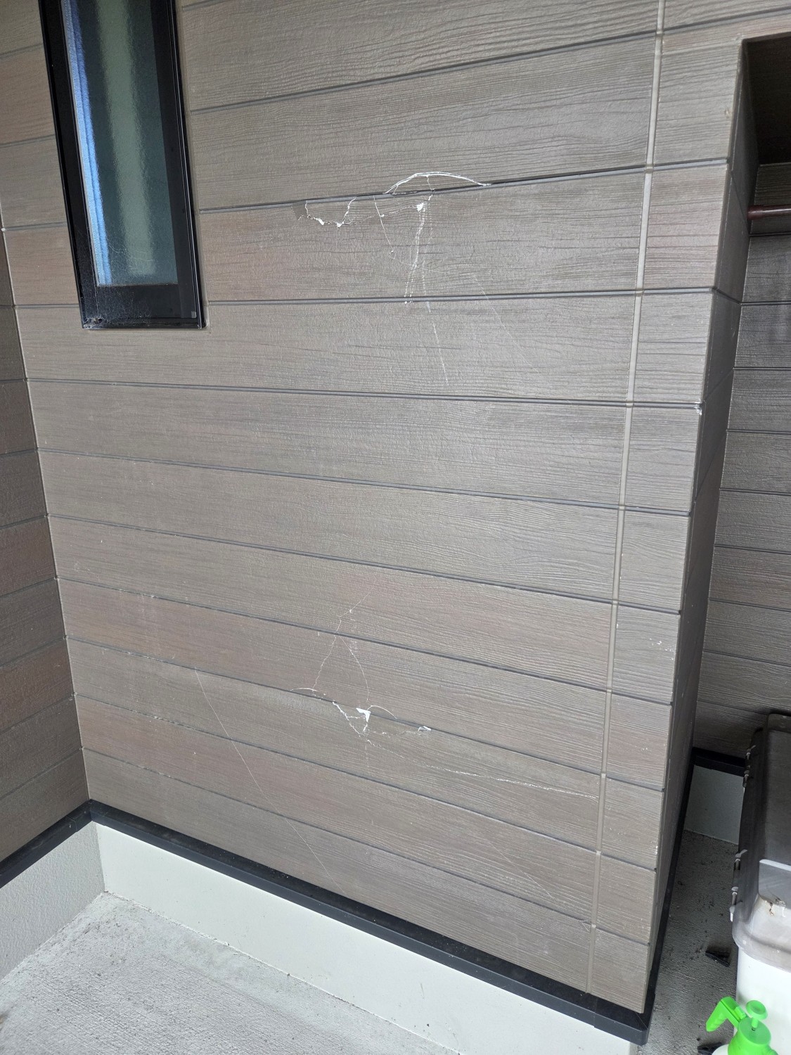外壁のサイディングボードが割れておりましたので、損傷箇所のサイディングボードの張り替えをおこないました。