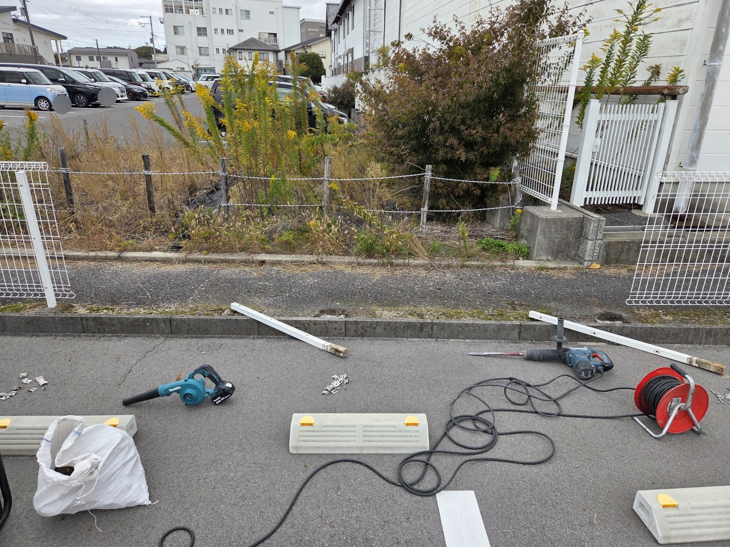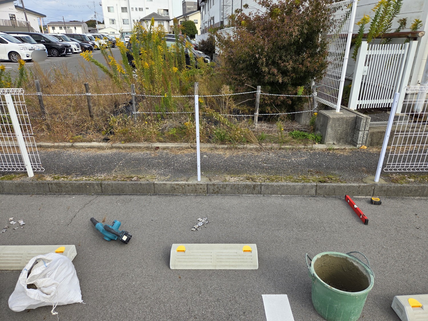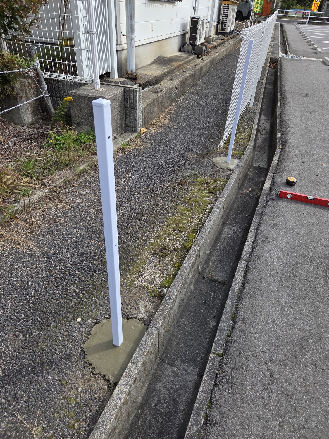 車両事故により、フェンスが曲がっておりましたので、フェンスの本体2枚と支柱を2本 取り替えました。