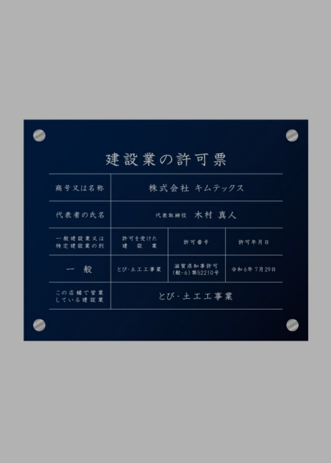 この度、令和6年7月29日付けにて建設業の滋賀県知事許可の認可を取得しました。